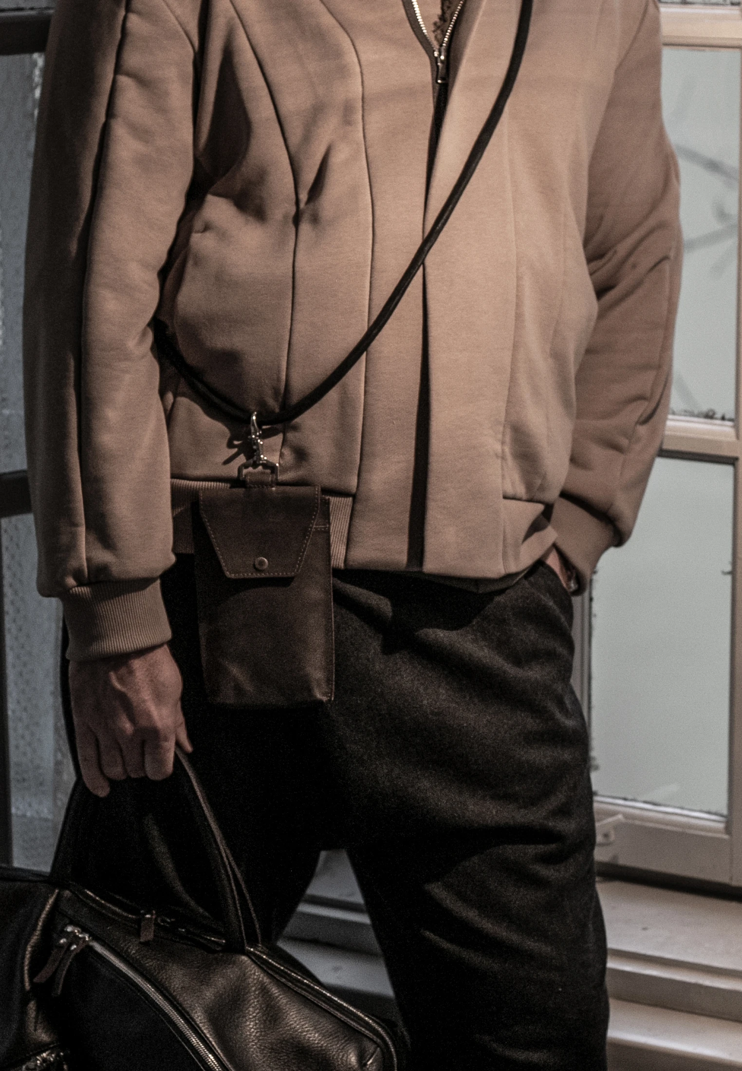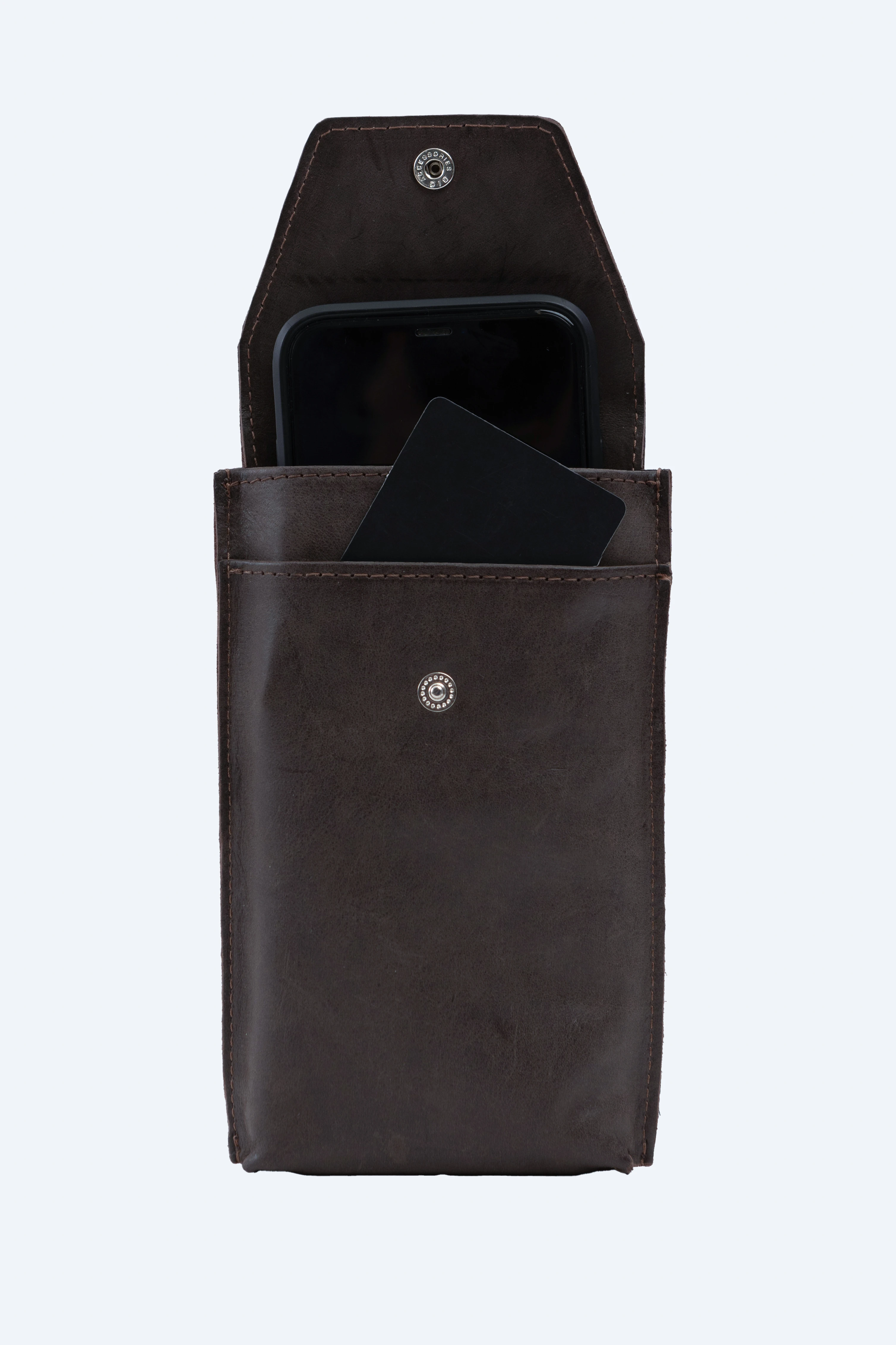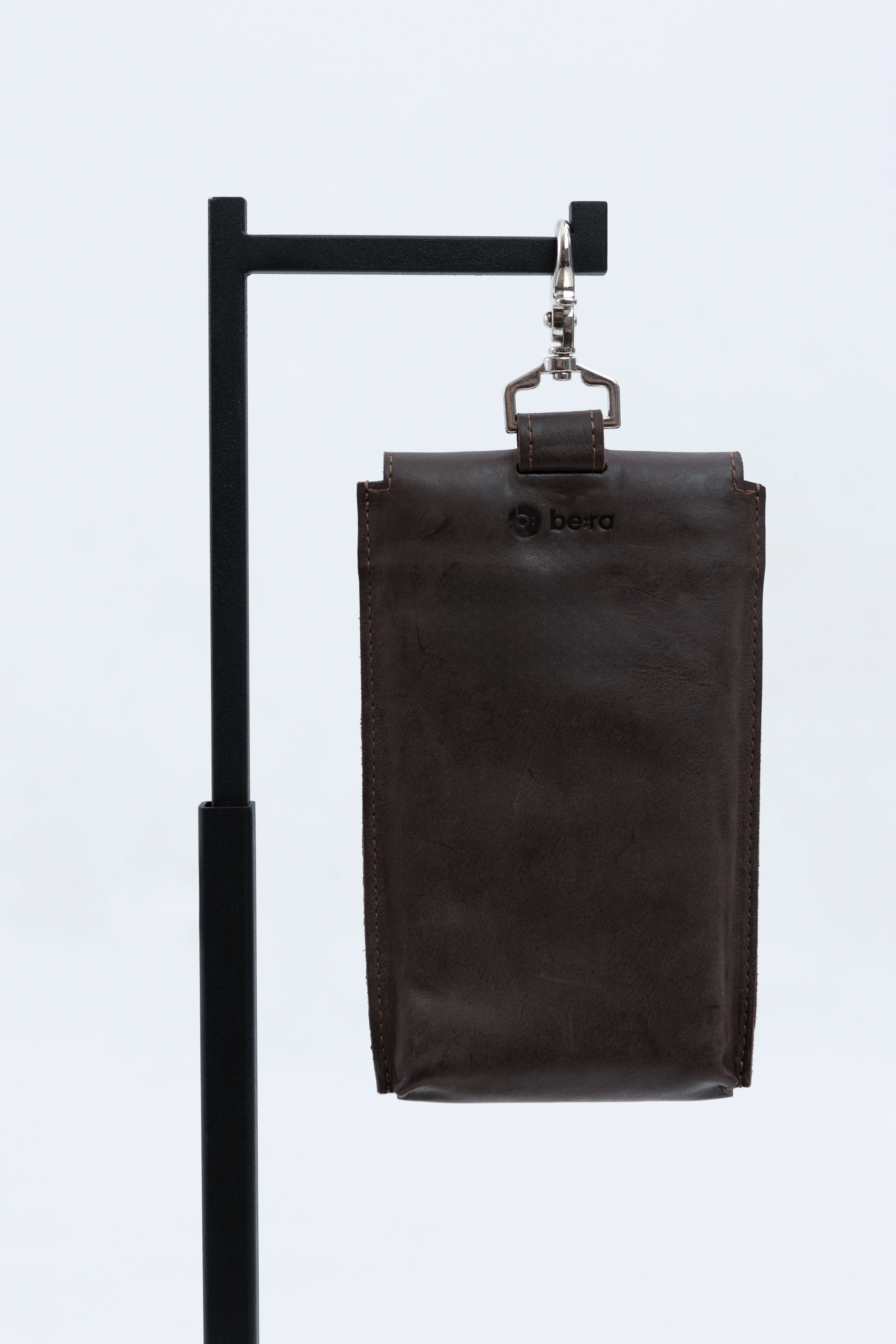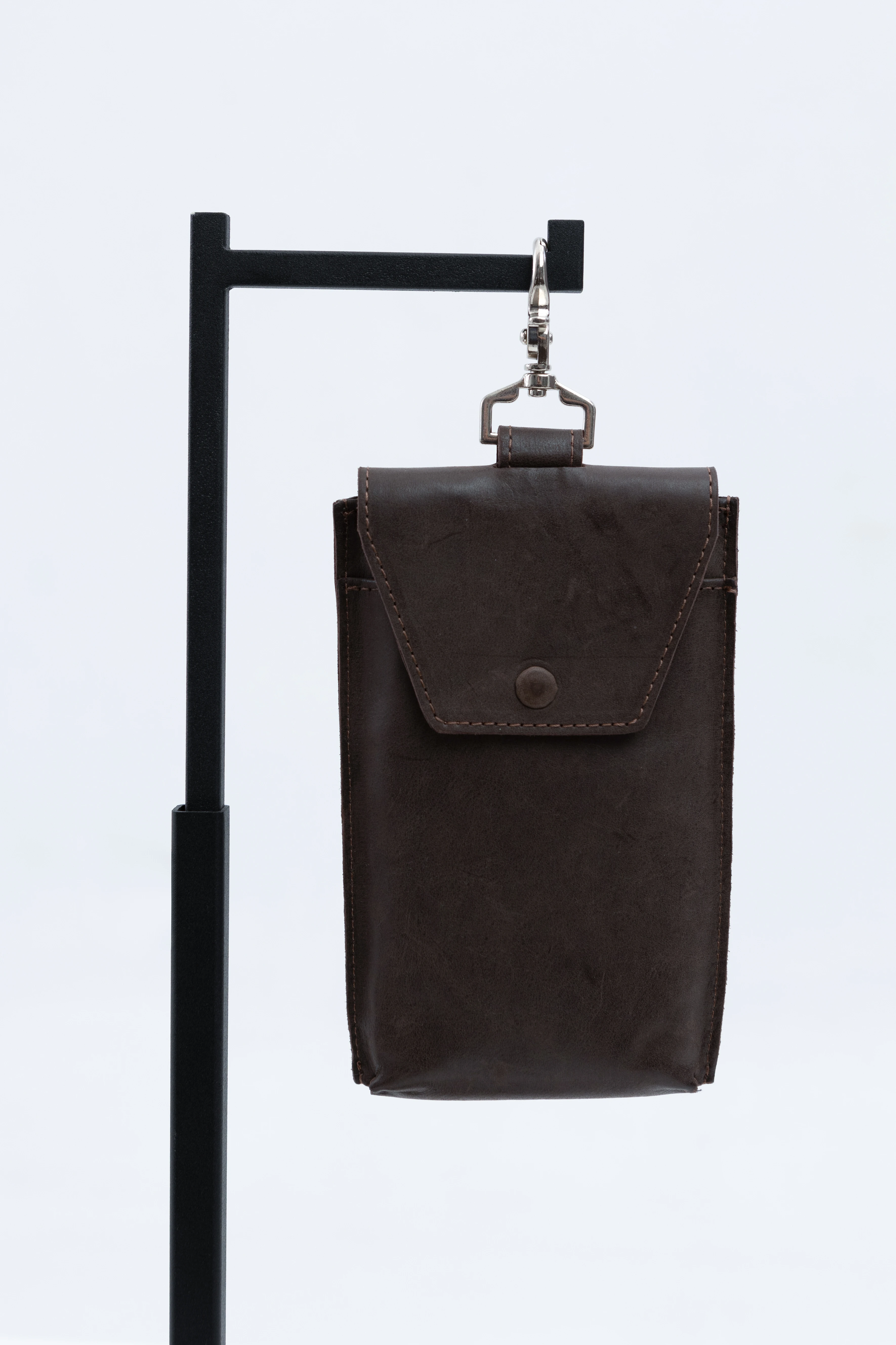 Кожаный чехол для телефона на карабине с надёжным кольцевым захватом.