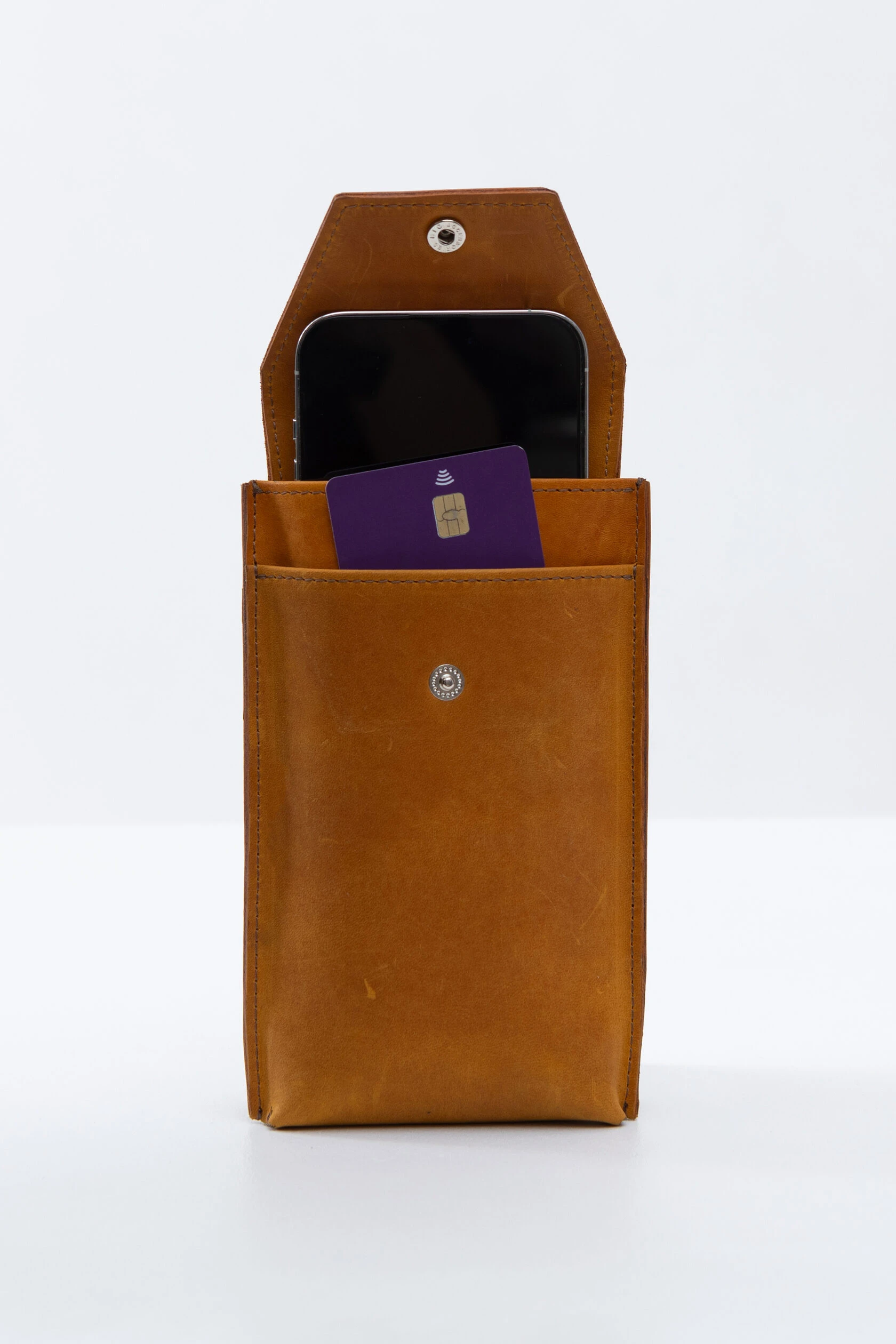 У чехла два кармана — для телефона и для карт или наличных.