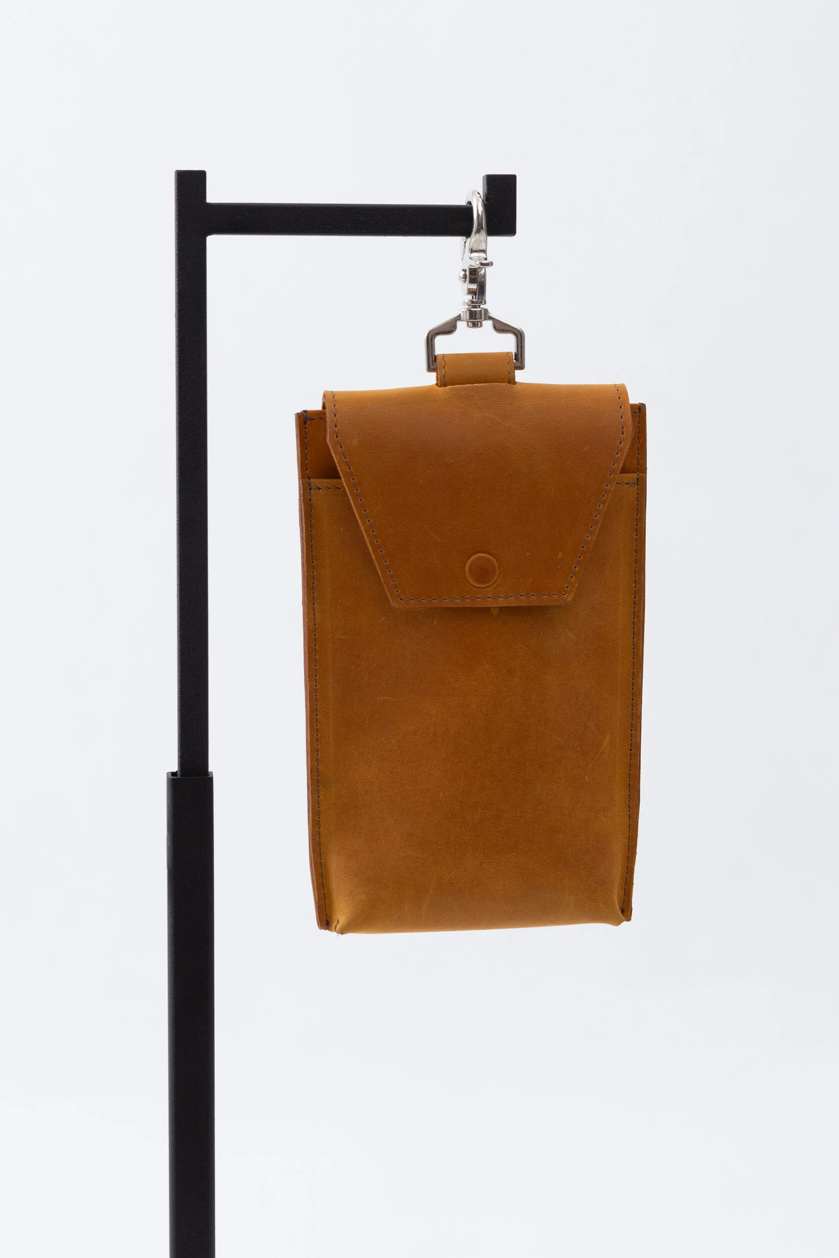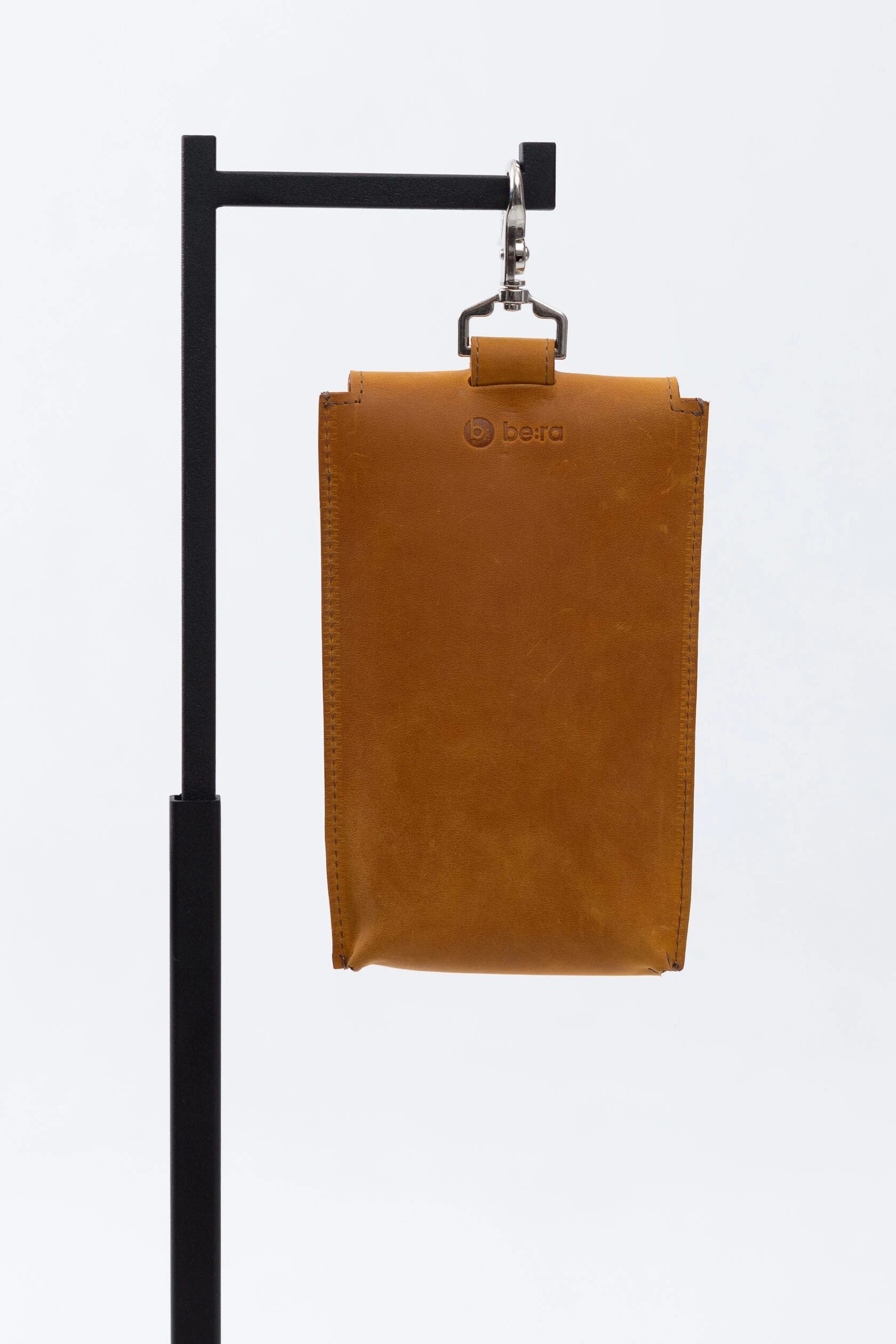 Кожаный чехол для телефона на карабине с надёжным кольцевым захватом.