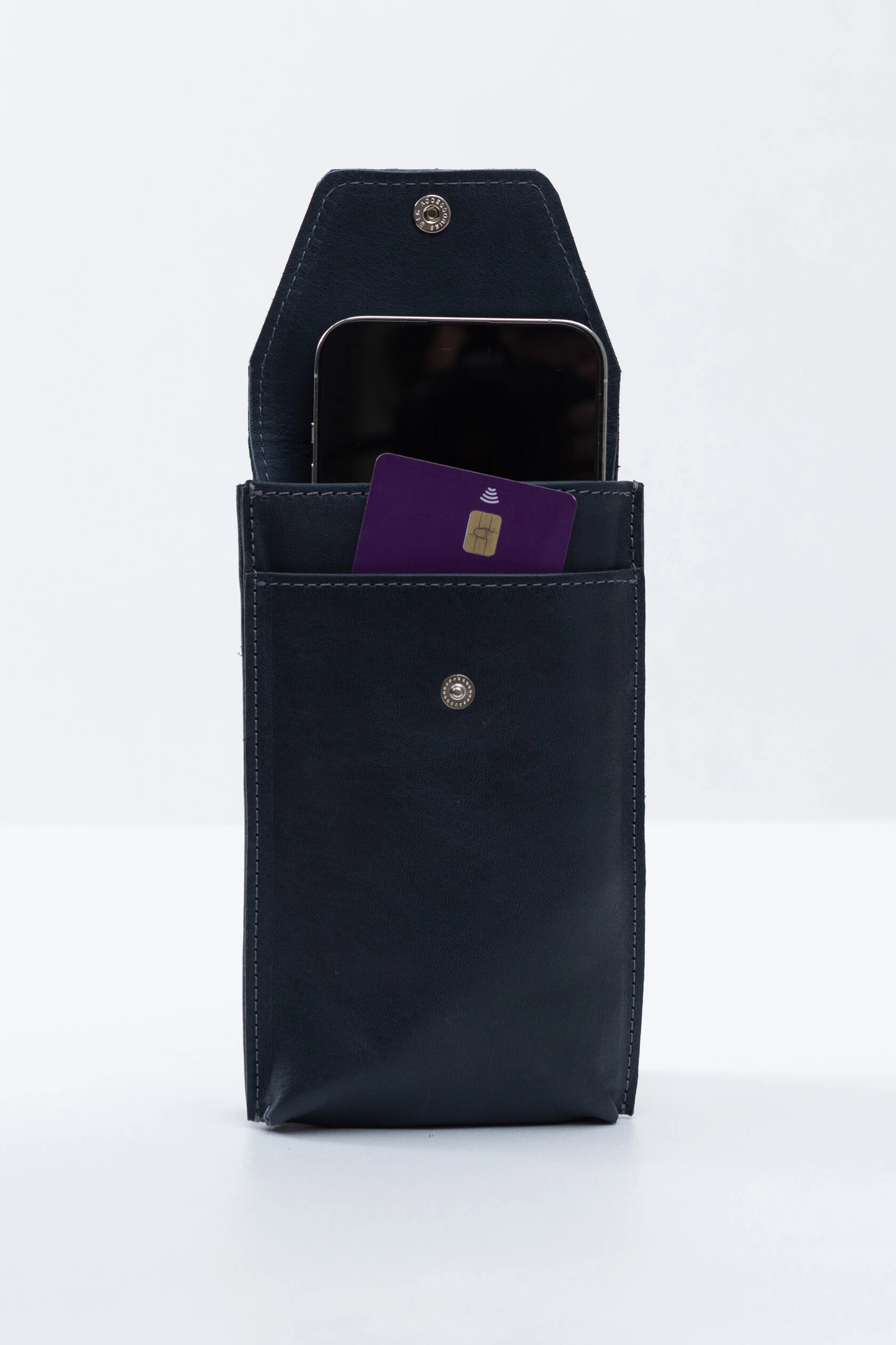 У чехла два кармана — для телефона и для карт или наличных.