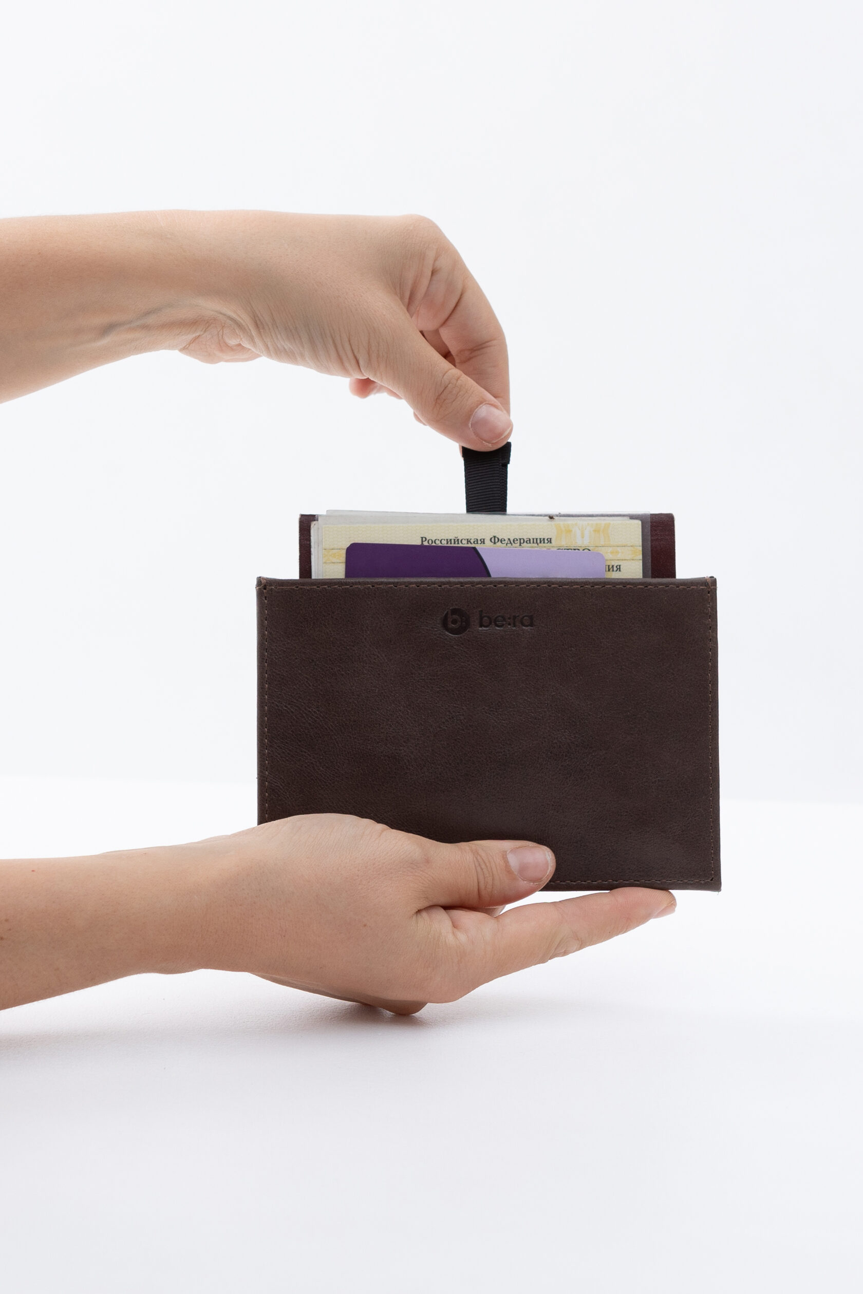 Чтобы паспорта и документы было удобно доставать мы сделали ленты, которые помогают их вытащить