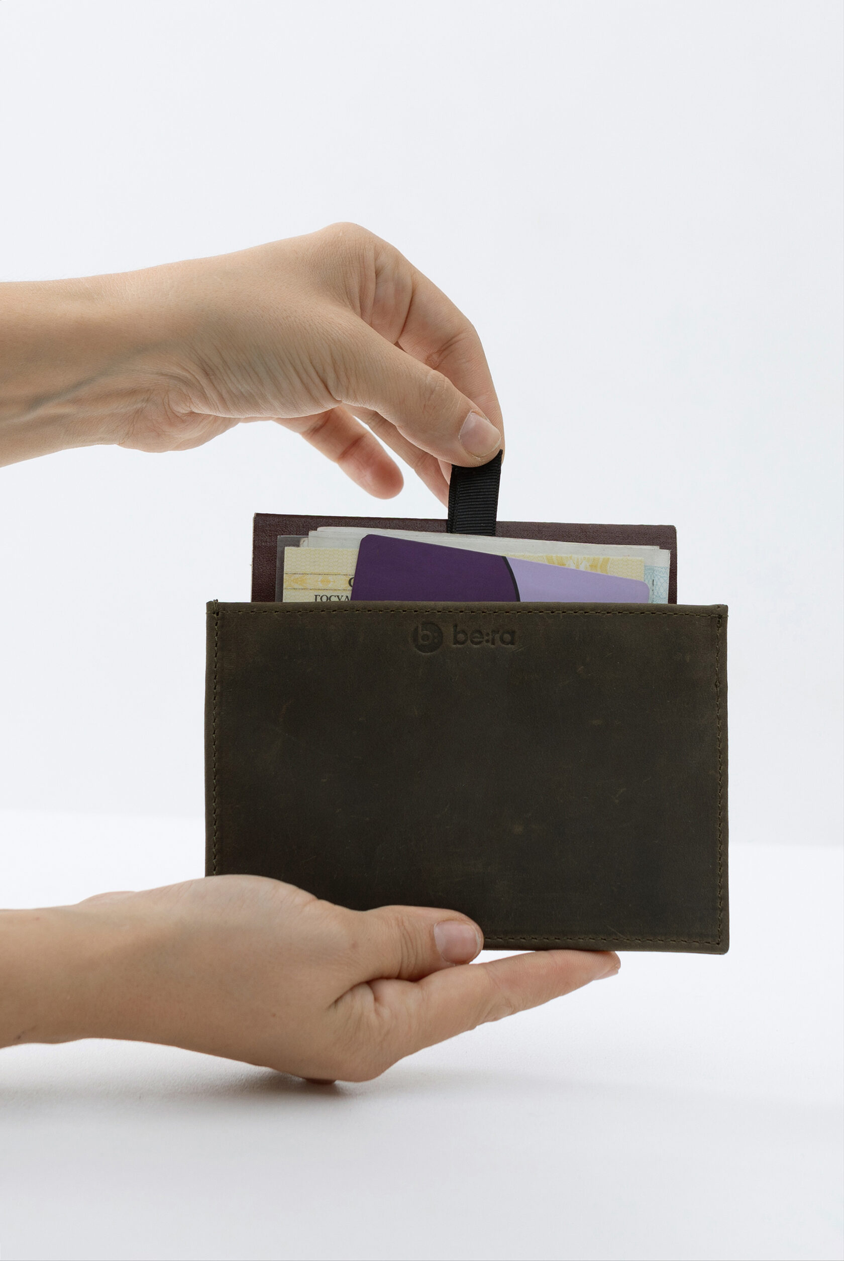 Чтобы паспорта и документы было удобно доставать мы сделали ленты, которые помогают их вытащить