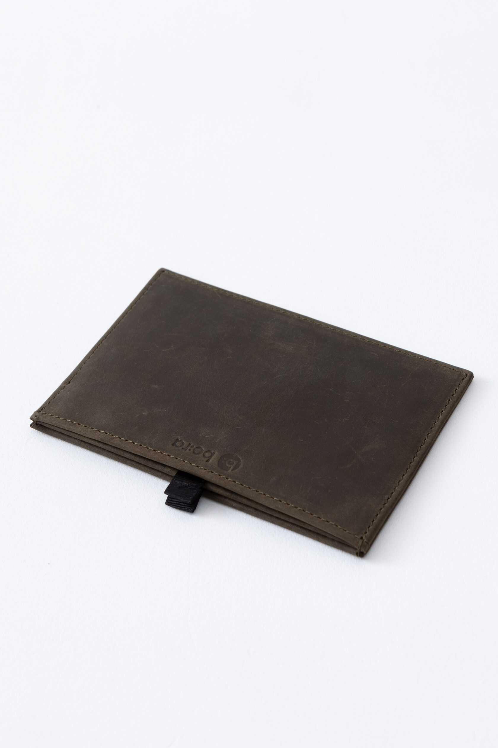 Кожаный холдер для документов, купюр и карт черный вощеный