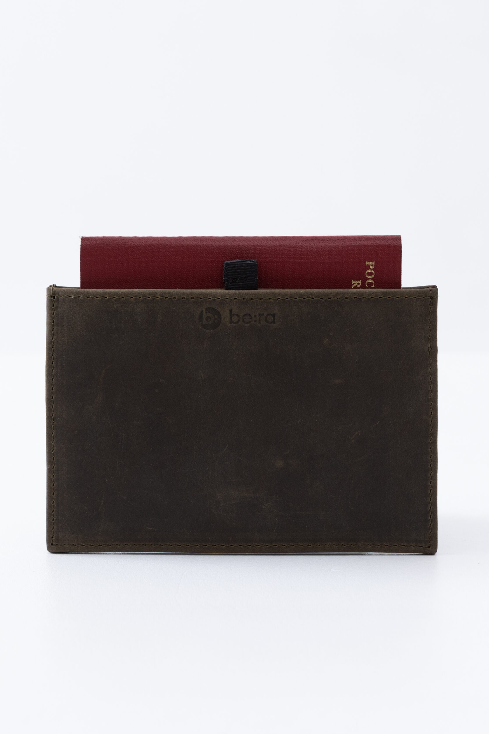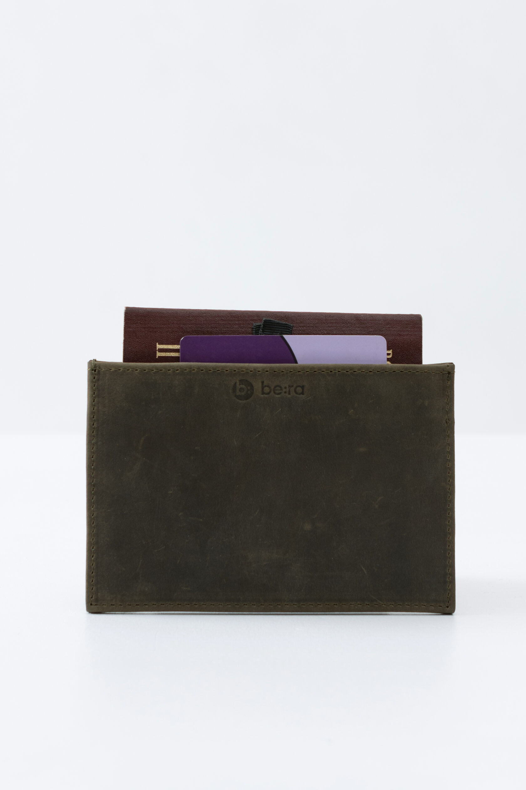 Кожаная обложка-карман для паспорта зеленая с винтажным эффектом