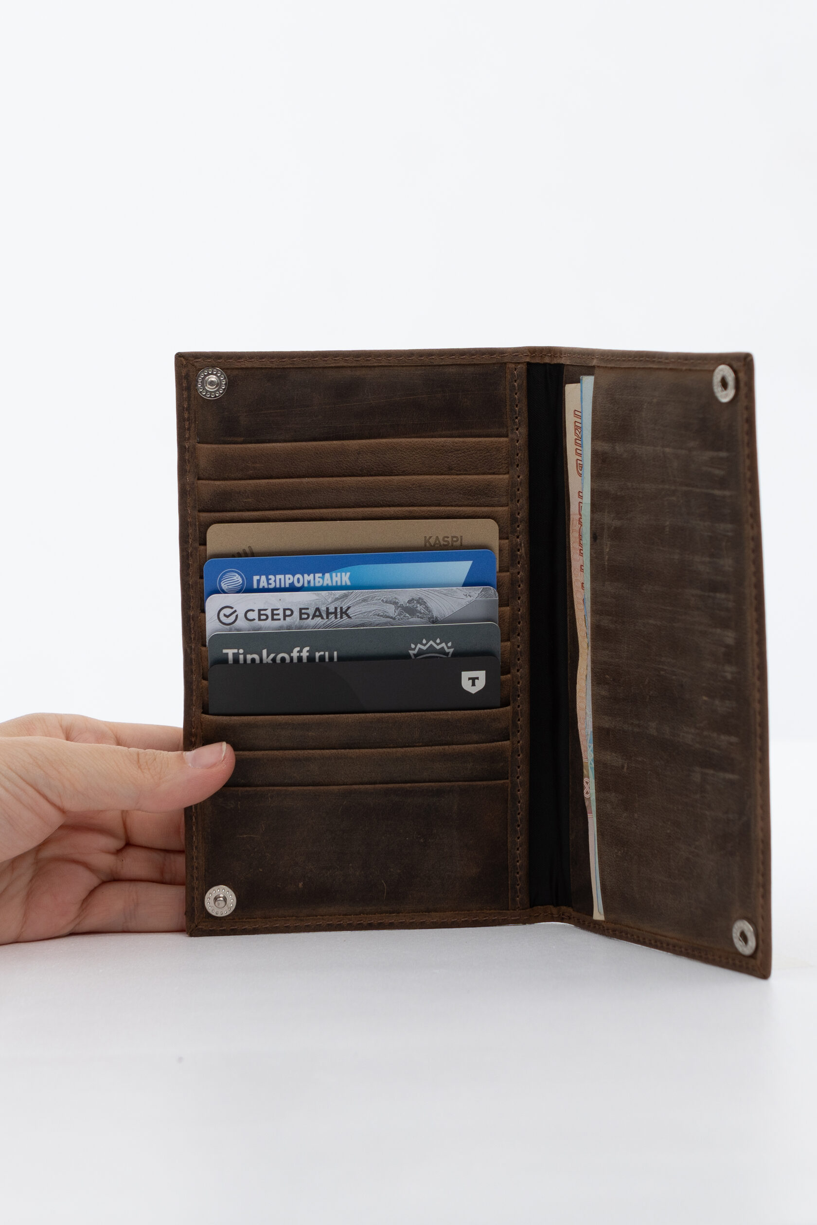 В портмоне легко влезают не только купюры, но и паспорт.
