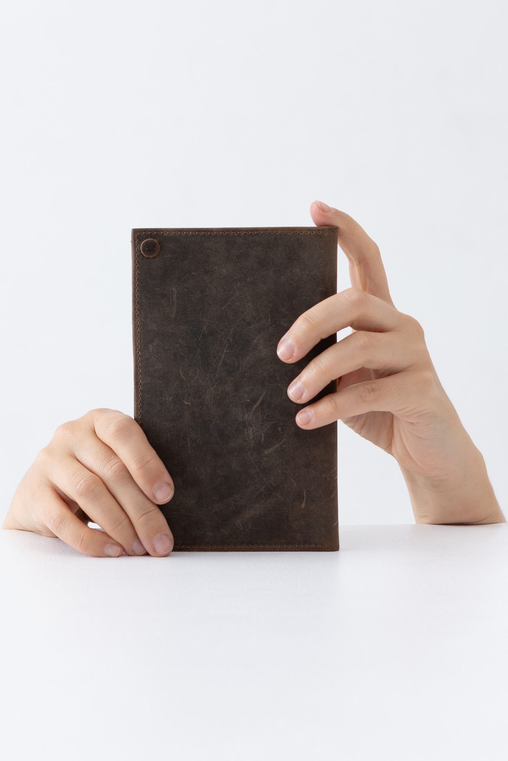 Застёжка на 2 кнопки. Портмоне закрывается по бокам, и уголки не отгибаются со временем. Кнопки обтянуты кожей в цвет портмоне, чтобы было до головокружения красиво.
