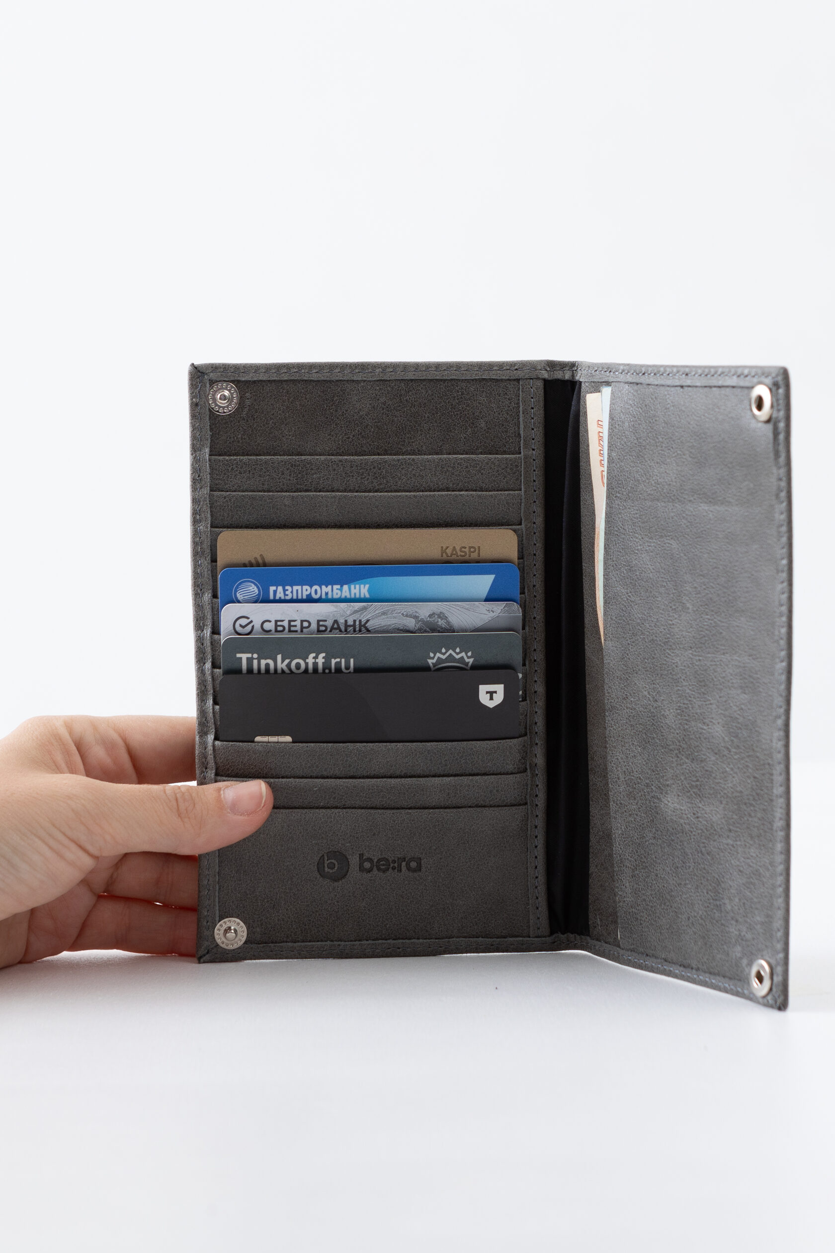 В портмоне легко влезают не только купюры, но и паспорт.