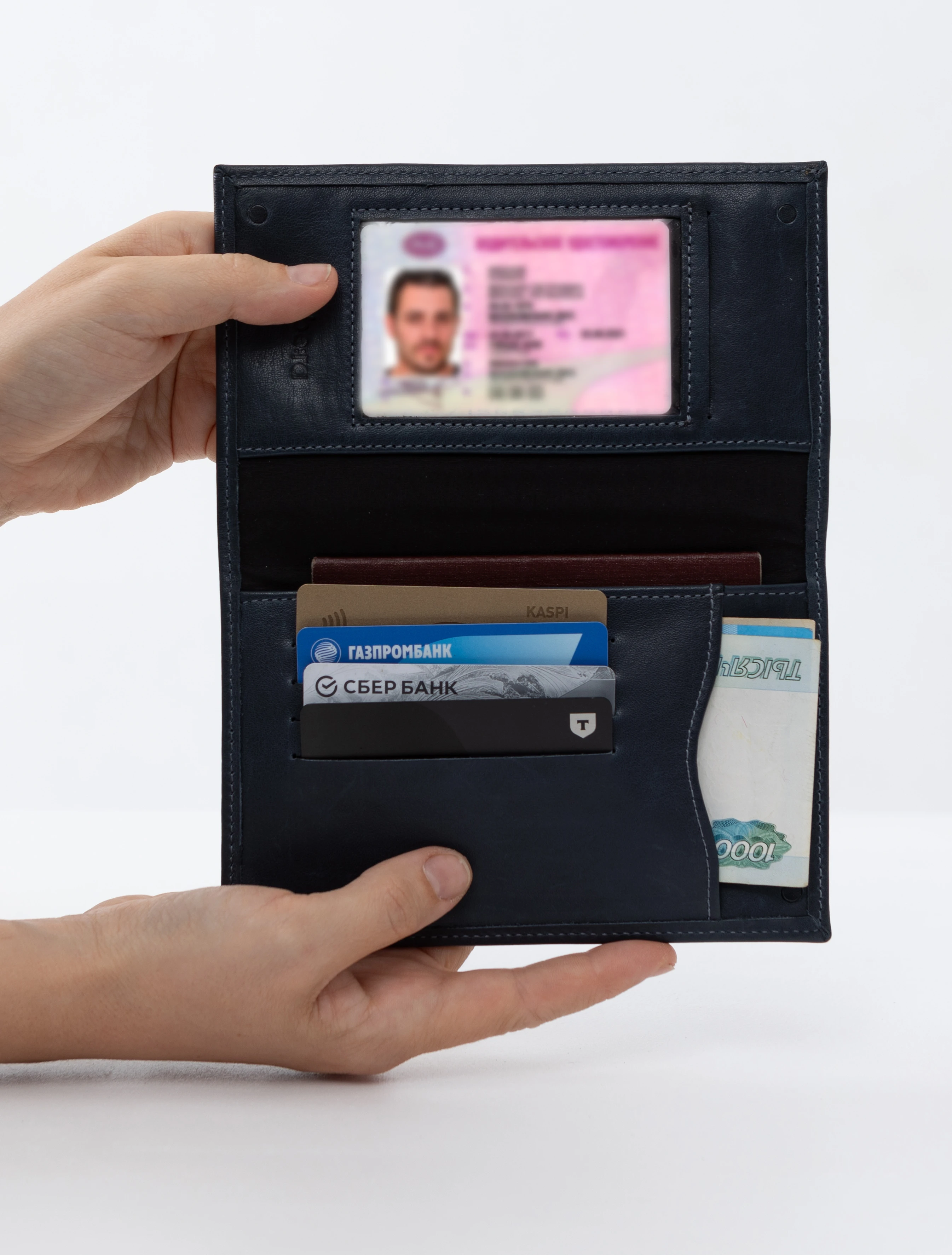 Кожаное портмоне водителя синее