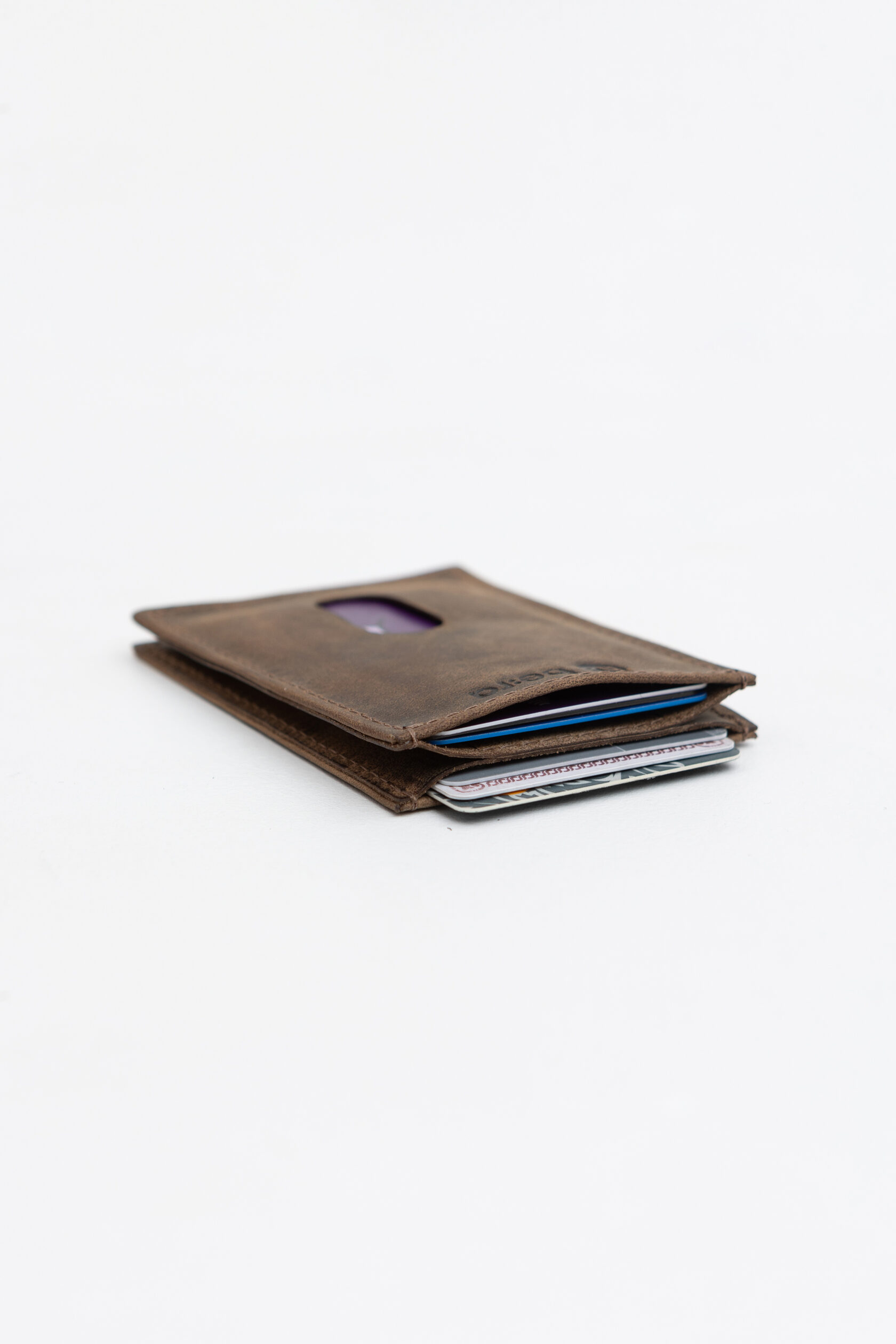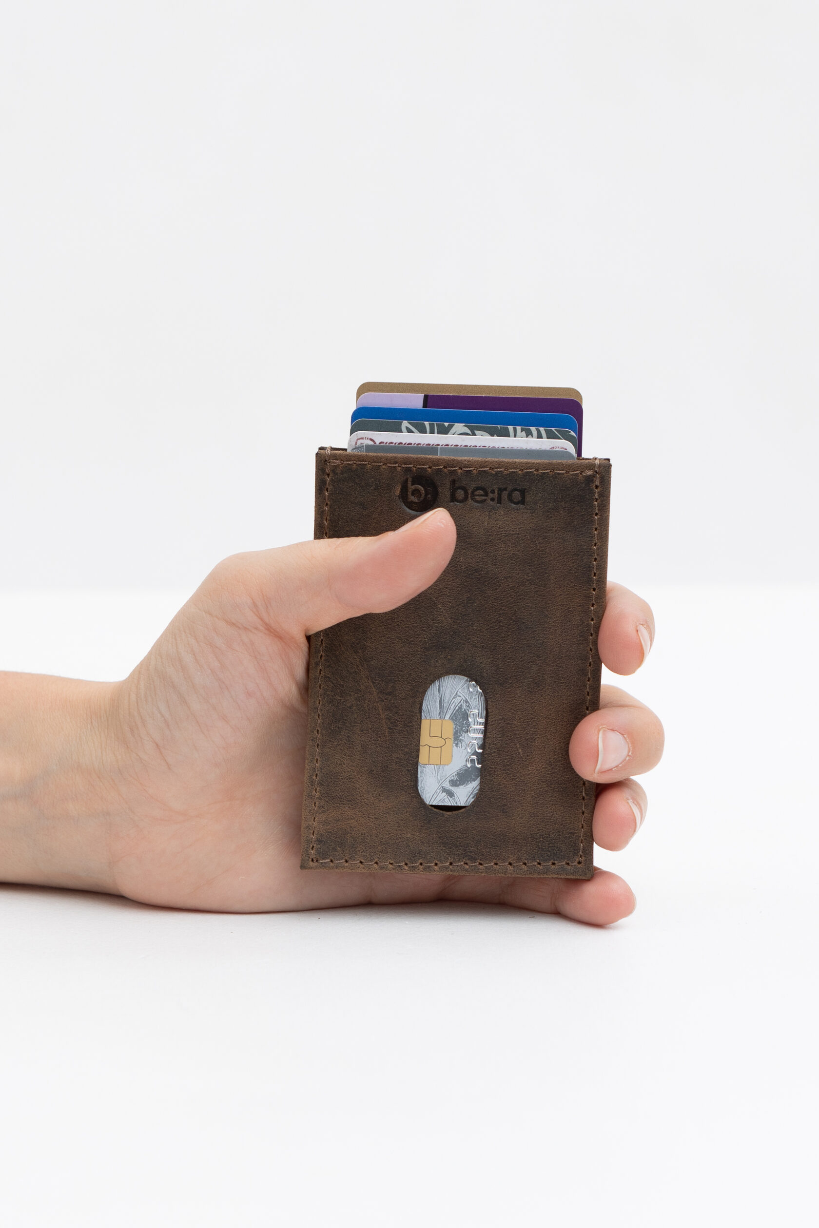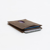 Кожаный кардхолдер состоит из двух карманов. В каждом кармане помещается до 5 карточек.