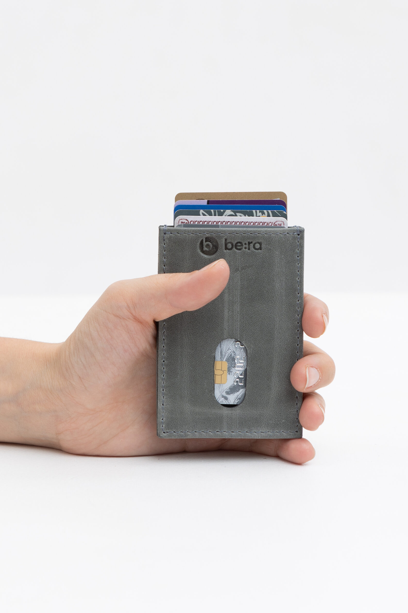 Кожаный кардхолдер состоит из двух карманов. В каждом кармане помещается до 5 карточек.