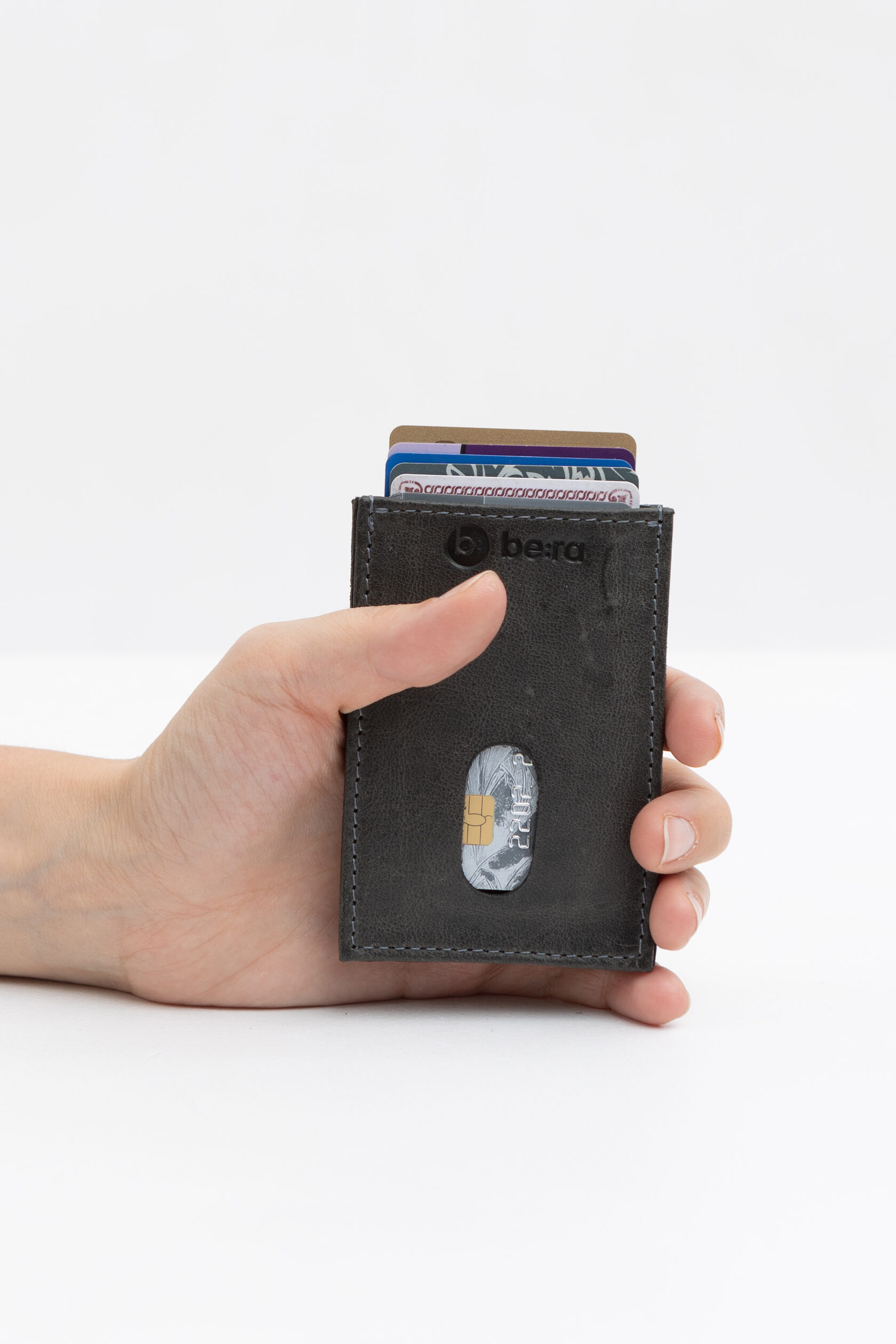 Кожаный кардхолдер состоит из двух карманов. В каждом кармане помещается до 5 карточек.