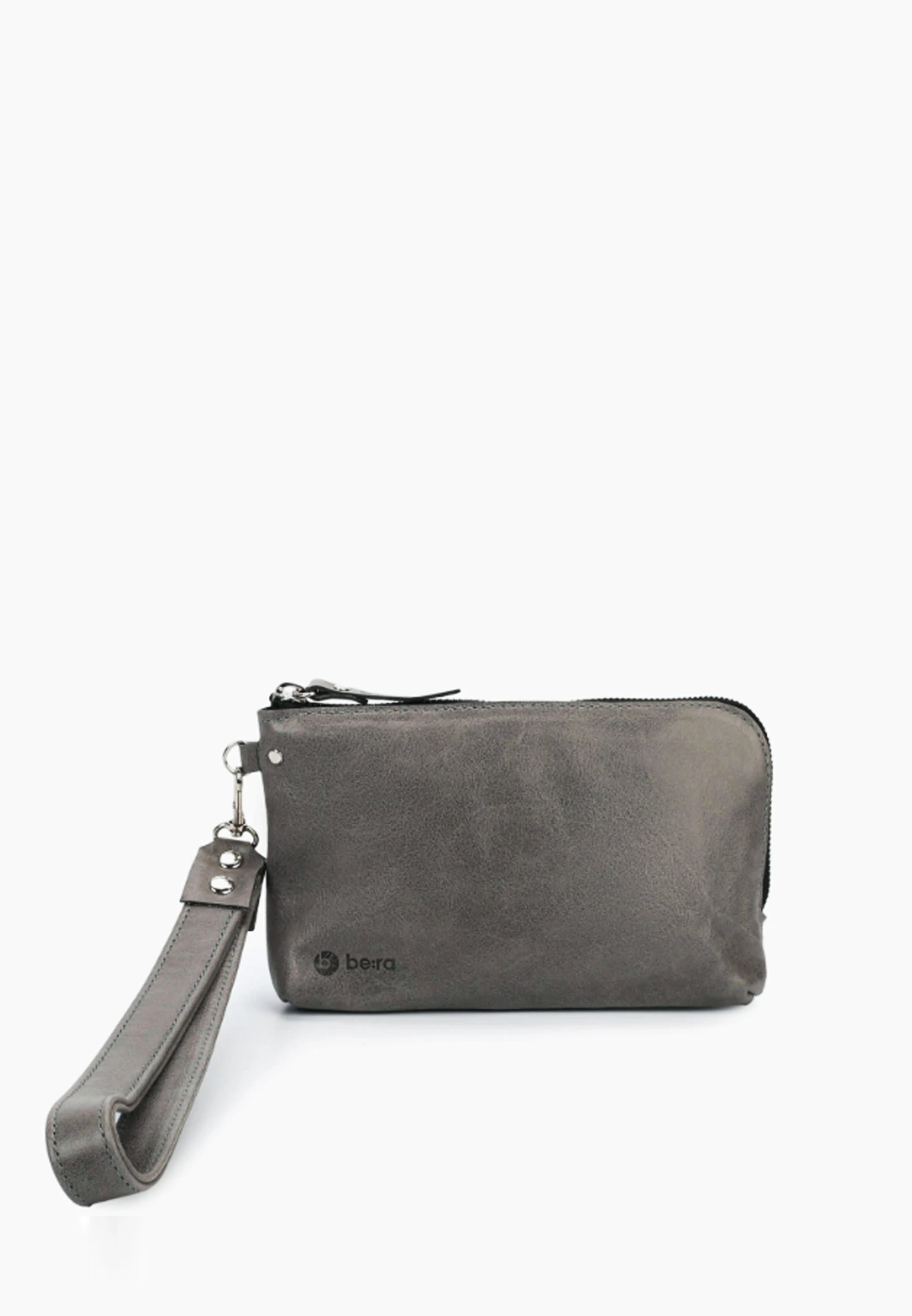 Сумка прямоугольной формы на молнии, с наручной петлёй, пристёгивающейся на карабине.