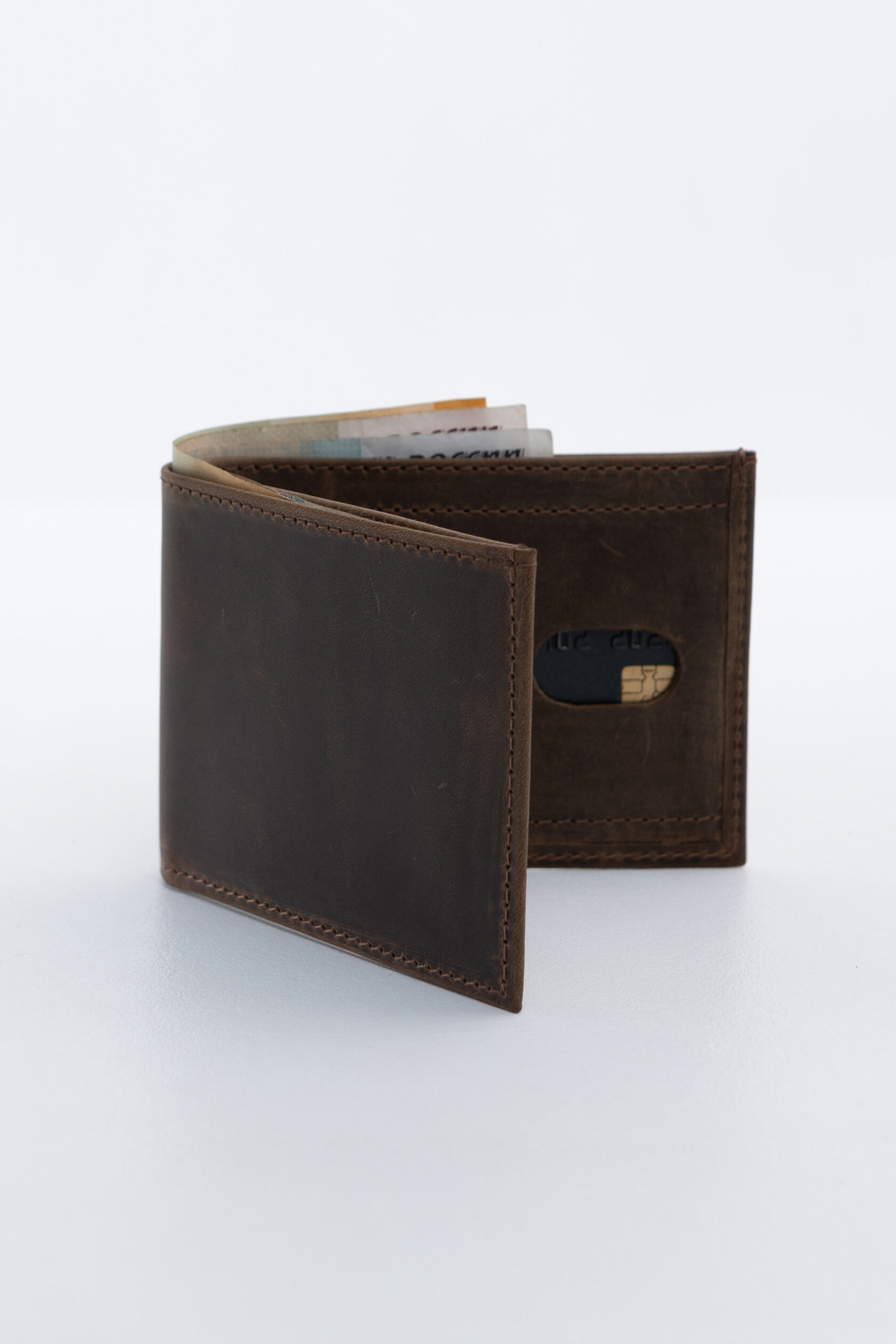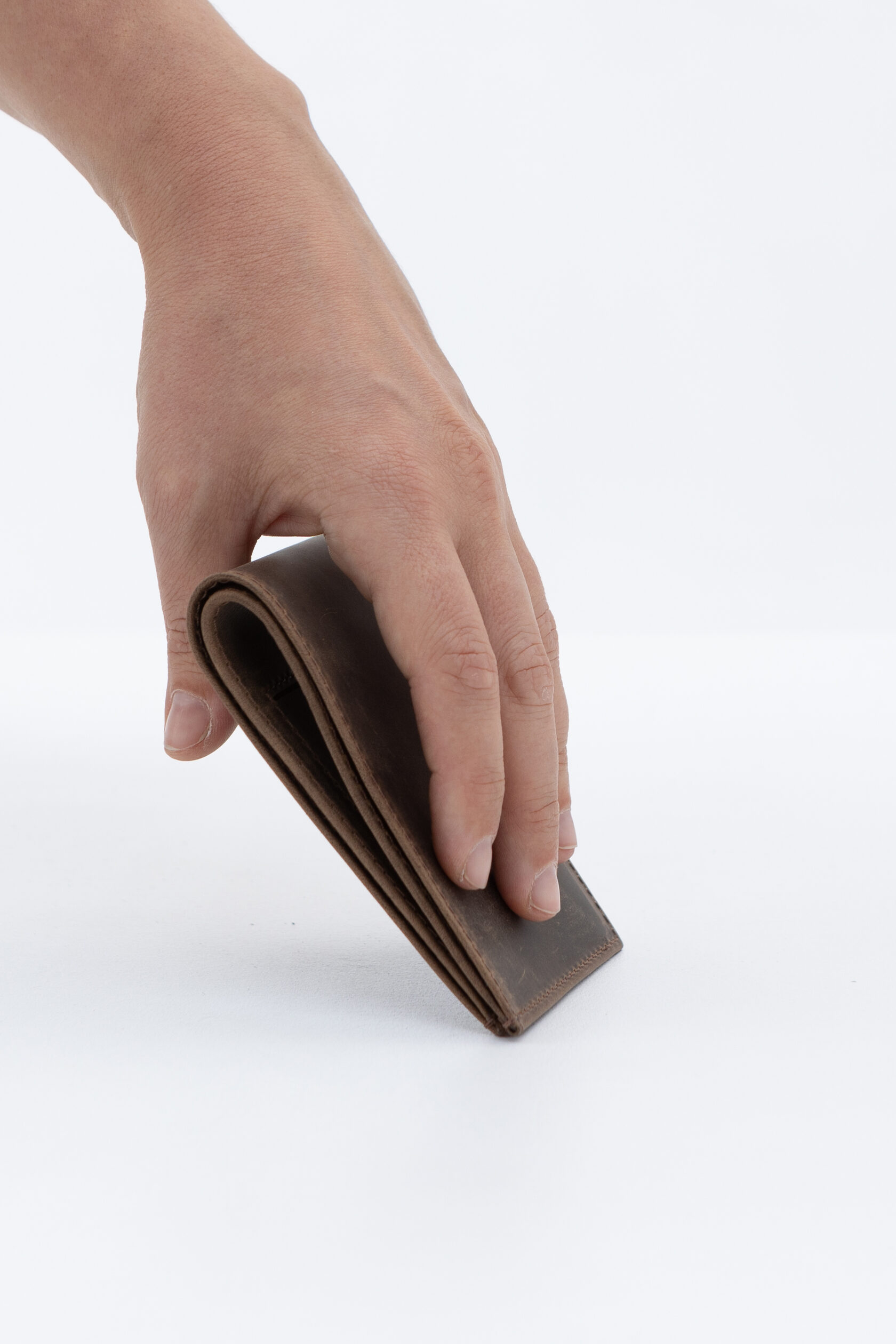 Внутри обработан полирующим составом. Поэтому внутренняя поверхность кошелька мягкая, но не ворсистая. А кожаные катышки не будут оставаться на купюрах и руках.