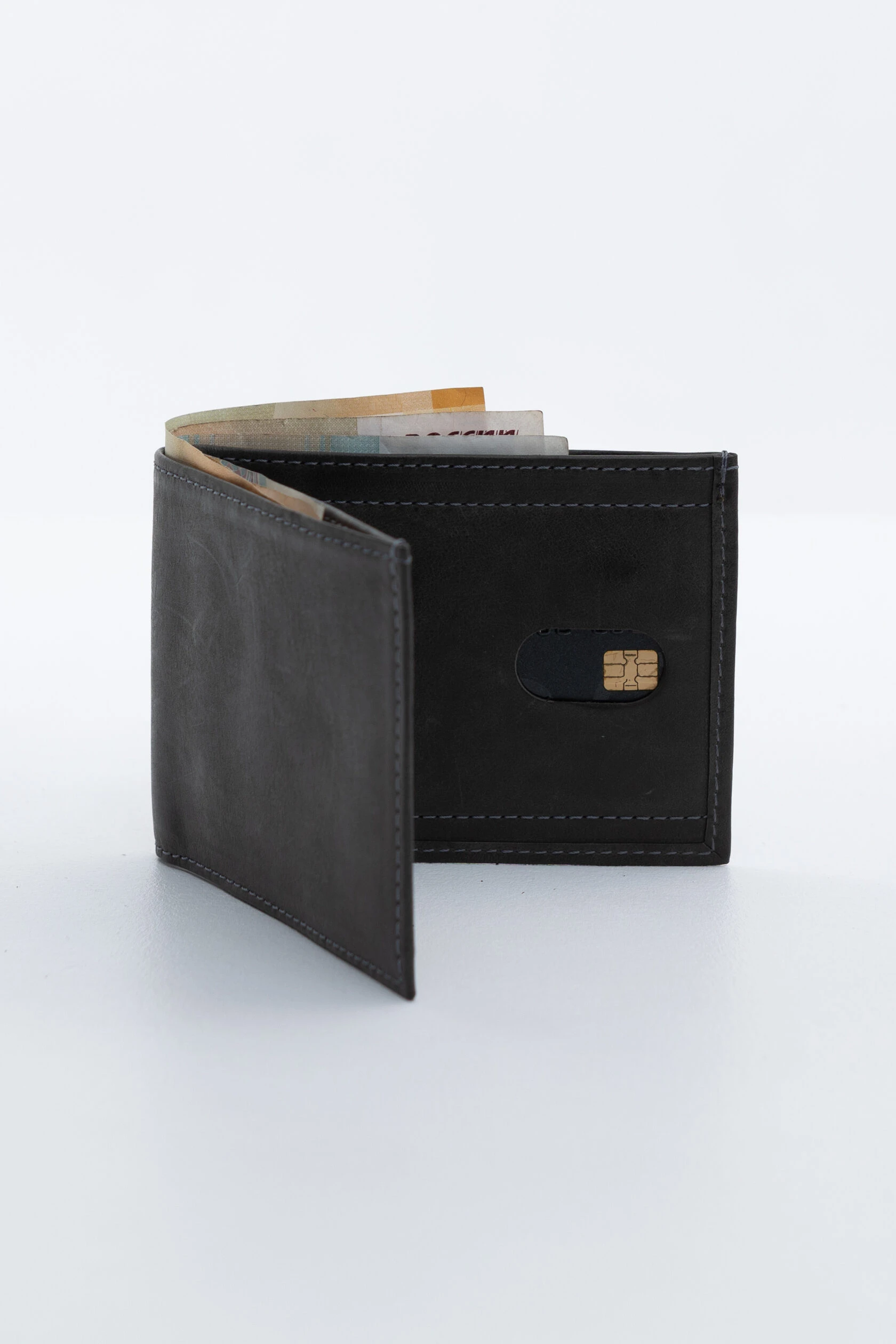 Внутри обработан полирующим составом. Поэтому внутренняя поверхность кошелька мягкая, но не волосатая. Кожаные катышки не будут оставаться на купюрах и руках.