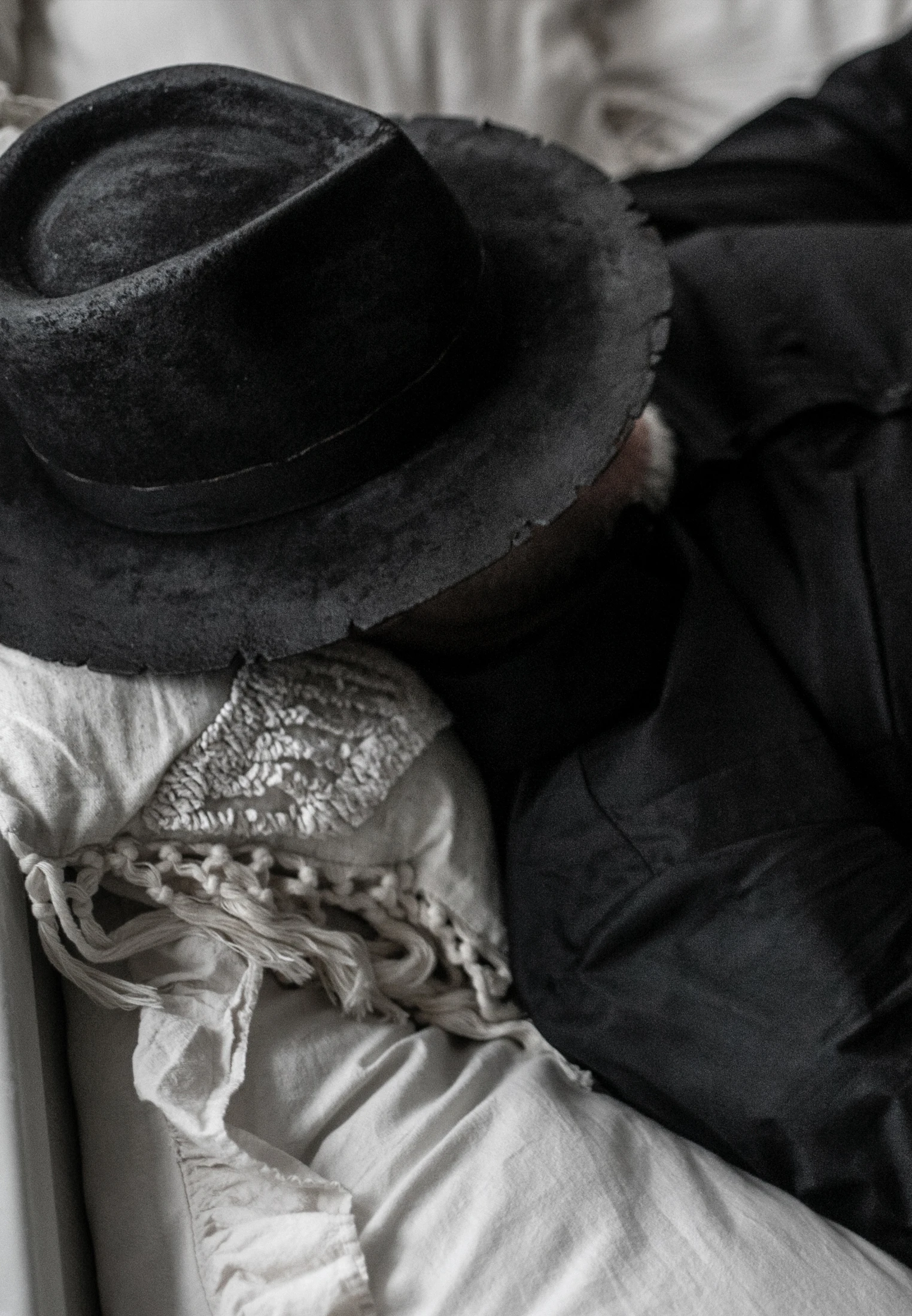 Фетровую шляпу не стоит носить под проливным дождём. Чтобы она лучше сопротивлялась влаге, рекомендуем обработать её водоотталкивающим средством для замши.