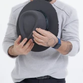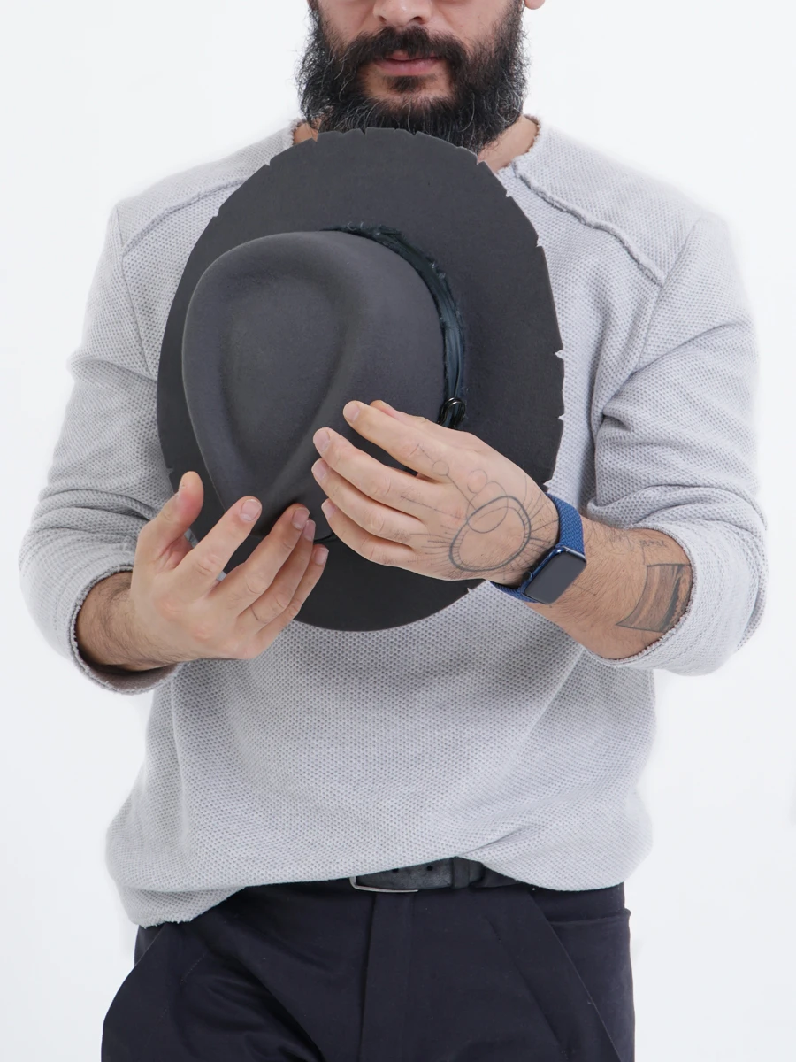 За основу шляпы взята самая классическая форма "Федора". Именно с ней больше всего экспериментируют производители шляп, потому что она подходит ко всему — от джинс до классического костюма. Всё зависит от обработки и декора.