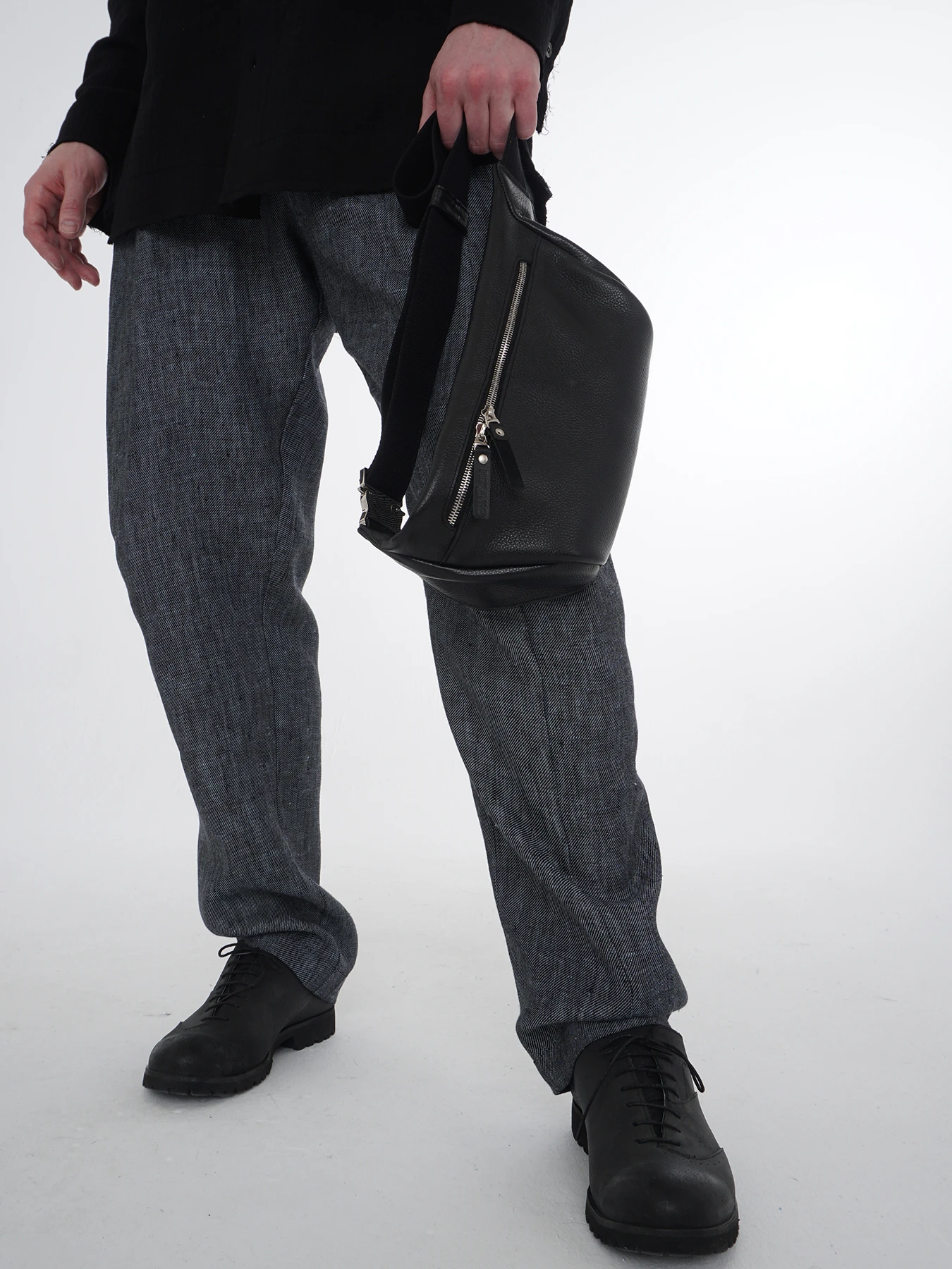 – чёрный полуматовый флотер натуральной разбивки (толщина 1,2–1,4 мм. Размятая мягкая кожа, изделия из которой служат долго и неприхотливы в уходе).