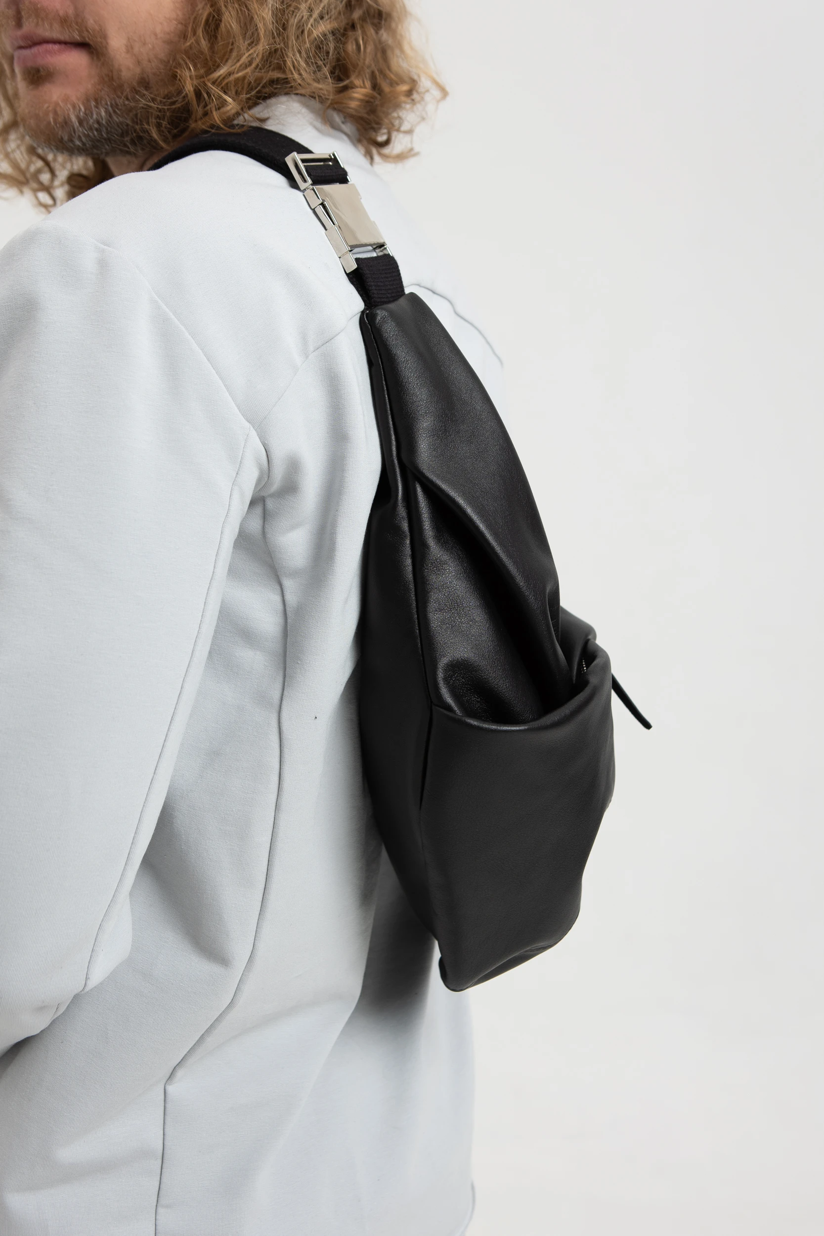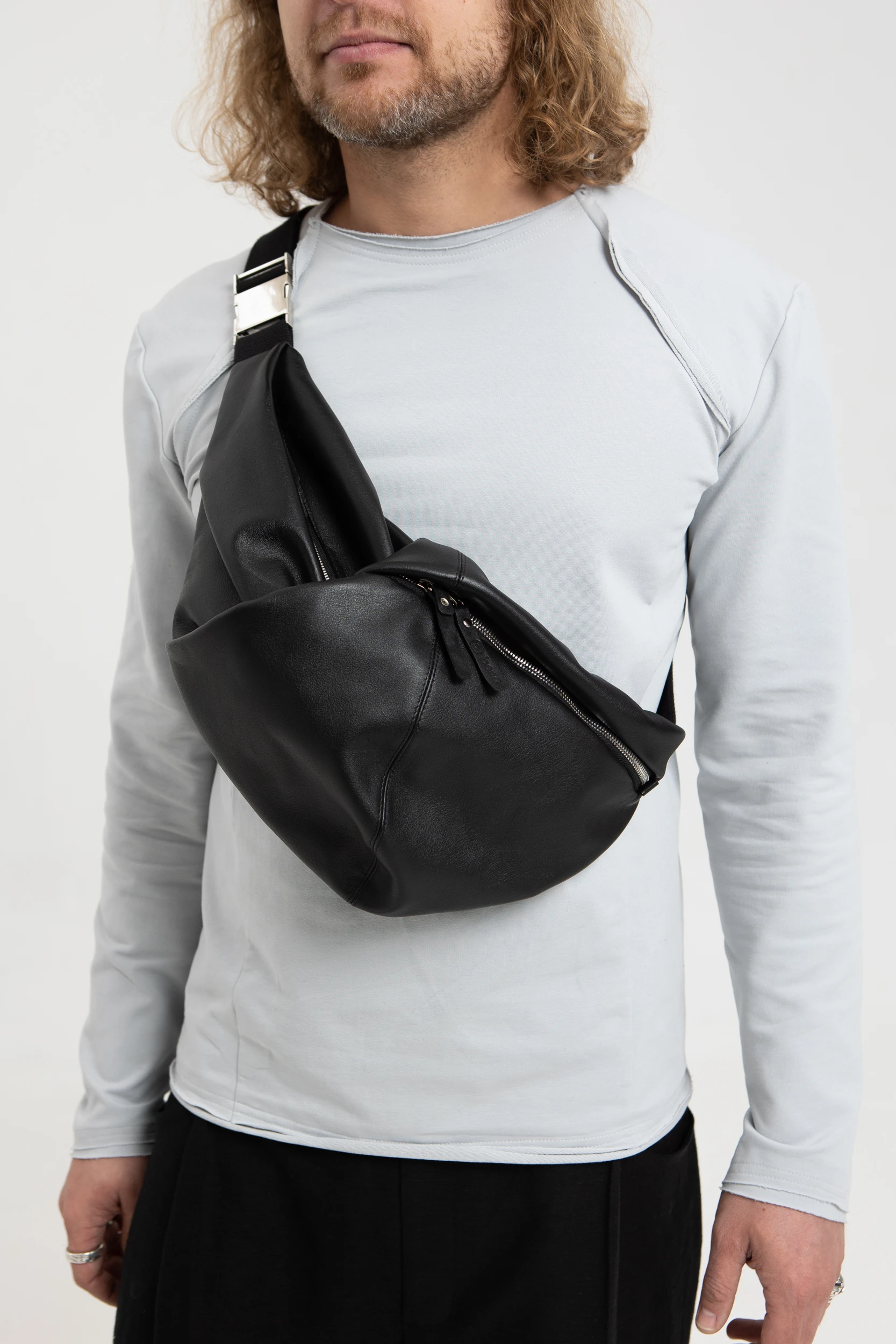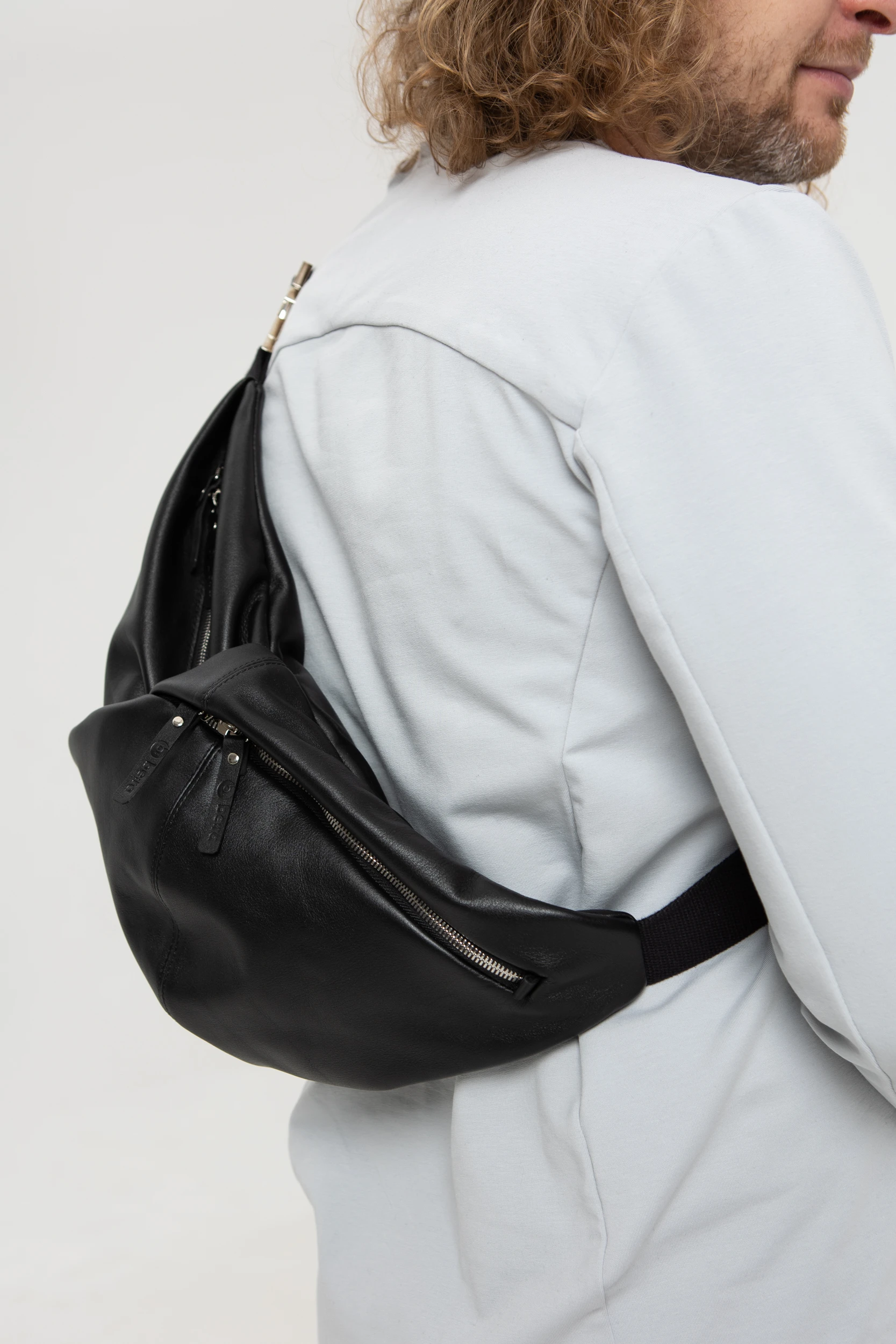 Нам очень нравится, как сумка смотрится не только на поясе, но и через плечо. Она прикольно закручивается вокруг тела и с каждой стороны, в каждом положении смотрится по-новому.