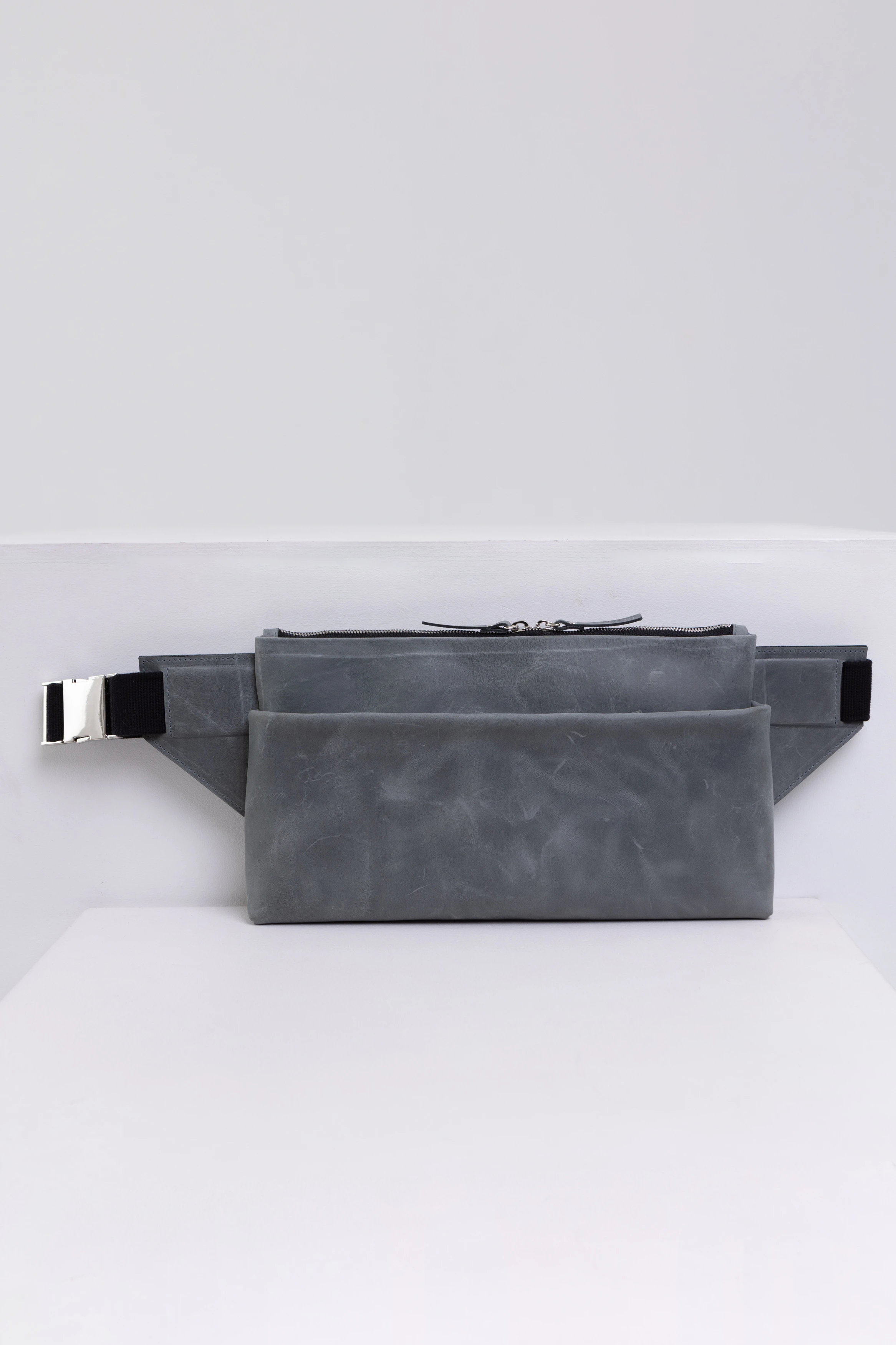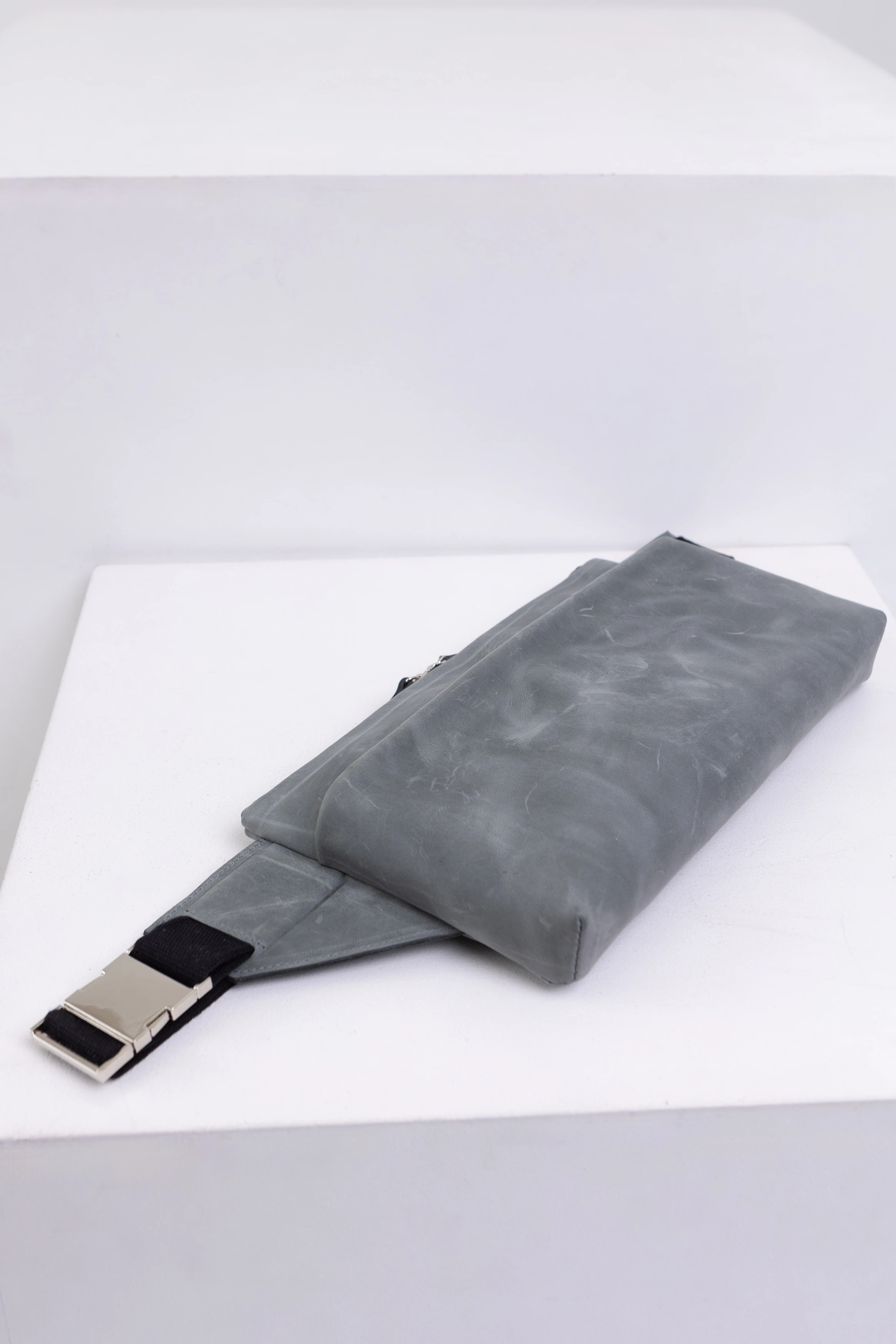 Натуральная кожа - серый вощеный пуллап (толщина 1,1-1,3 мм. Мягкая вощеная кожа с неоднородным покрасом. Приятная наощупь и эффектная. Со временем приобретет более темный оттенок в местах трения с одеждой)