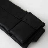 Прямоугольная классическая форма, застёжка на молнию, карманы: два спереди и один сзади.