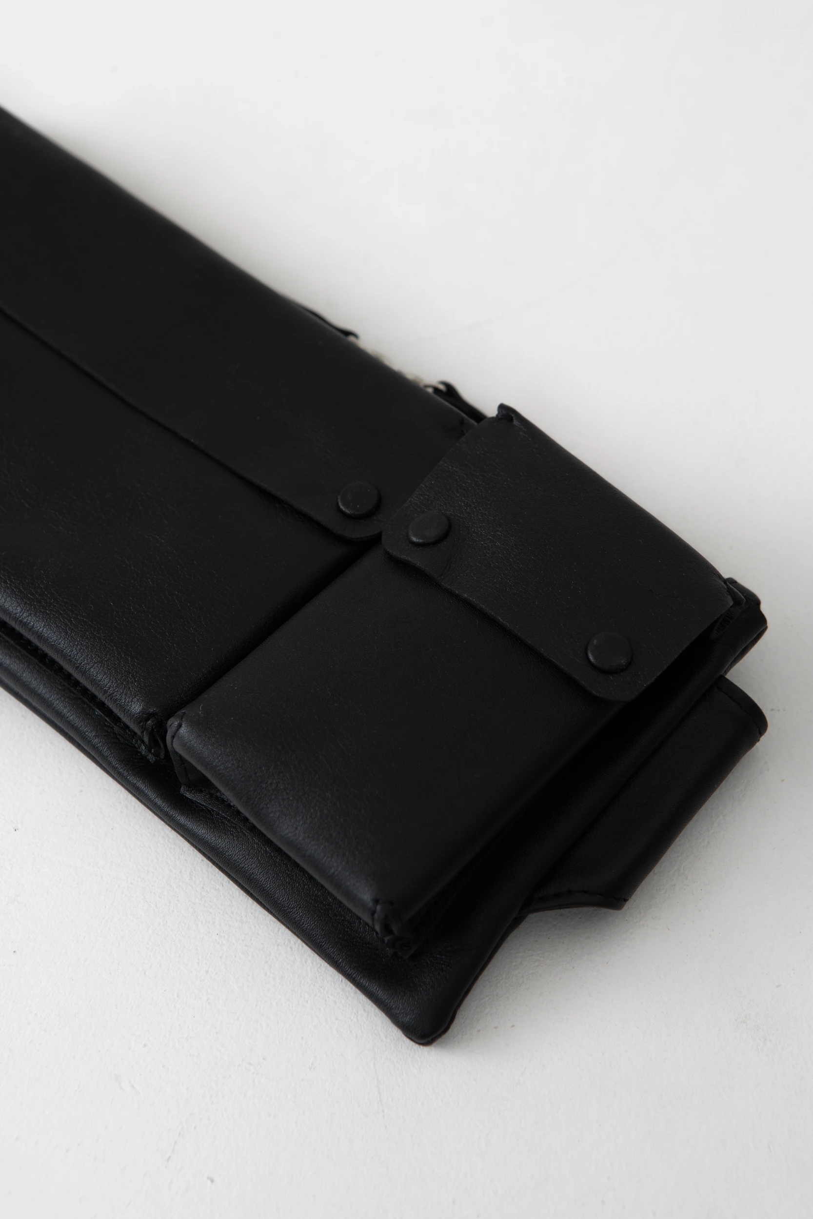 Чёрная полуматовая классическая (толщина 1,2–1,4 мм). Размятая мягкая кожа, изделия из которой служат долго и неприхотливы в уходе.