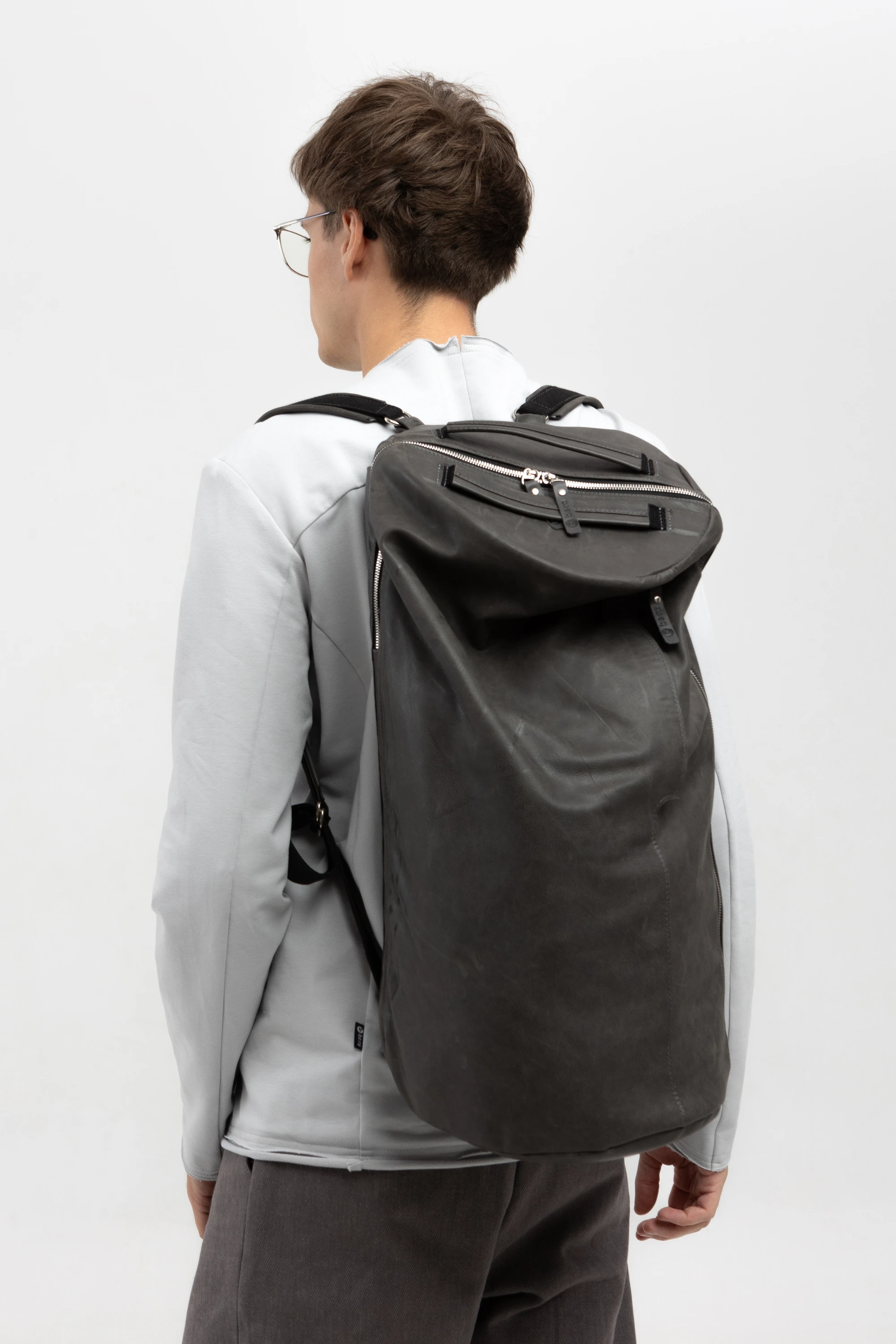- серый вощеный пулап (толщина 1,1-1,3 мм. Мягкая вощеная кожа с неоднородным покрасом. Приятная наощупь и эффектная. Со временем приобретет более темный оттенок в местах трения с одеждой)