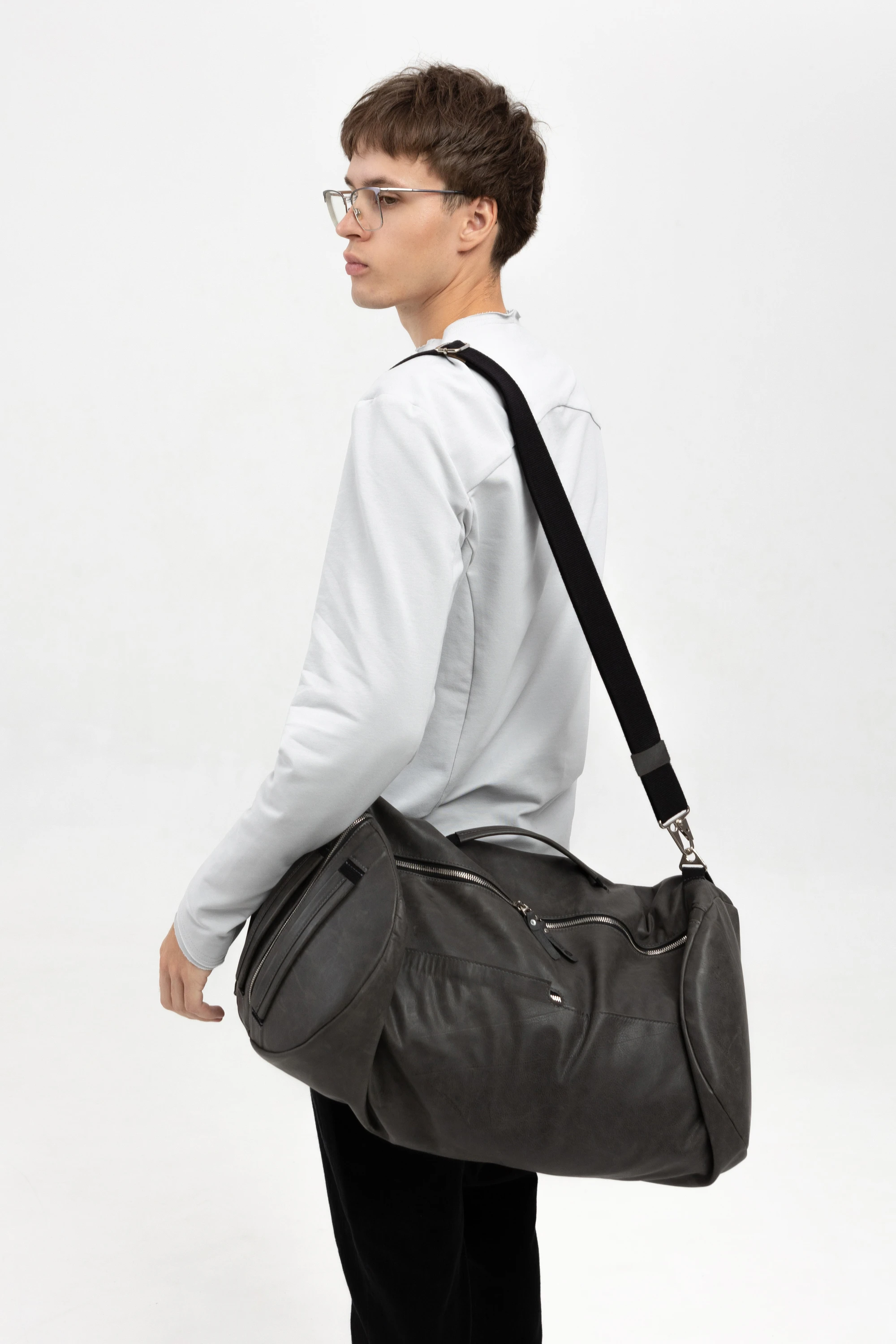 За основу мы взяли классическую спортивную круглую сумку. Это классная и универсальная модель. Ее удобно носить на плече, через плечо, в руке. Она стильно смотрится. Она - привычная.