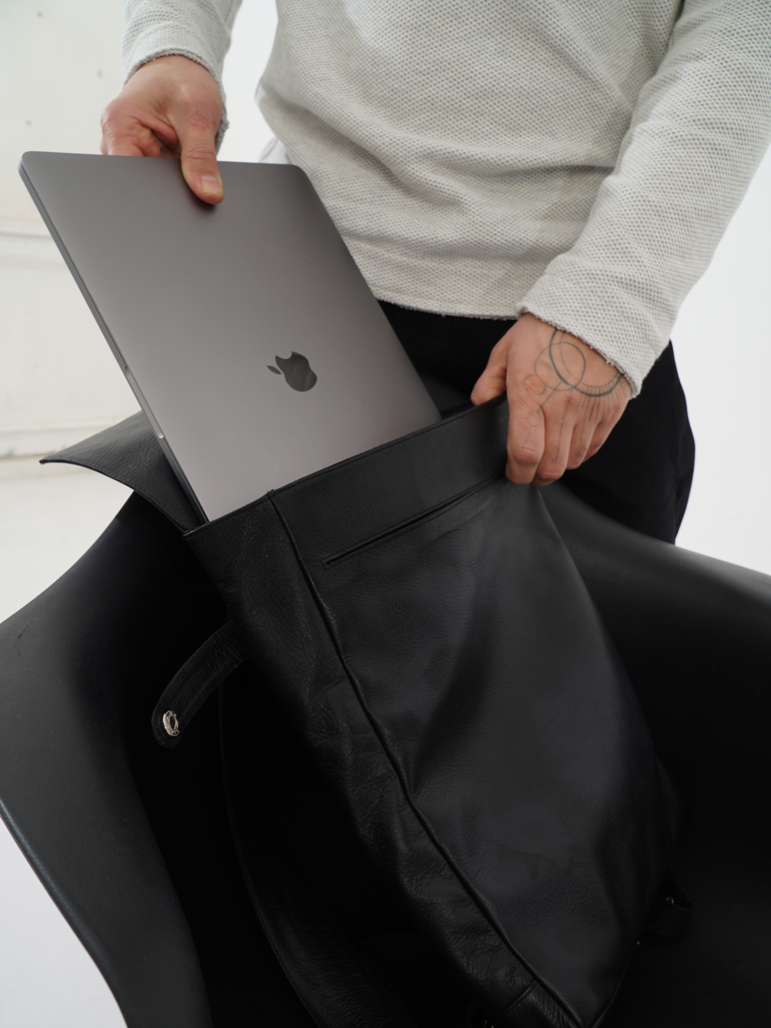 Узкий городской рюкзак для ноутбука. Объем около 8 литров.