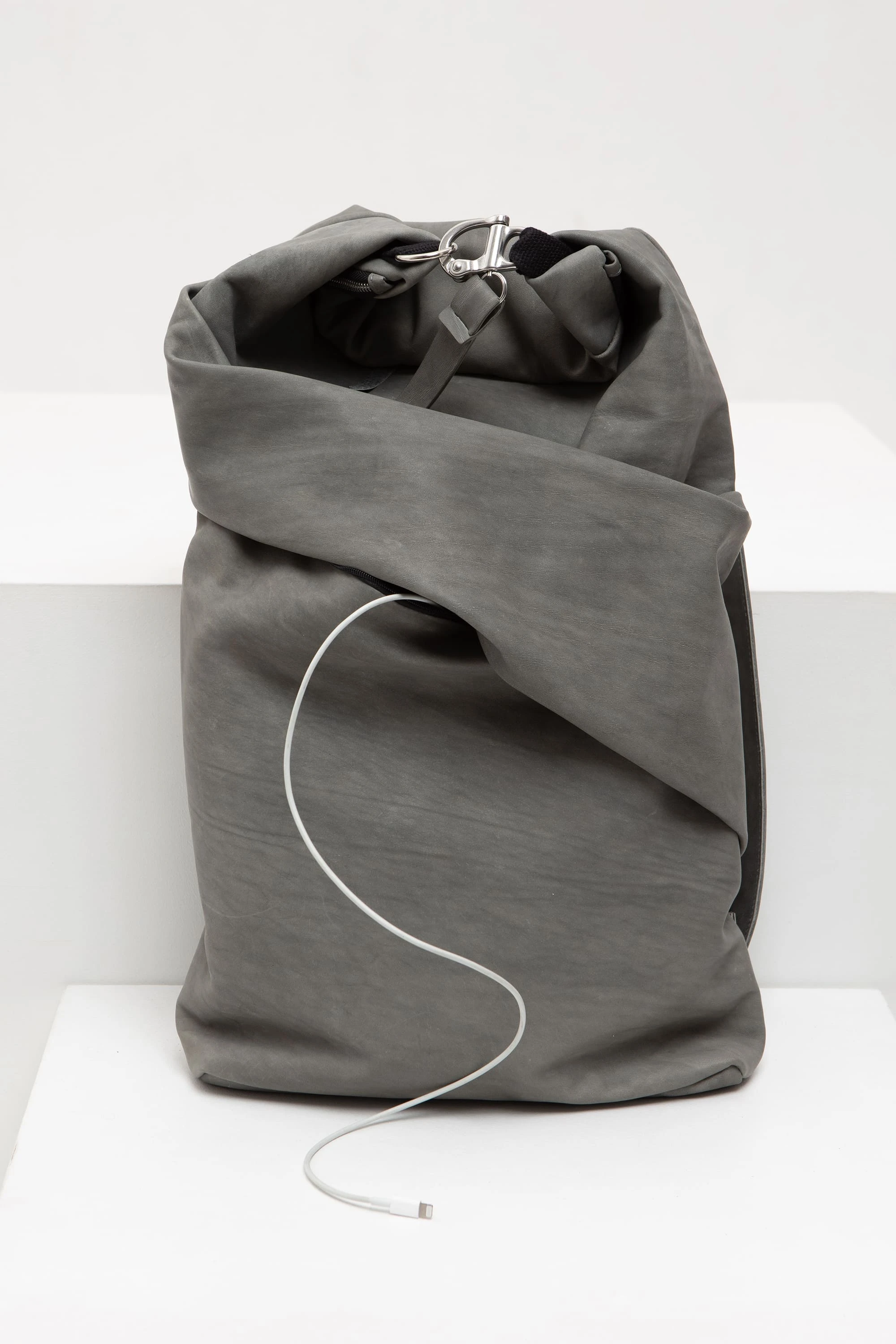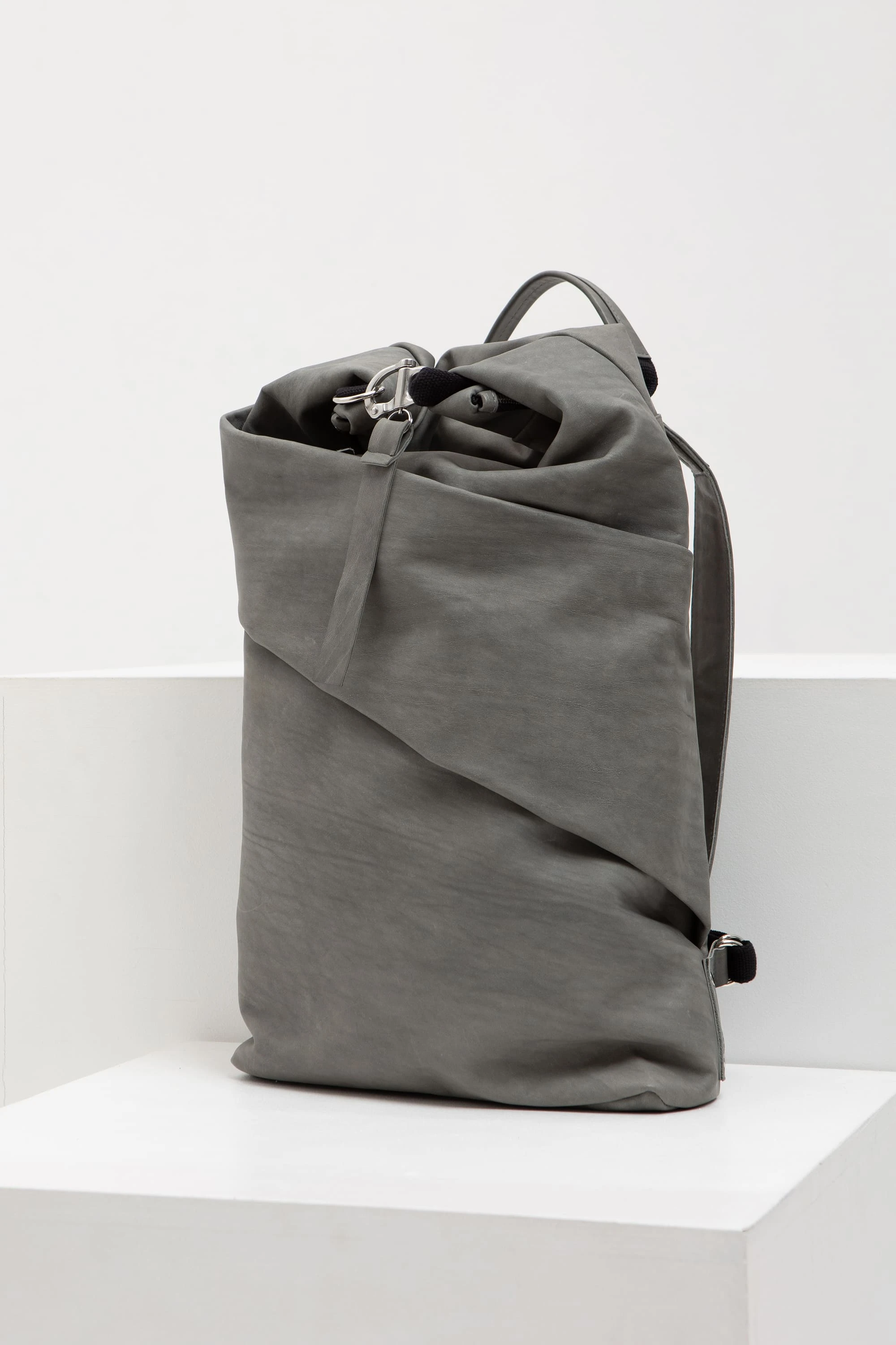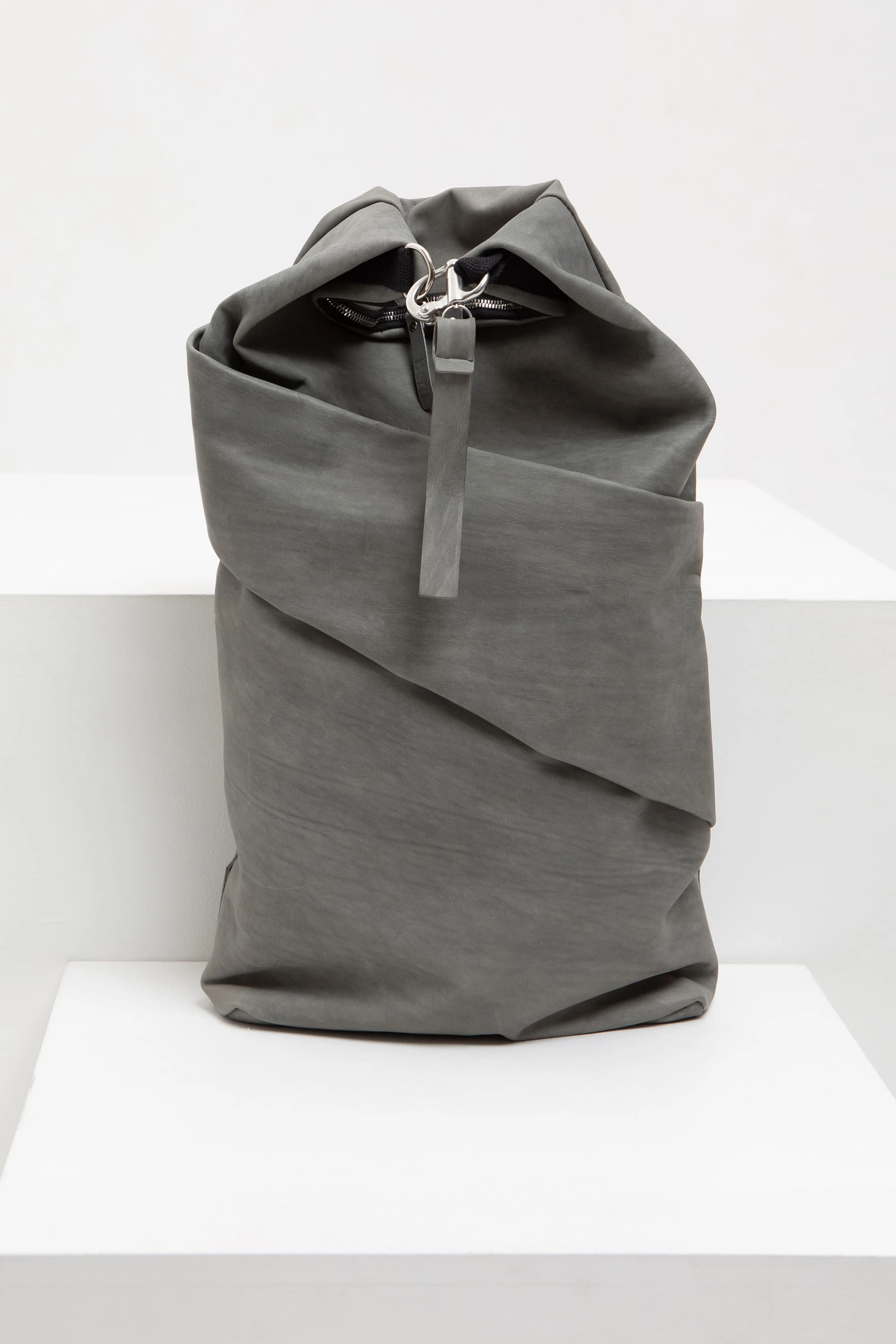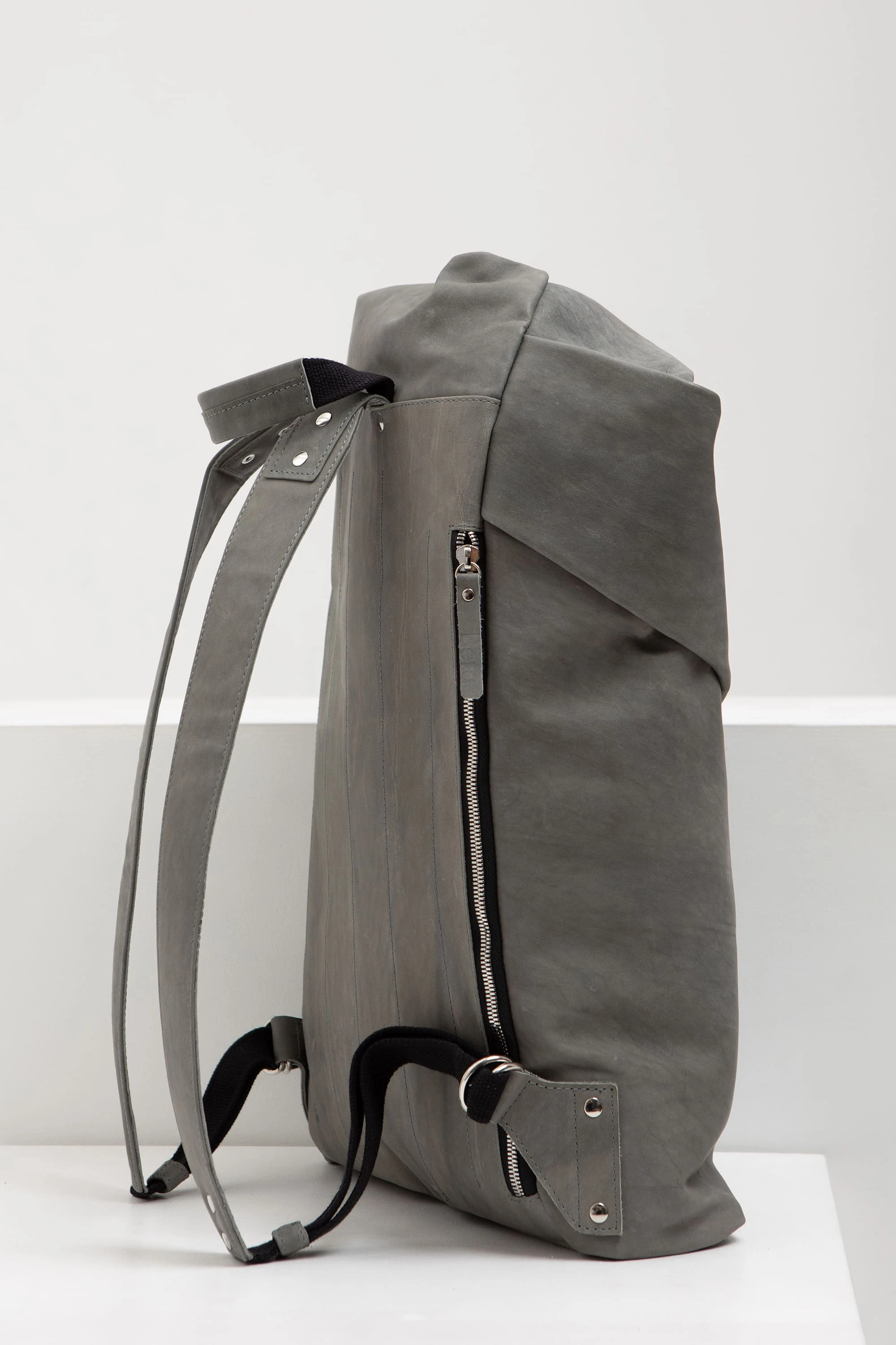 Серая винтажная (толщина 1,2–1,4 мм. Плотная кожа с винтажным эффектом. Заломы контрастные и графичные. Со временем, скорее всего, цвет станет более тёмным, а цвет заломов — менее контрастным)