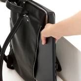 Полуматовая чёрная (толщина 1,2–1,4 мм. Размятая мягкая кожа, изделия из которой служат долго и неприхотливы в уходе)