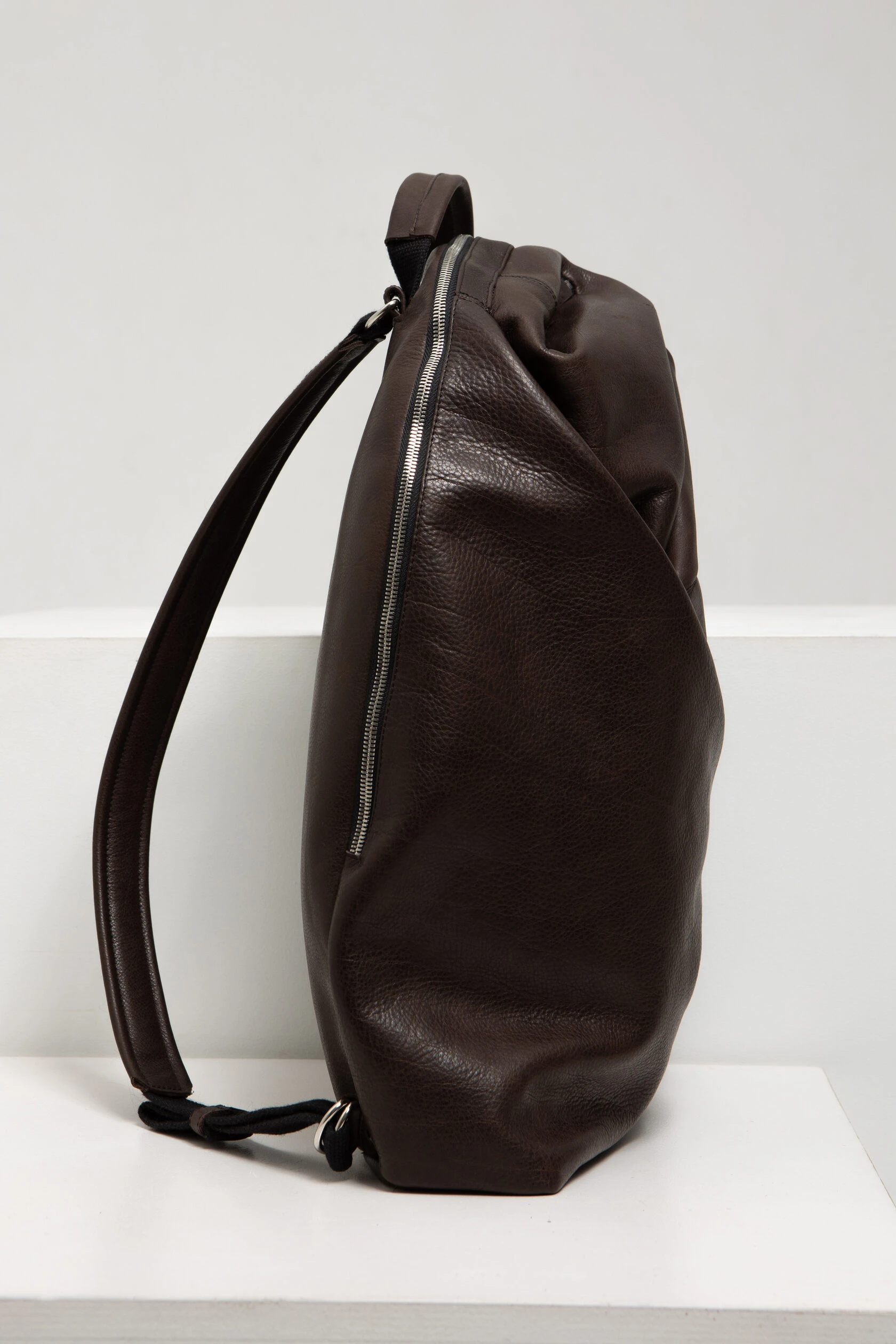 Рюкзак классической овальной формы, а в профиль — каплеобразный. Визуально кажется небольшим, но имеет достаточную рюкзачную глубину — 10 см. Это значит, что он вместит вещи для небольших командировок, путешествий выходного дня и будет комфортен для городских будней.