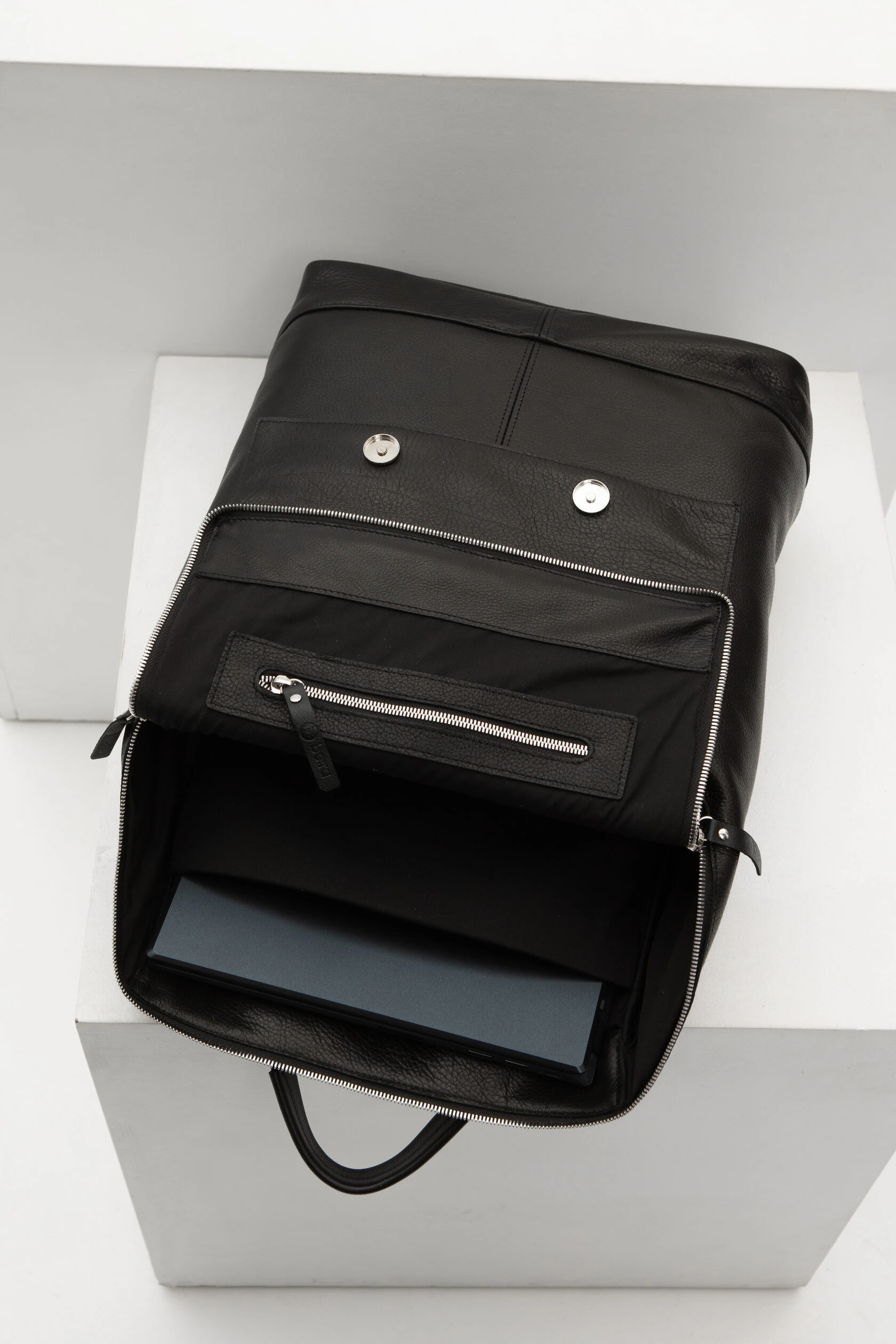 Внутри рюкзака есть отдельный уплотнённый карман для ноутбука до 17 дюймов и один карман на молнии для документов.