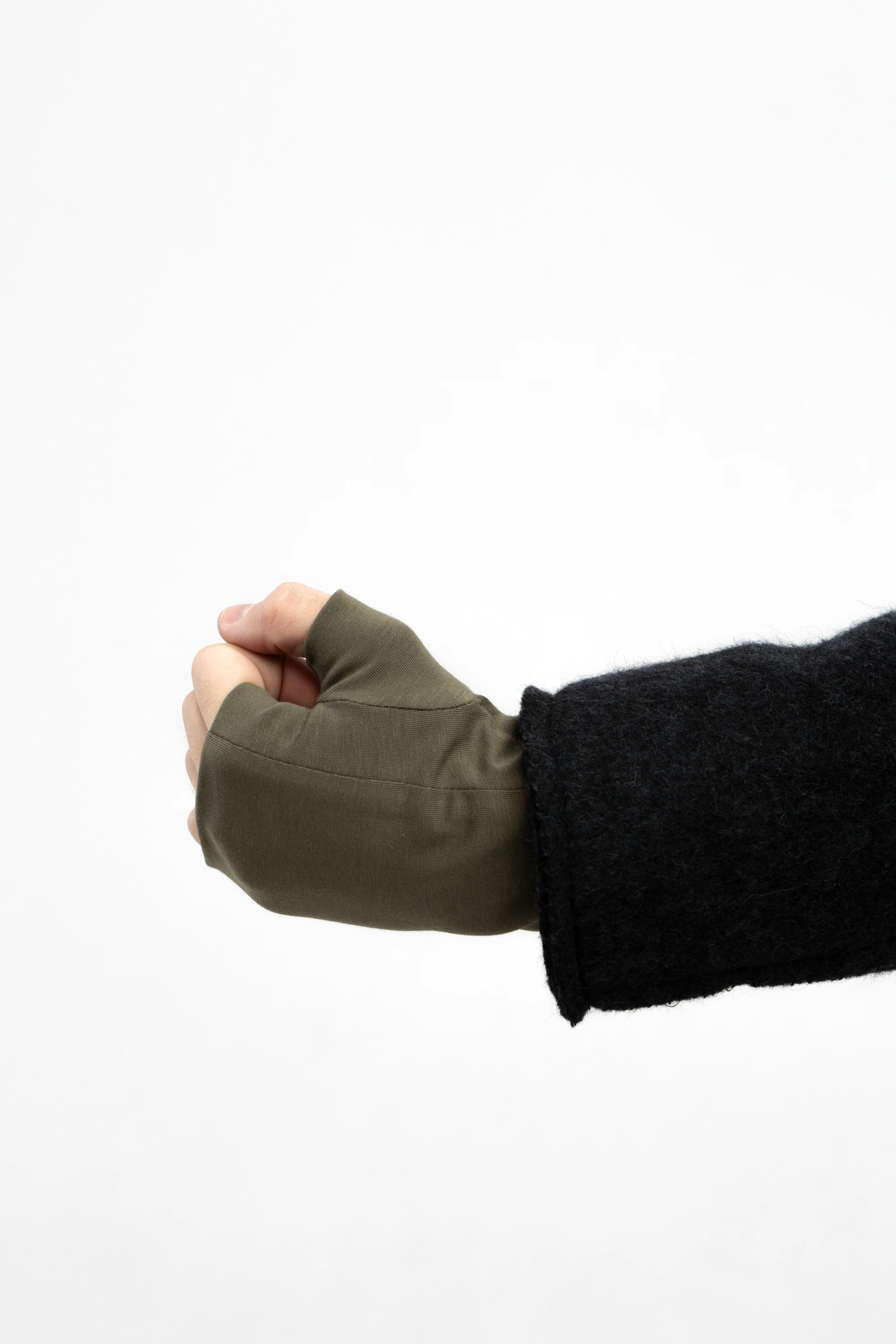 Мужские митенки из двухслойного хлопкового трикотажа. Для тех, кто мёрзнет в руках, но не готов расставаться со смартфоном. Они прикрывают ладонь и запястье, оставляя пальцы свободными: удобно держать руль, набирать сообщения, листать плейлист или оплачивать покупки, не снимая аксессуар.