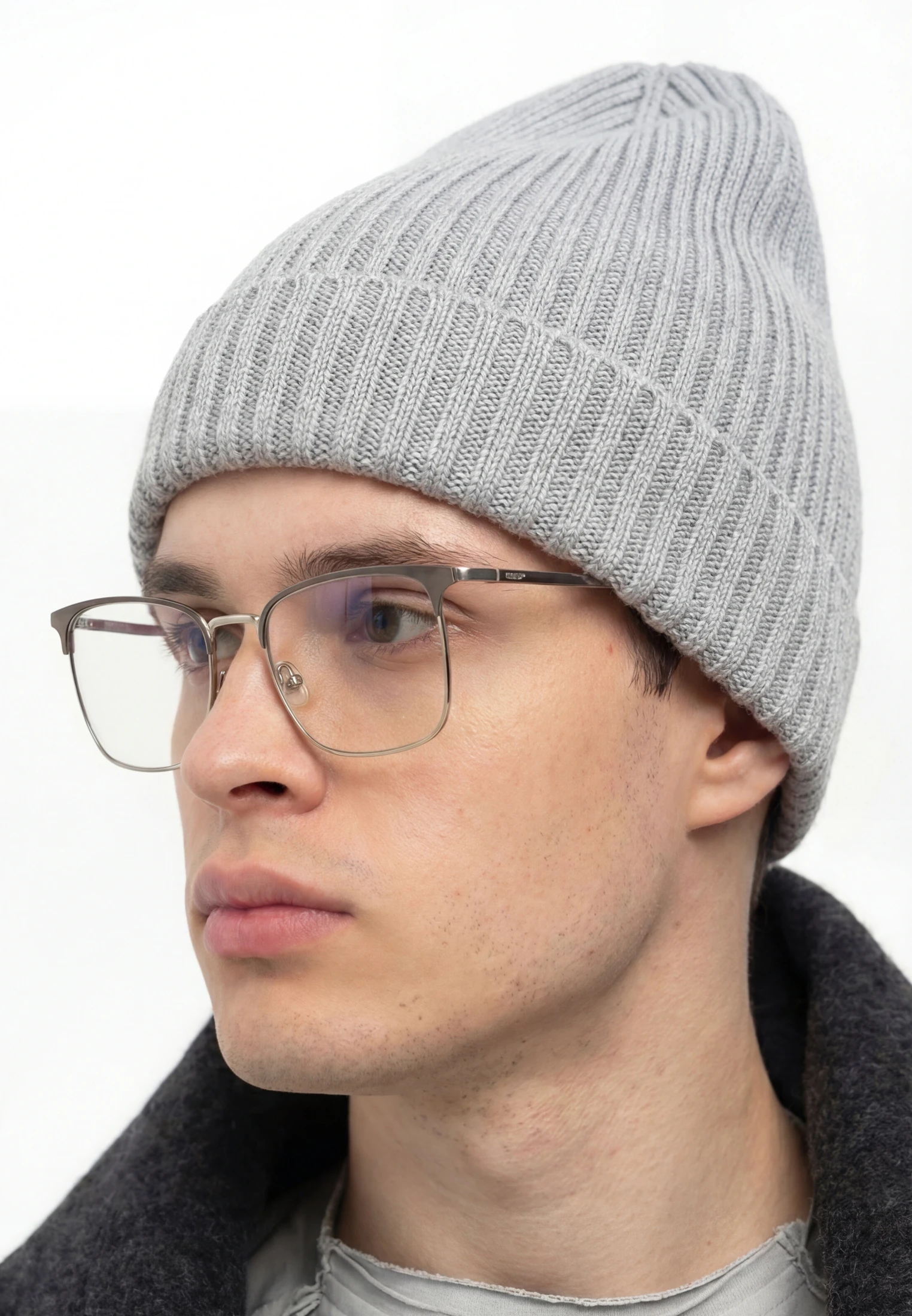 Шапка бини двухслойная темно-серая