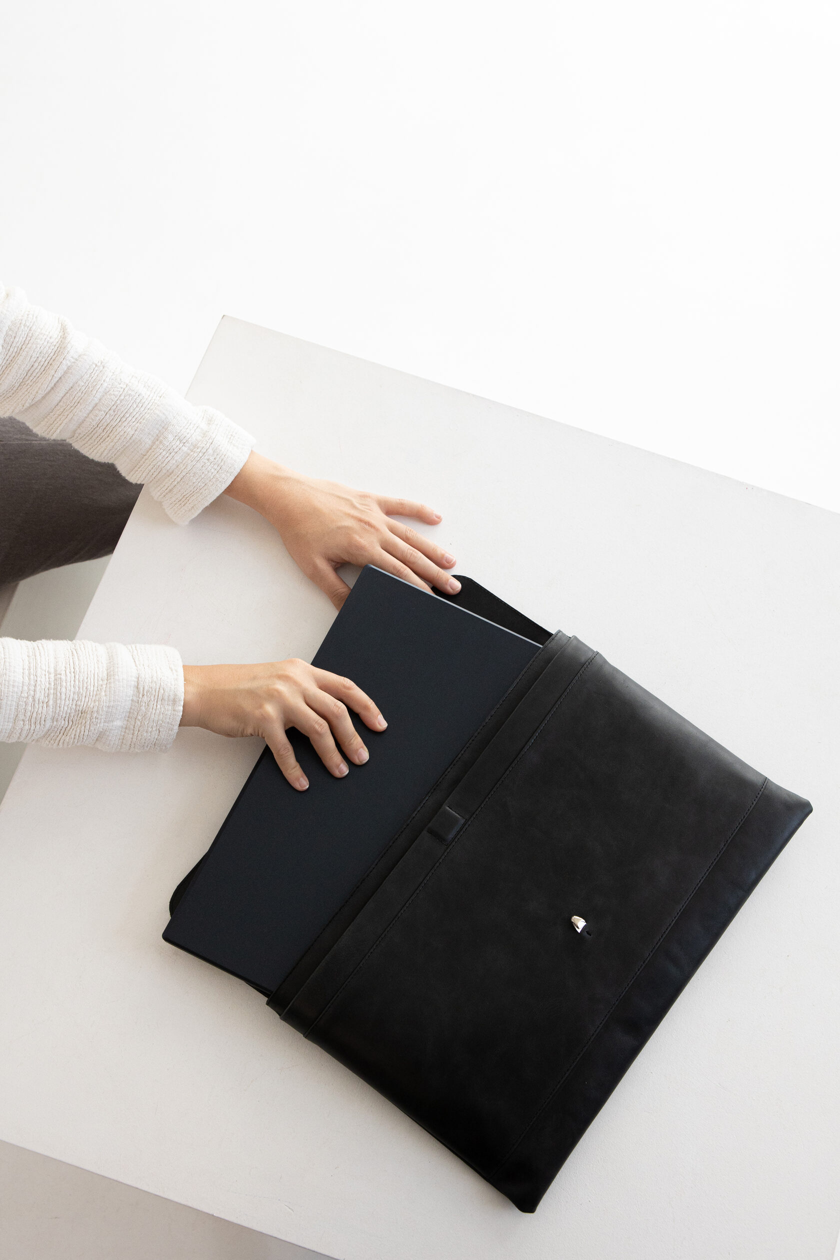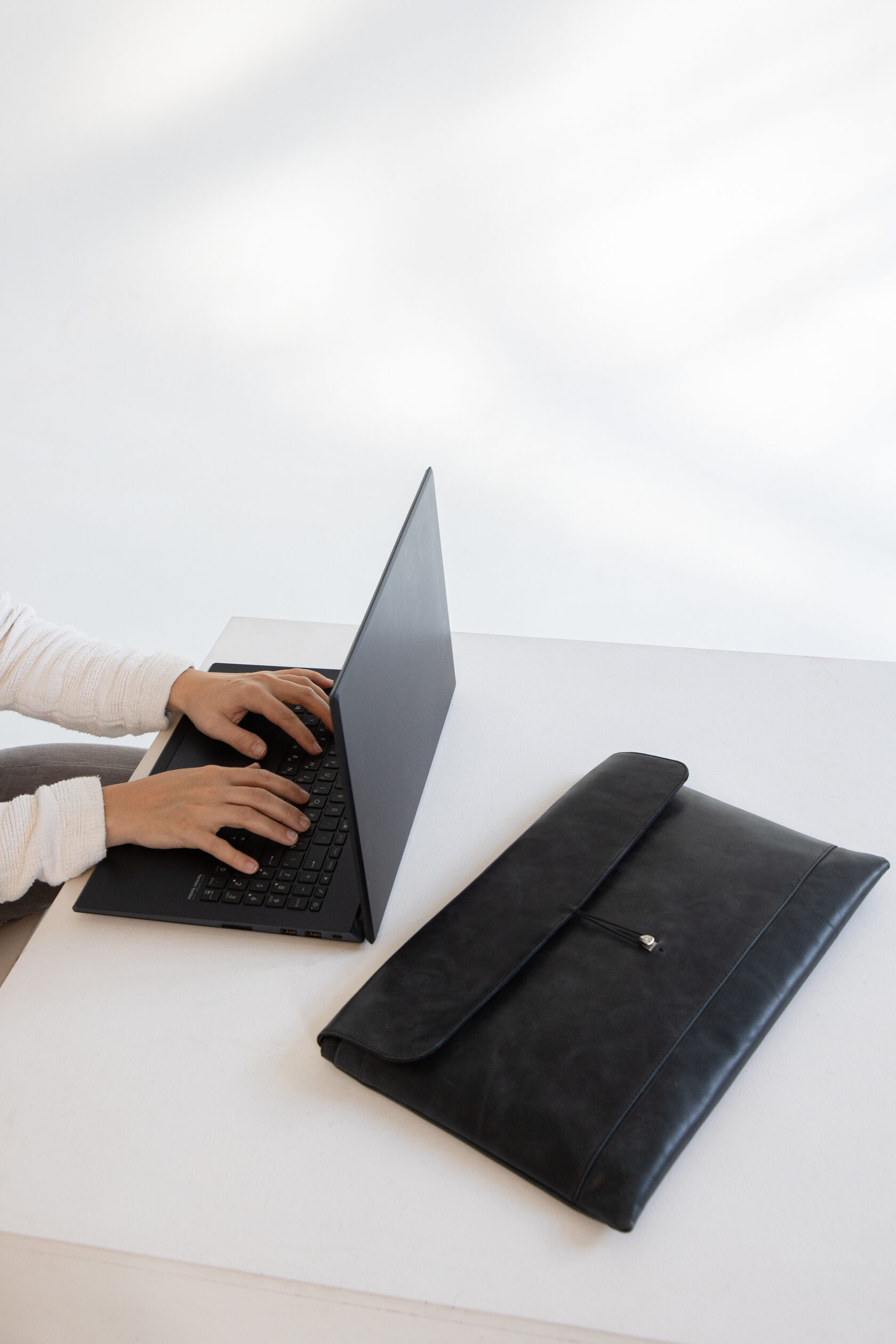 Сумка-папка для ноутбука с хлопковым подкладом, полностью уплотнённая пенным материалом для максимальной защиты гаджета.