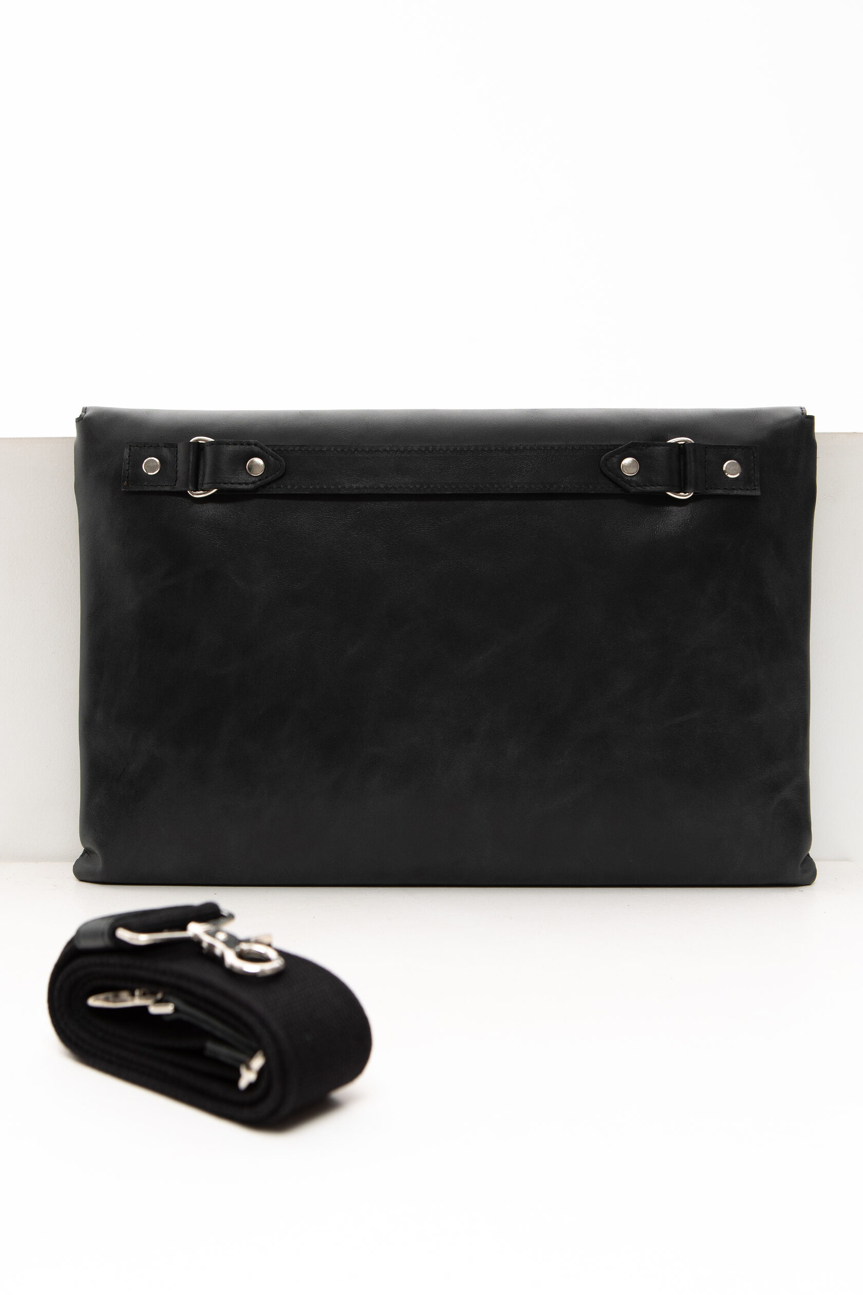 Под клапаном, на всю ширину сумки, расположен карман для зарядного устройства и мышки — на скрытой магнитной застёжке.