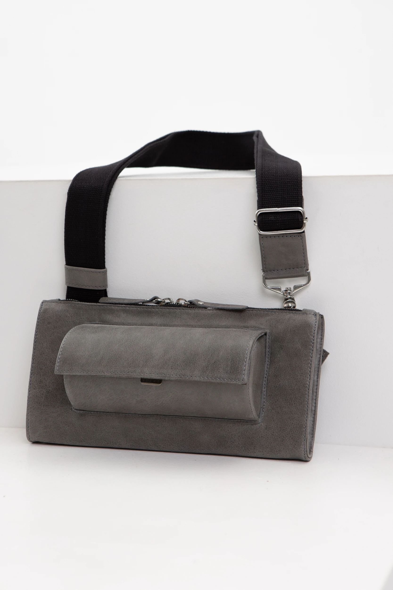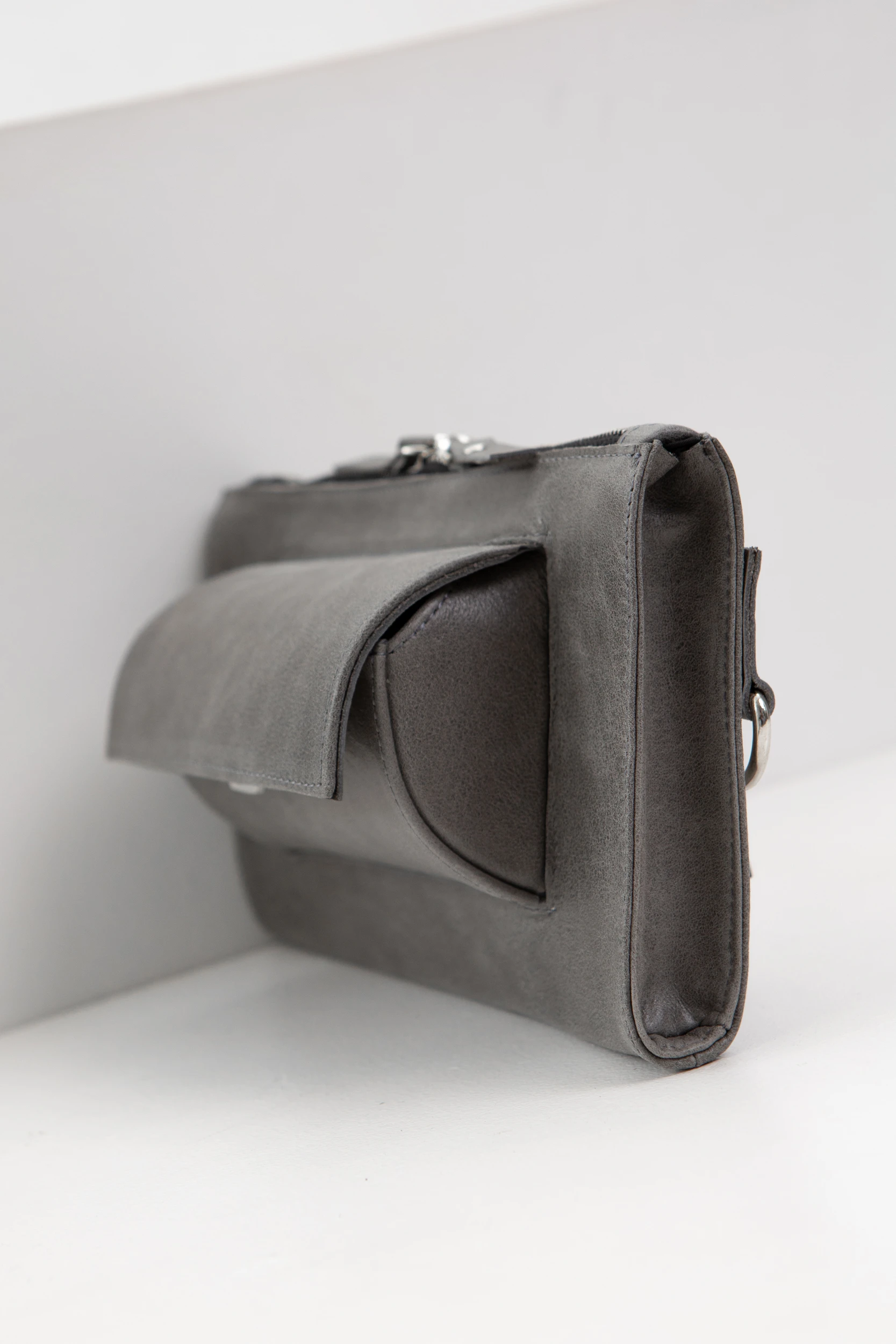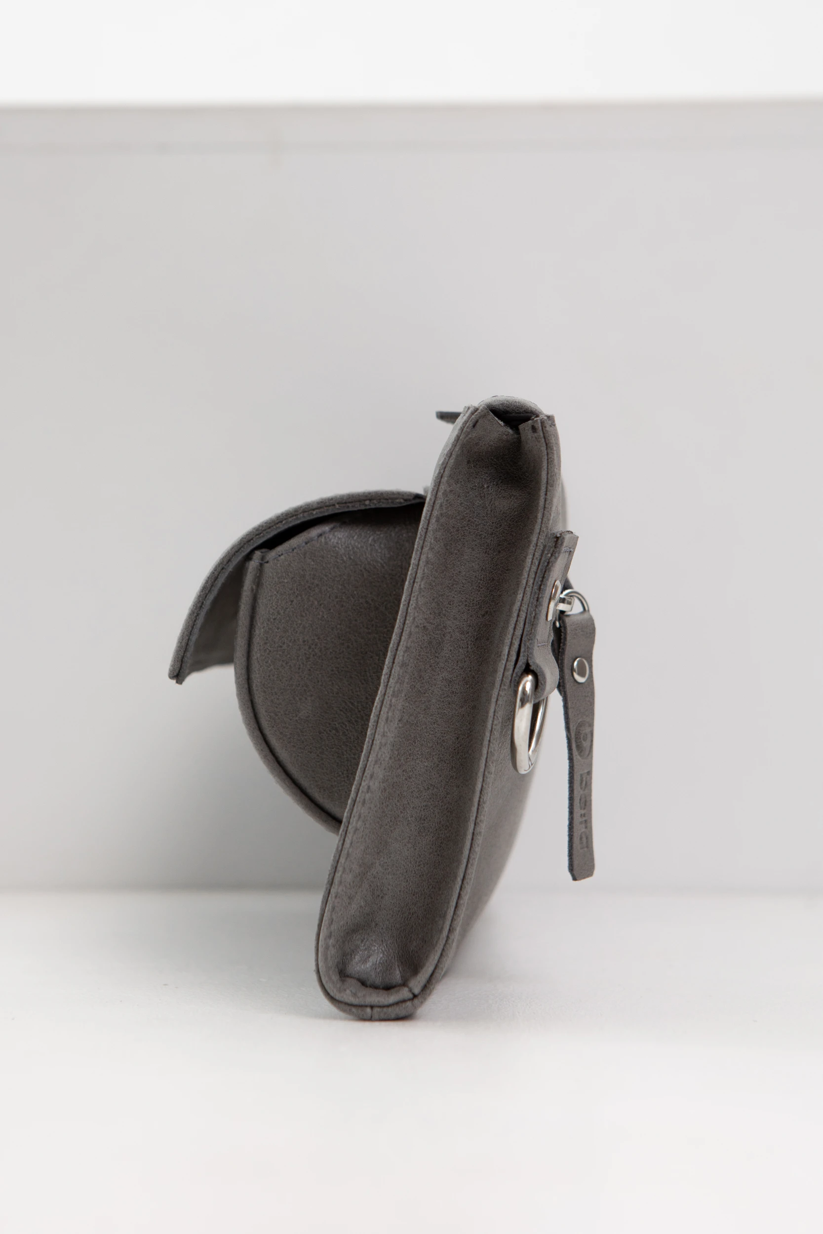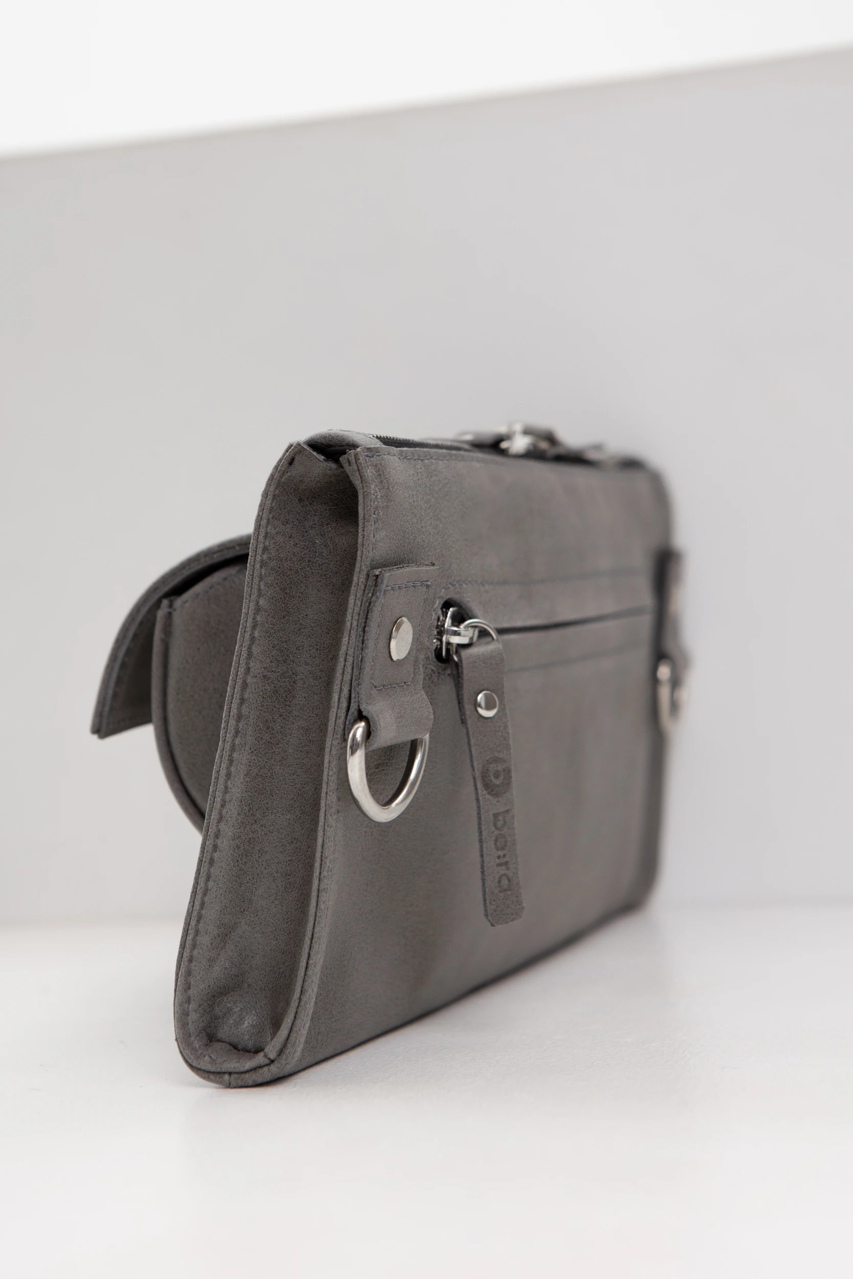 Серая вощеная кожа с лаковым матовым финишем (толщина 1,2-1,4 мм. Мягкая, матовая, слегка замшевая на ощупь кожа)