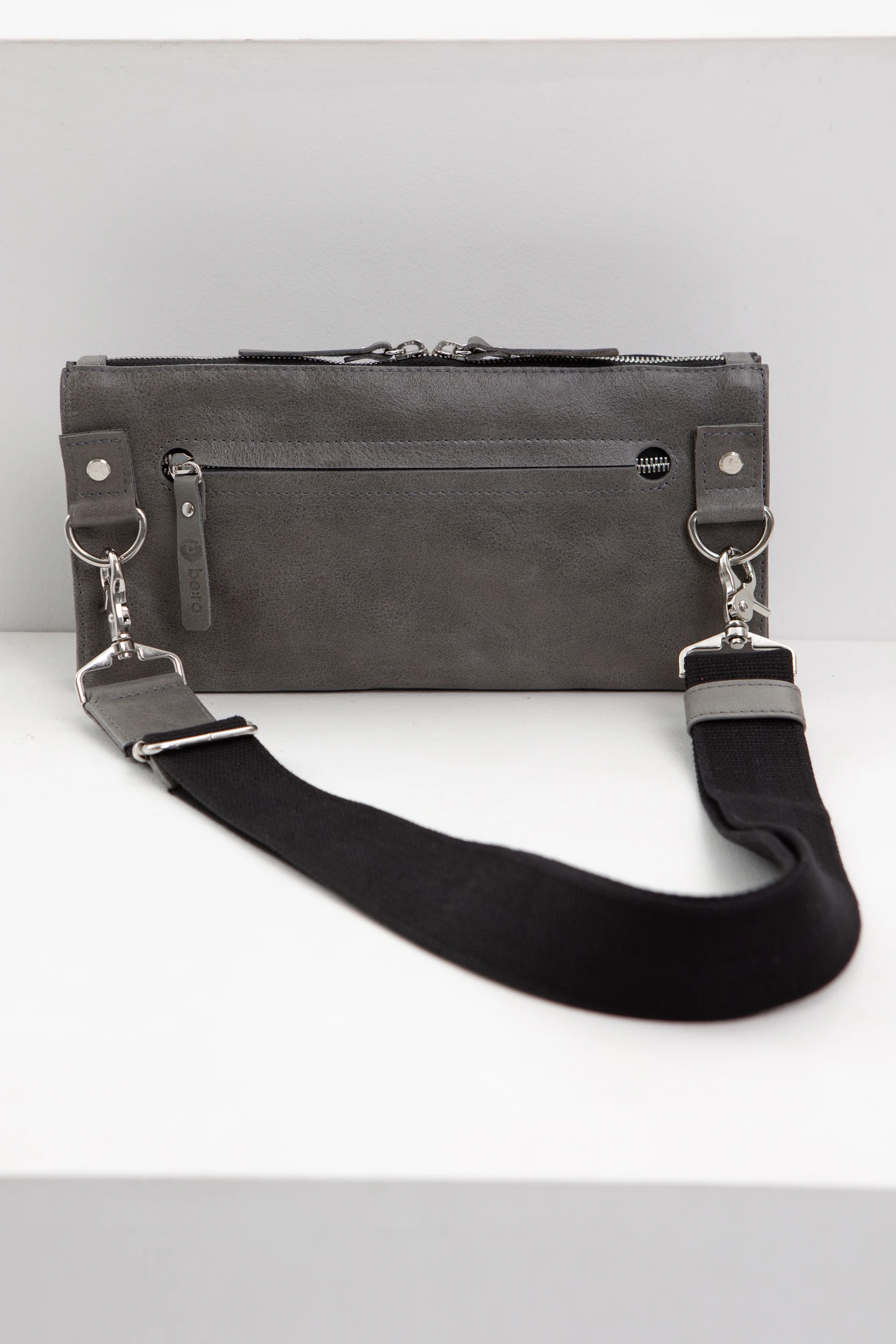 На задней части сумки — карман на молнии под кожаными планками. Мы спрятали молнию под планки, чтобы она не бросалась в глаза.