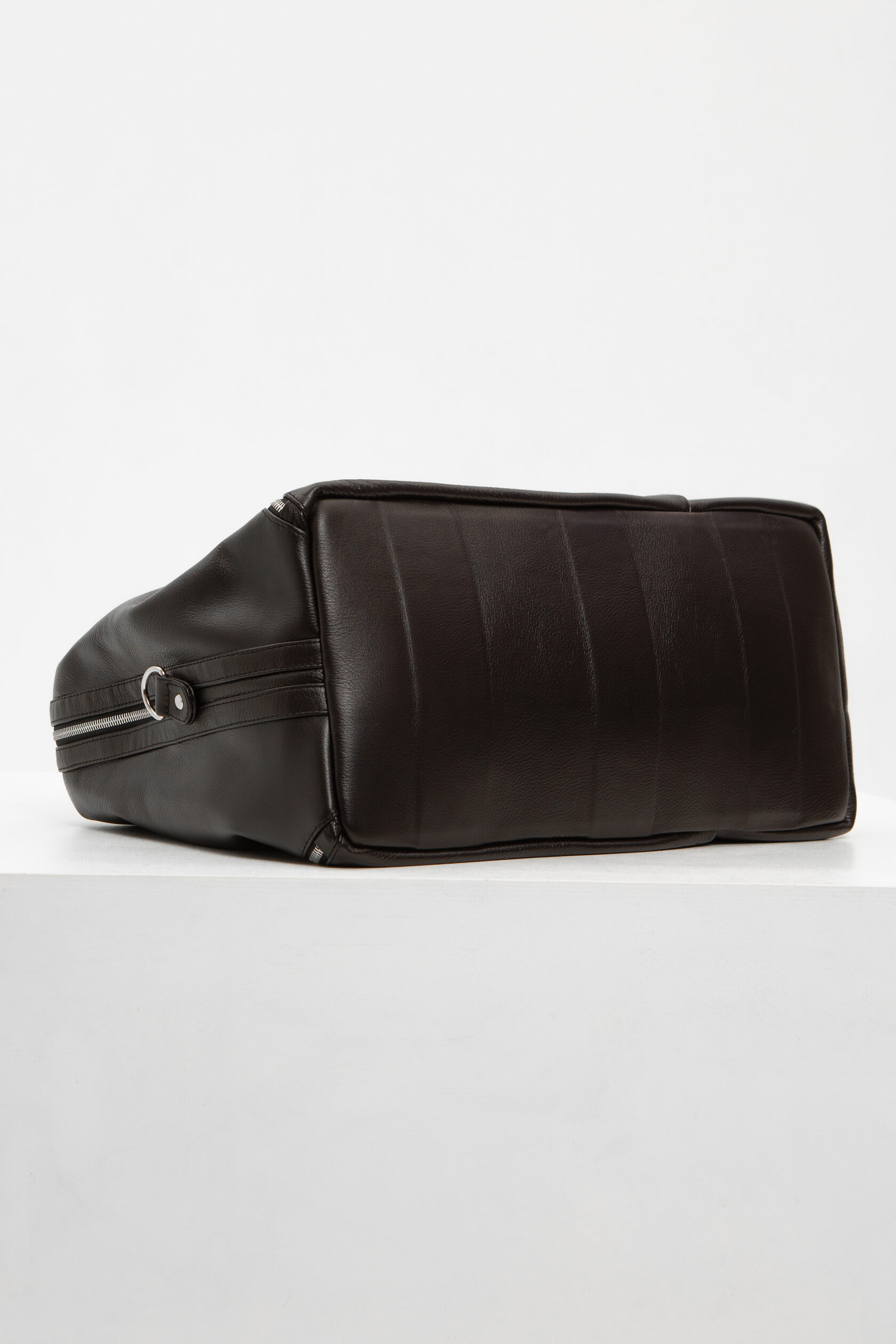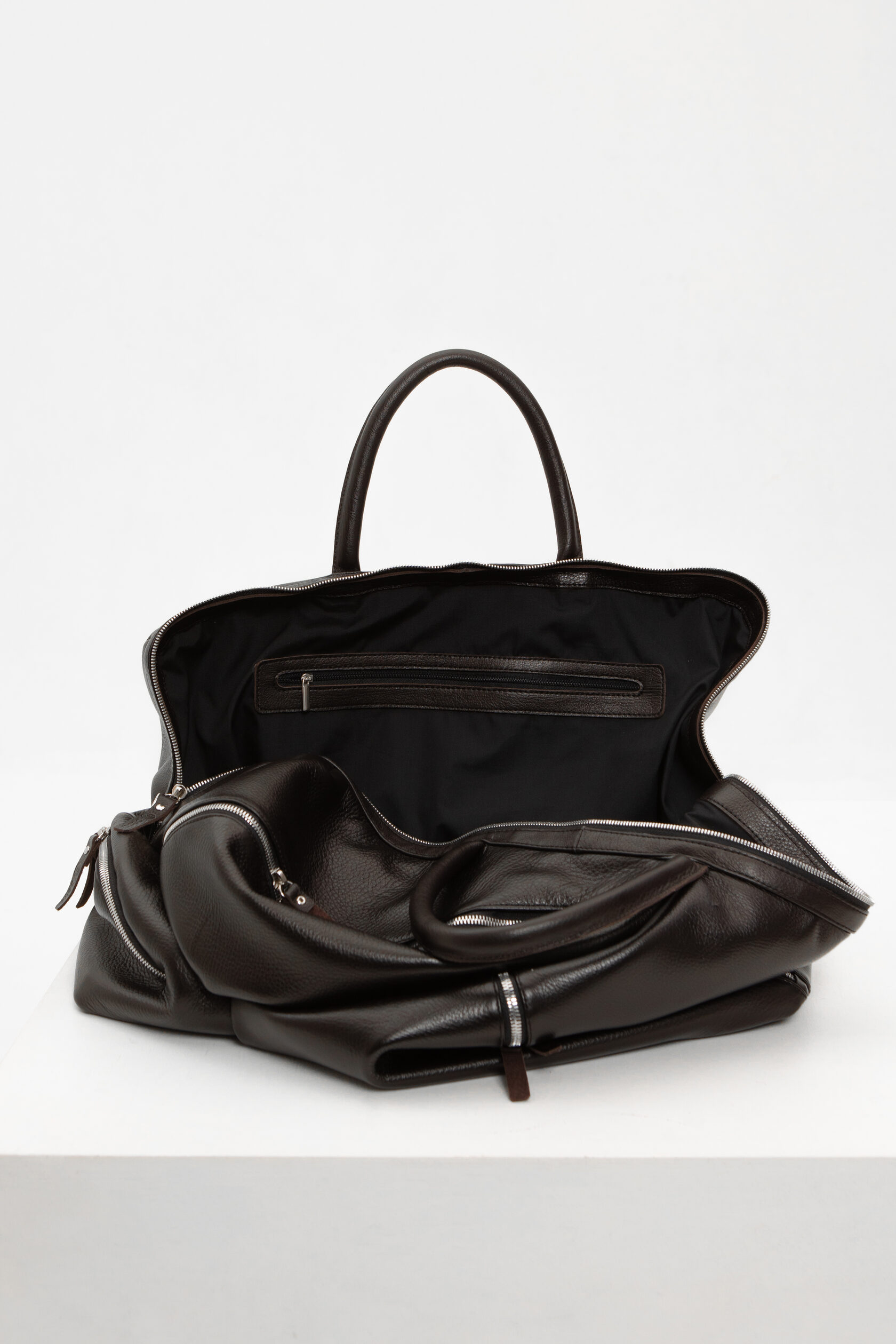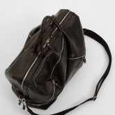На самом деле основное отделение саквояжа имеет классическую, трапециевидную в сечении форму и застегивается на не менее классическую двухзамковую металлическую молнию. Внутри есть один большой карман на молнии.