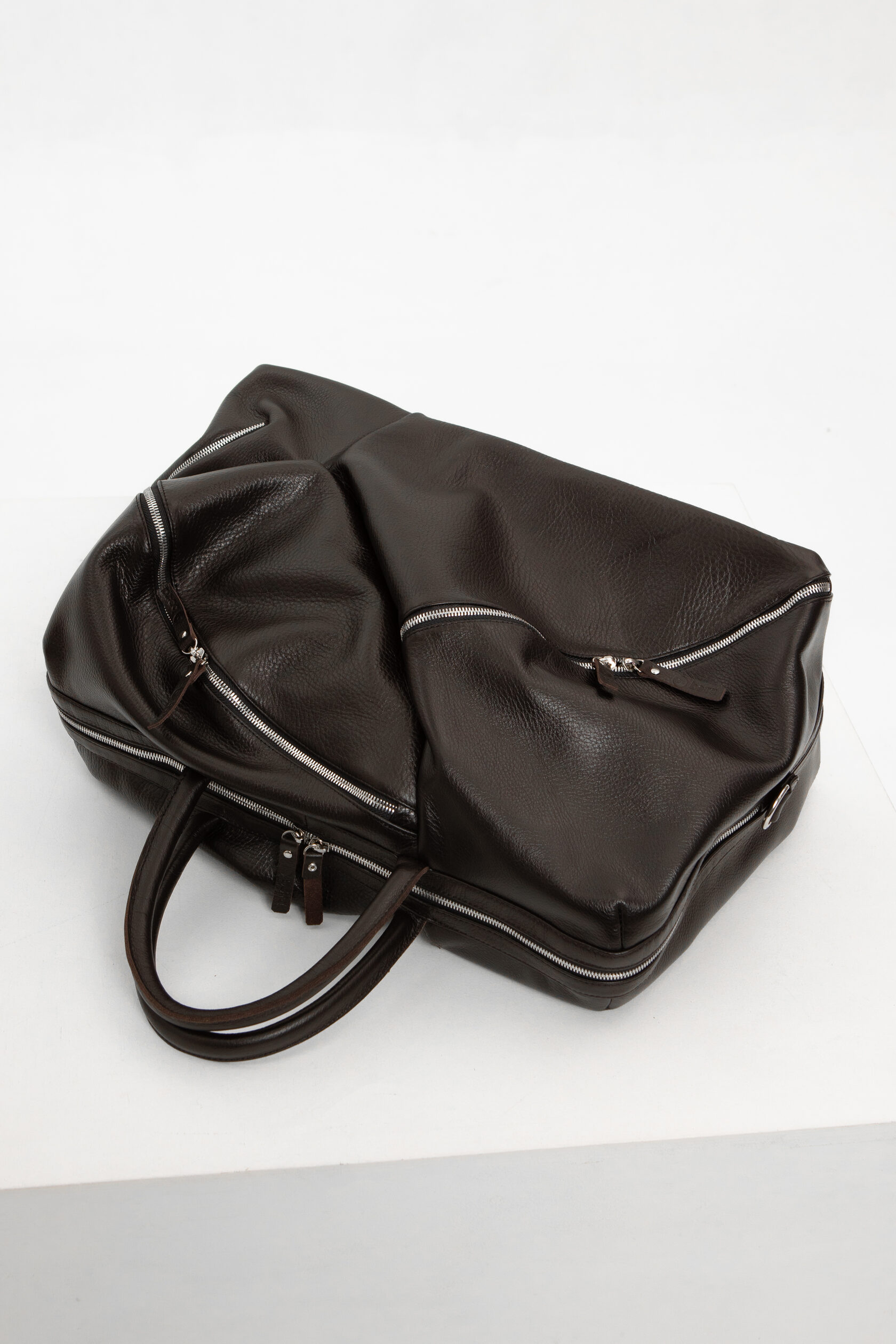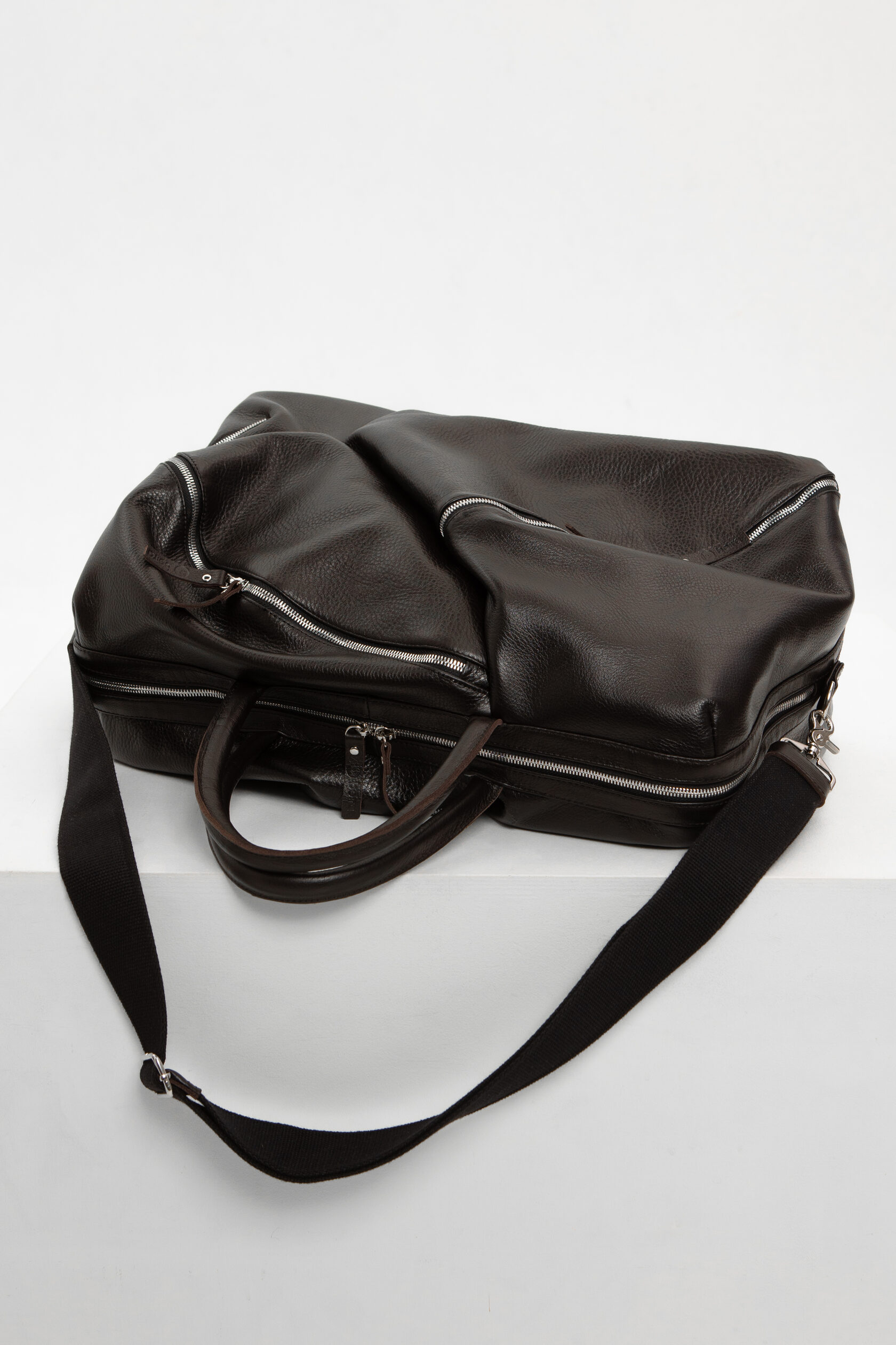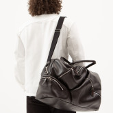 Система внутренних подвесов идёт от всех лямок и уходит в дно саквояжа. Вы можете нащупать эти технические стропы внутри. Именно благодаря этой системе нагрузка на место вшивания ручек перераспределяется, место вшивания не растягивается, а ручка не вырывается.