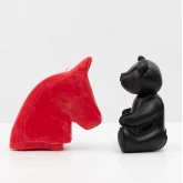 Каждый выпуск медведей посвящен наступающему году. 2026 год - год Красной Огненной Лошади. Поэтому be:raBe@r в этом году спрятан внутри красного коня, голова которого - большая красная свеча, горящая около 170 часов.