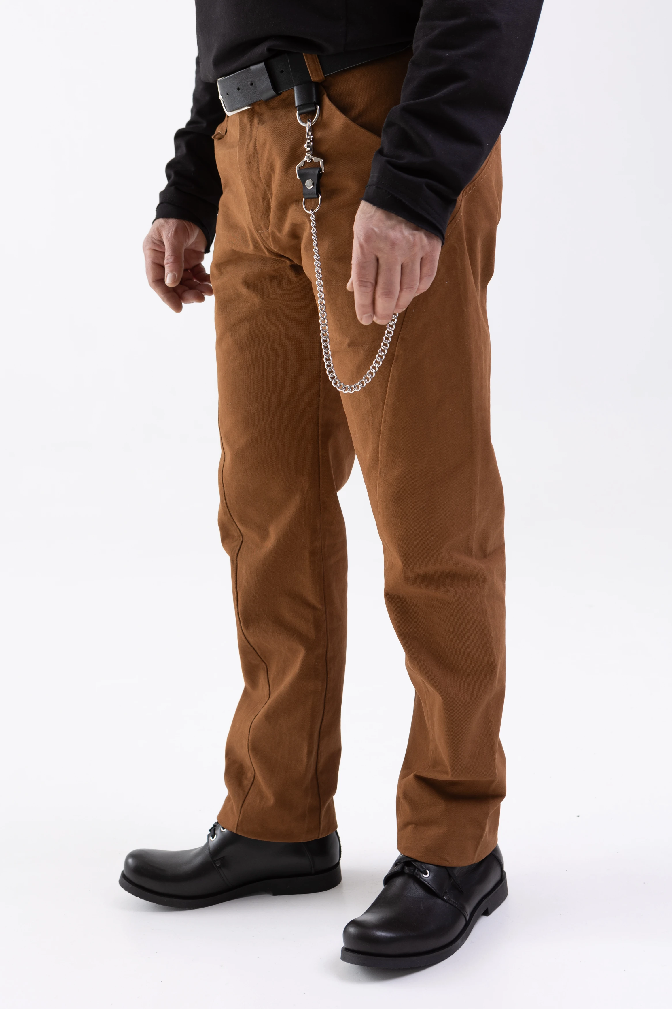 Брюки прямые, по силуэту исходные Levi Strauss 508, но с необычной «нарезкой» и нашими фирменными карманами: глубокими спереди и двумя непровисающими задними в рельефных линиях.