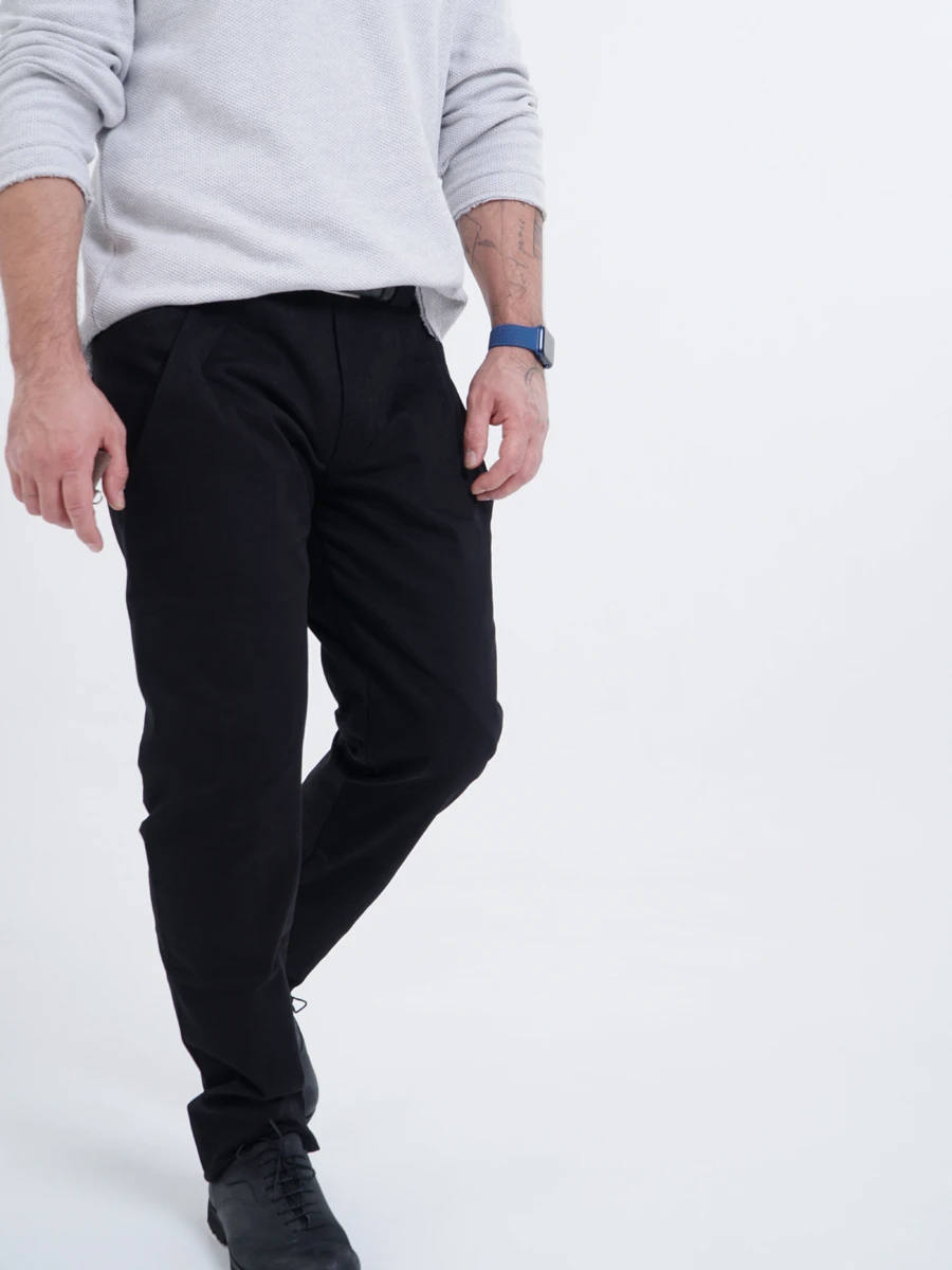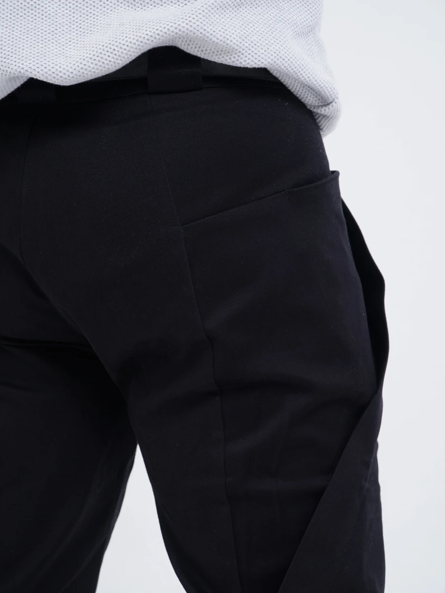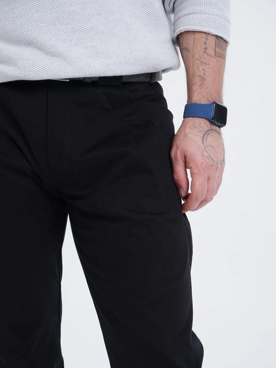 Застёжка и пояс — базовые. Только шлёвки немного шире обычных: широкие шлёвки надёжнее фиксируют брюки под ремнём и меньше деформируют сам ремень.