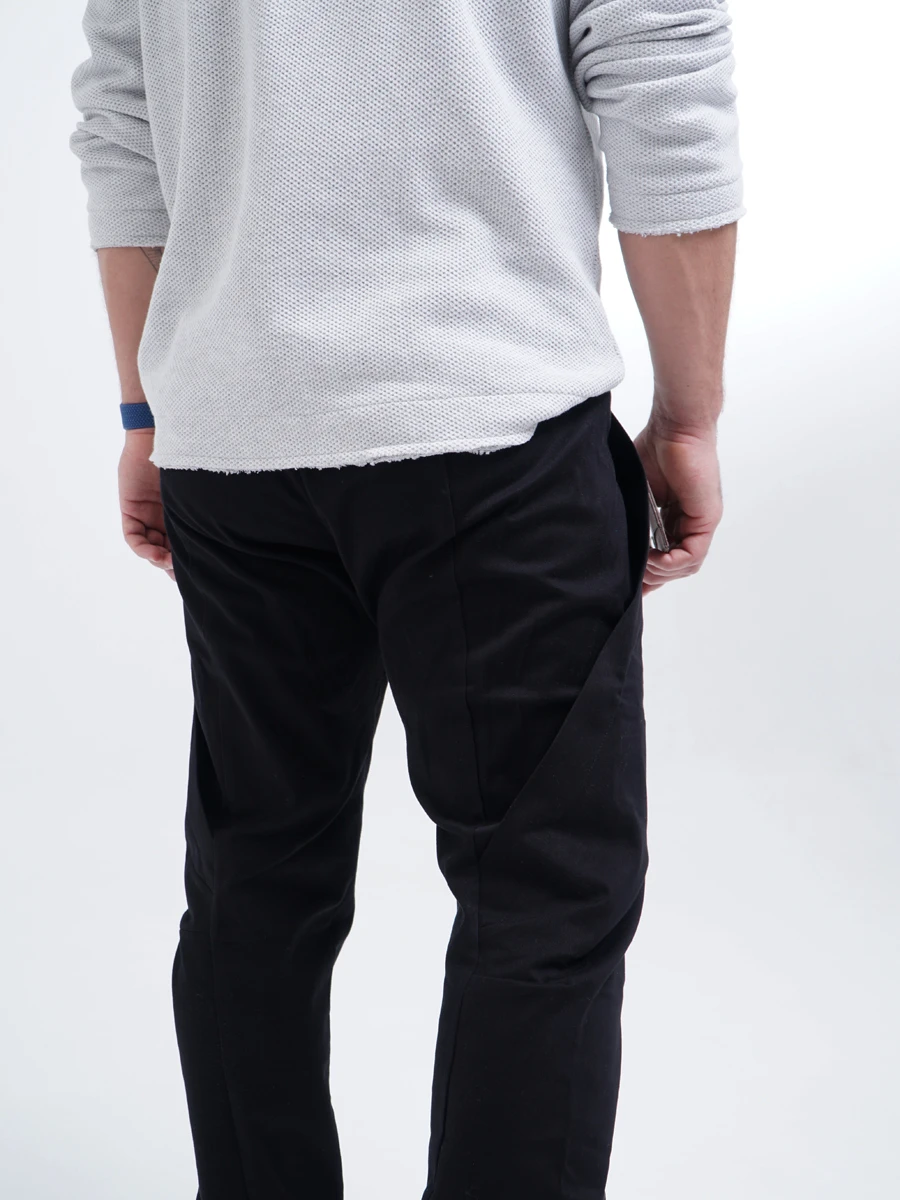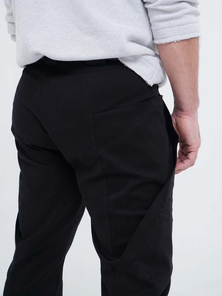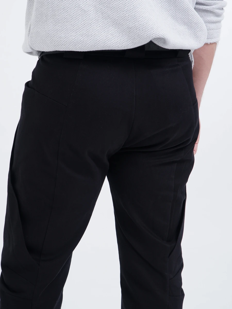 Это единственная модель, у которой нет привычных задних карманов. Но общее число карманов сохранено — четыре: два глубоких кармана расположены в складках, и два — в рельефных горизонтальных линиях над ними.