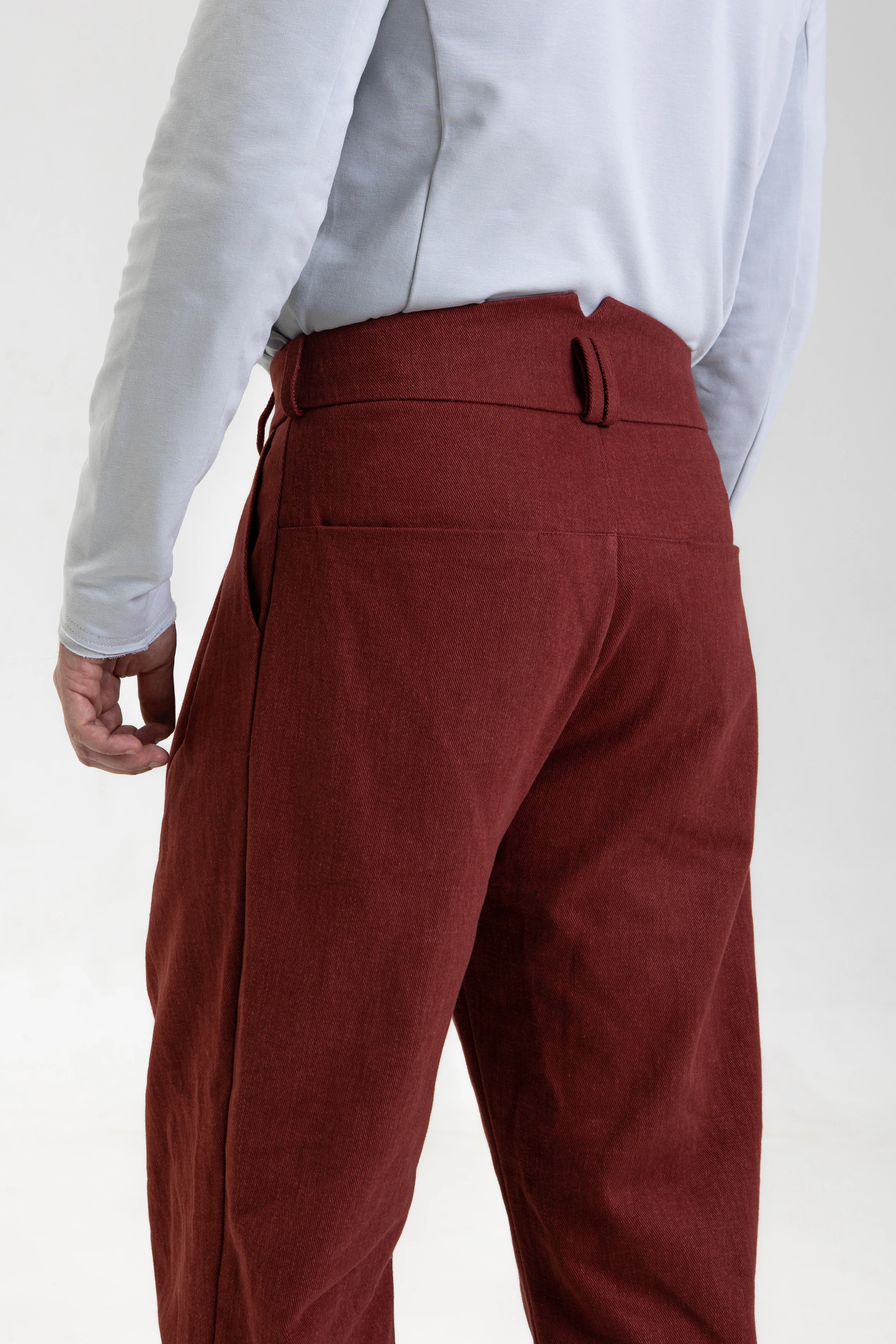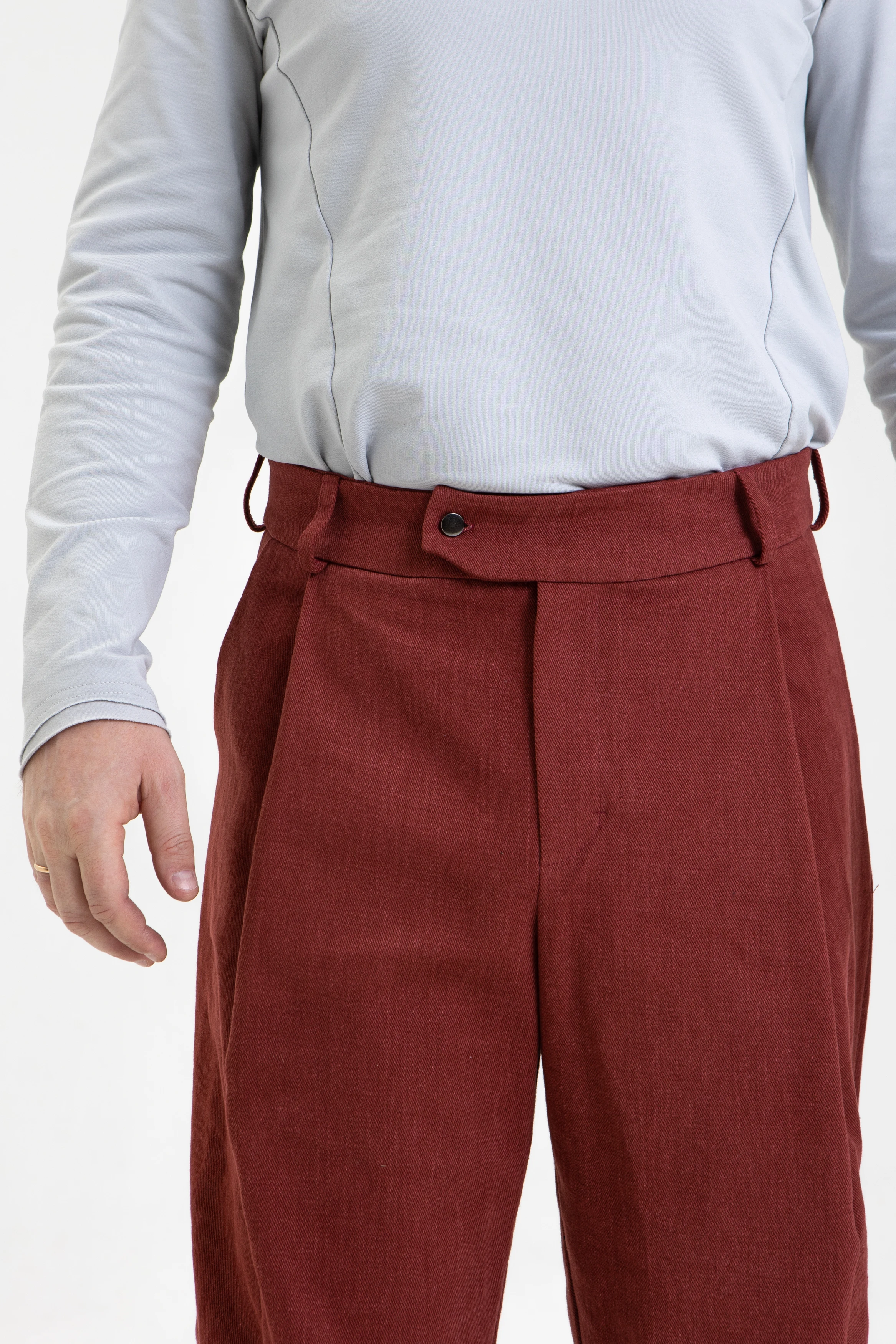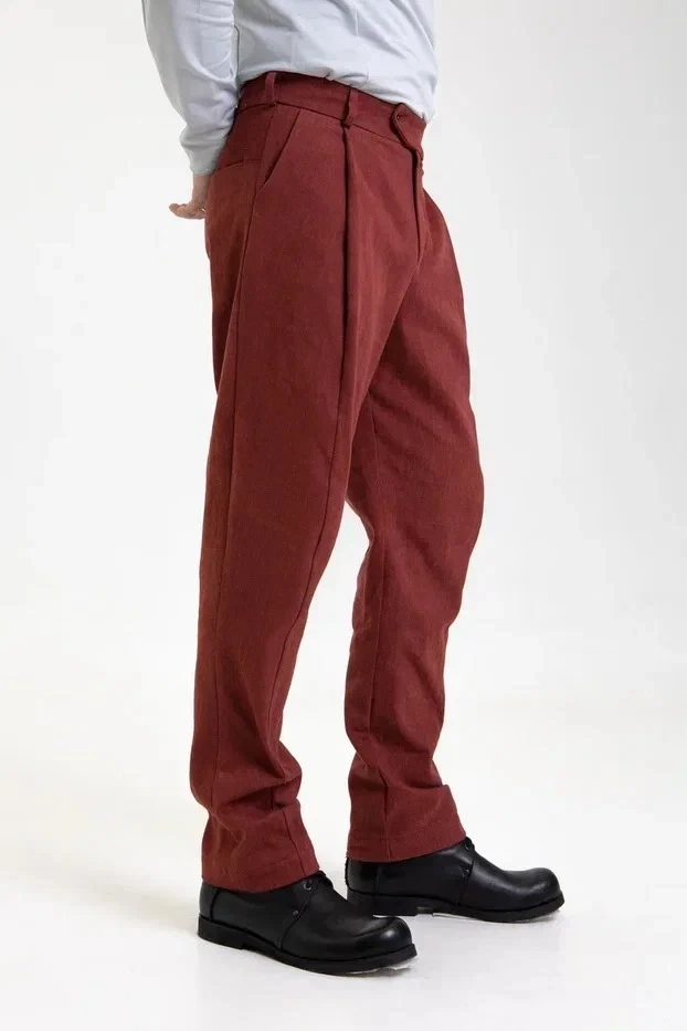 Мы постирали ткань перед пошивом, чтобы брюки не уменьшались в размере после стирки.