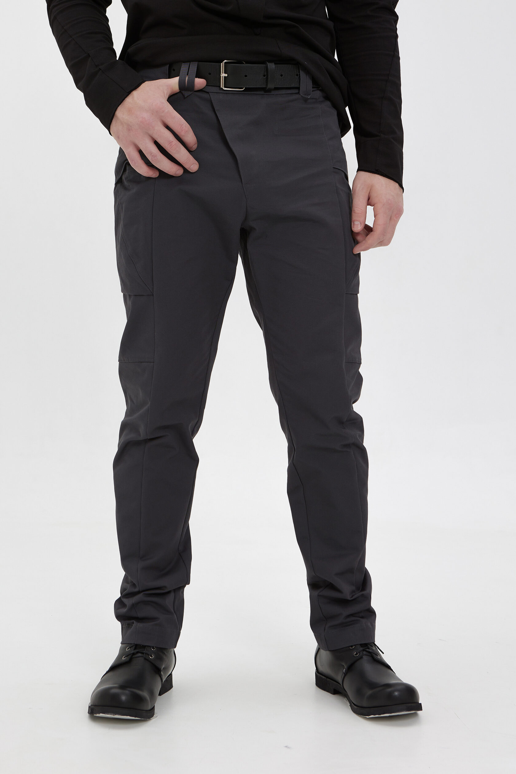 Первые наши карго-штаны были слишком широкими и, следственно, грубоватыми. Ноги в них немного столбообразно смотрелись. Поэтому эти мы слегка заузили, чтобы сделать их более элегантными.