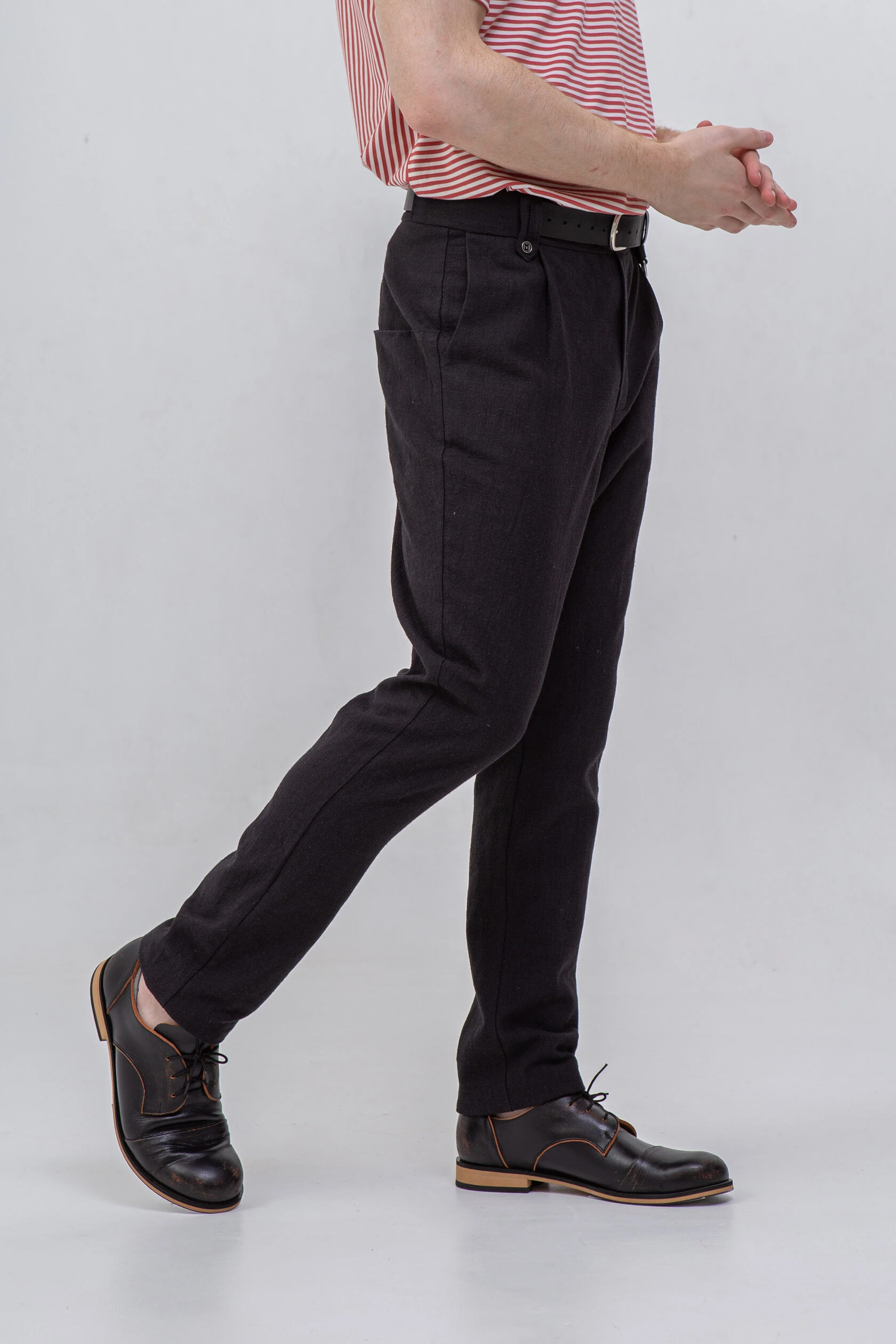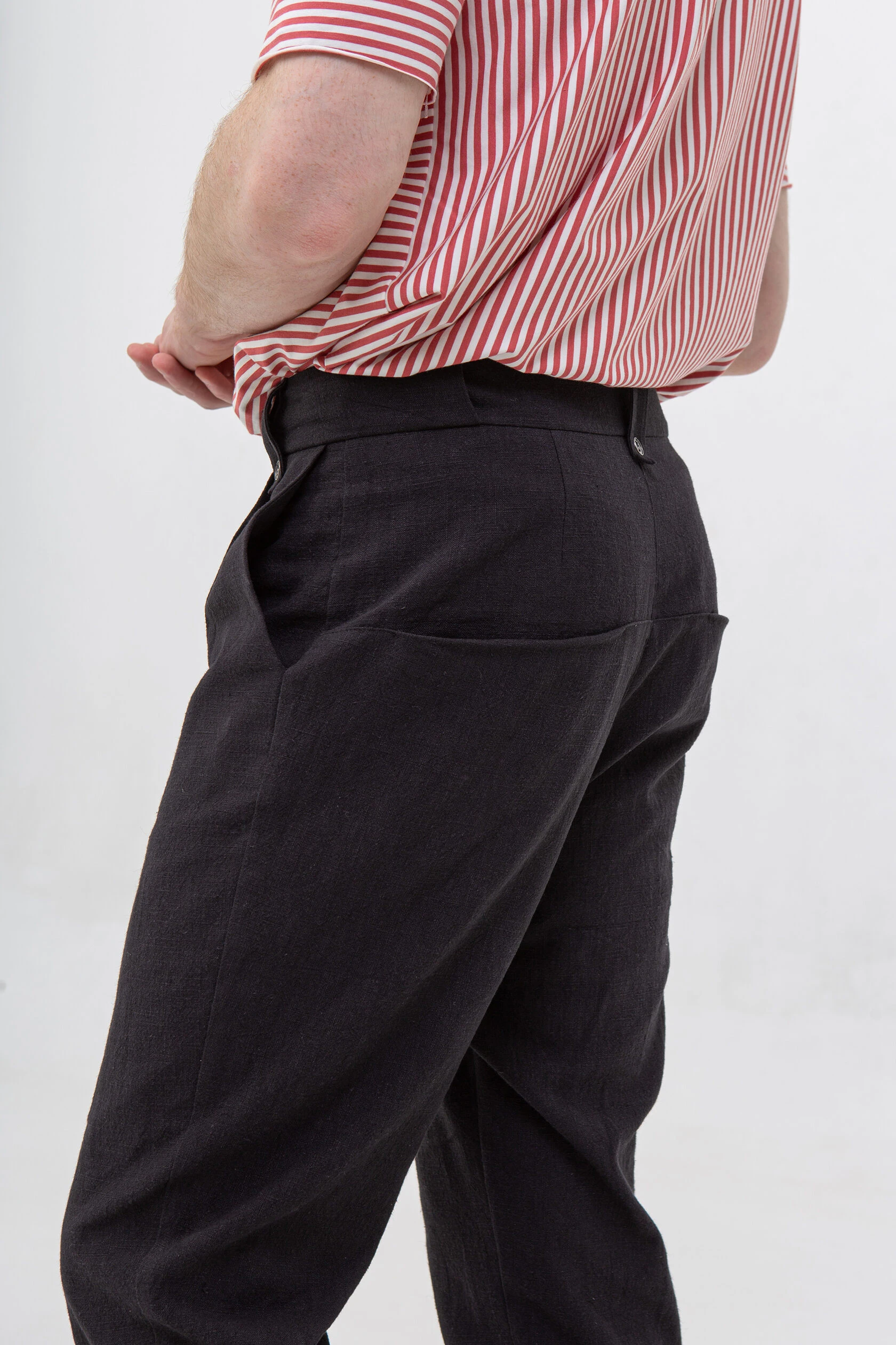 Передние складки — исключительно для свободы в верхней части брюк.