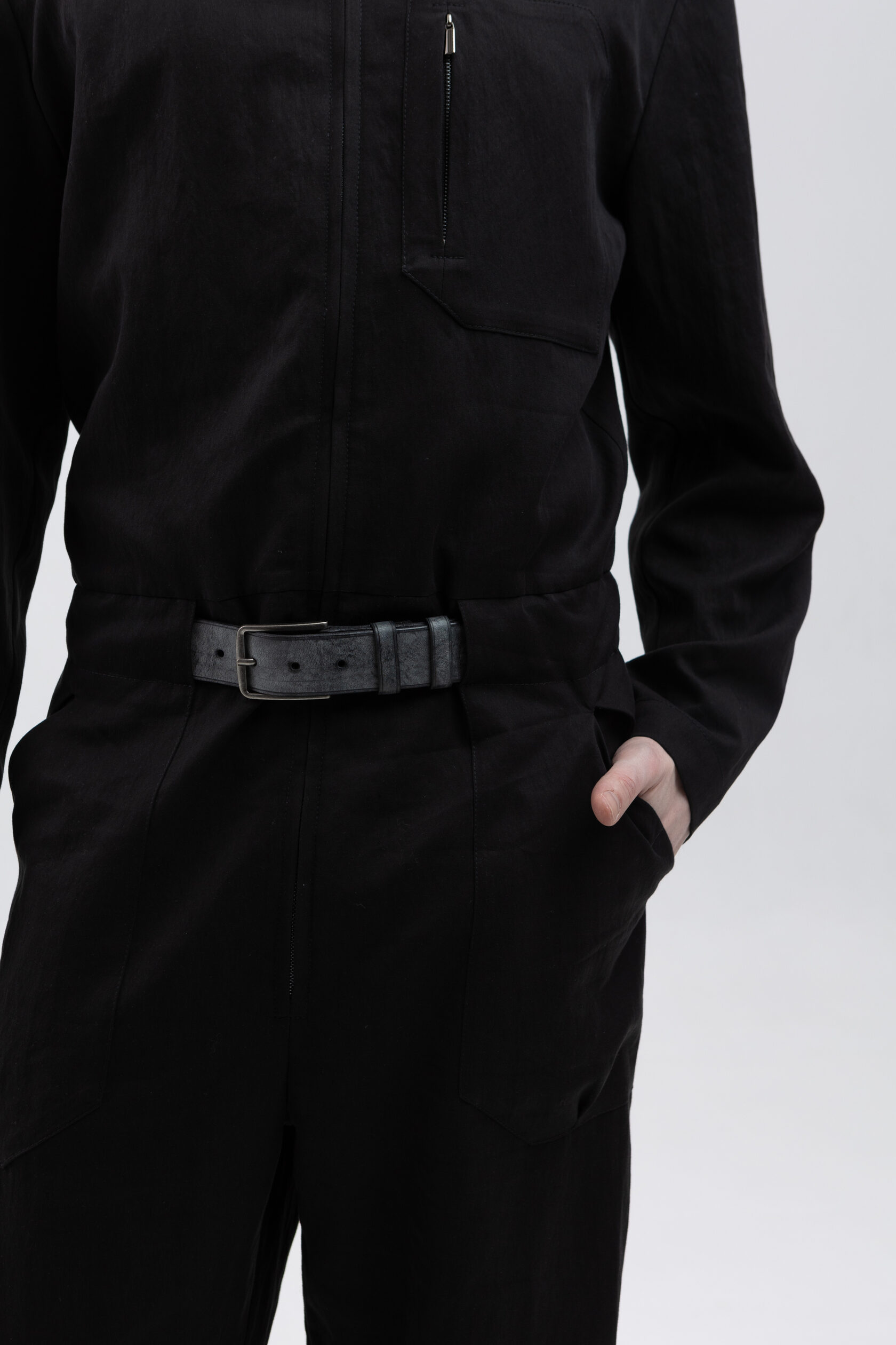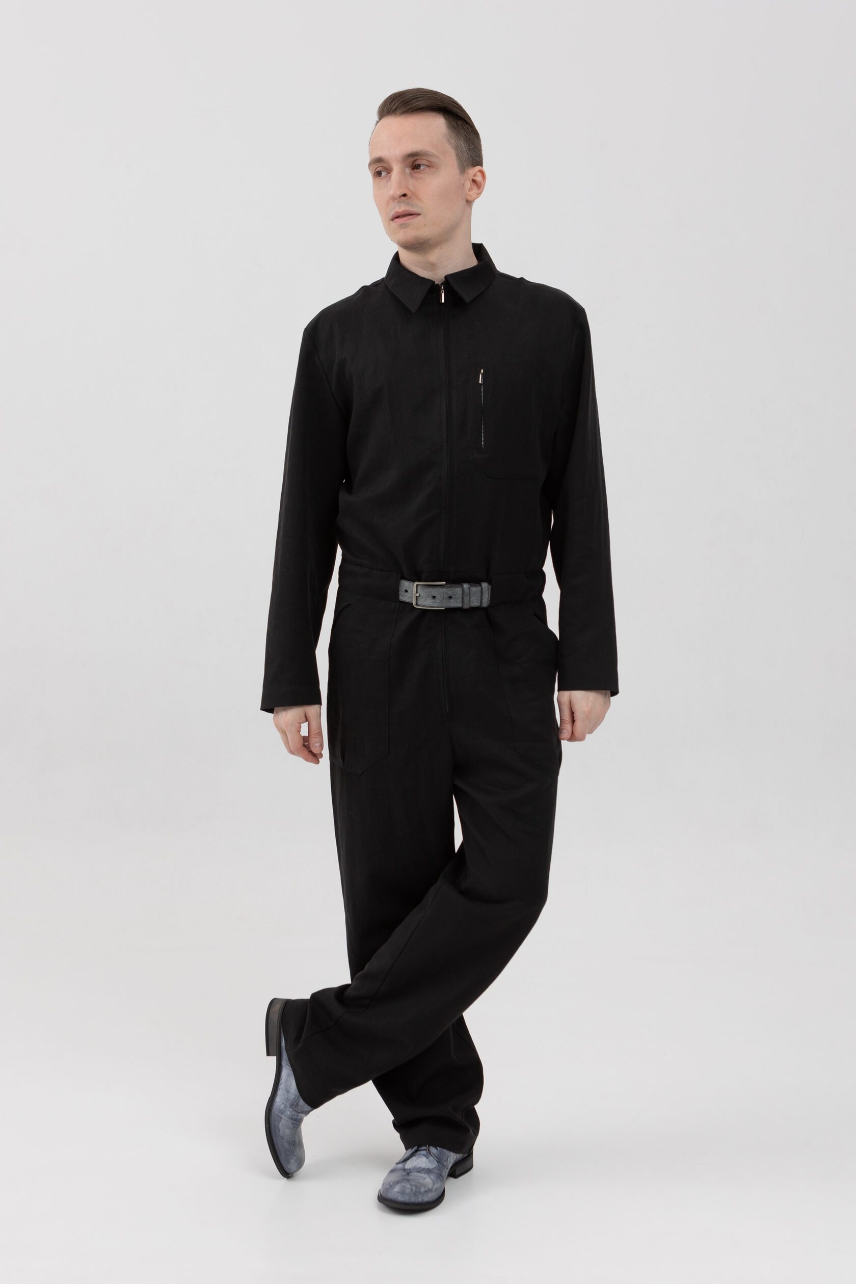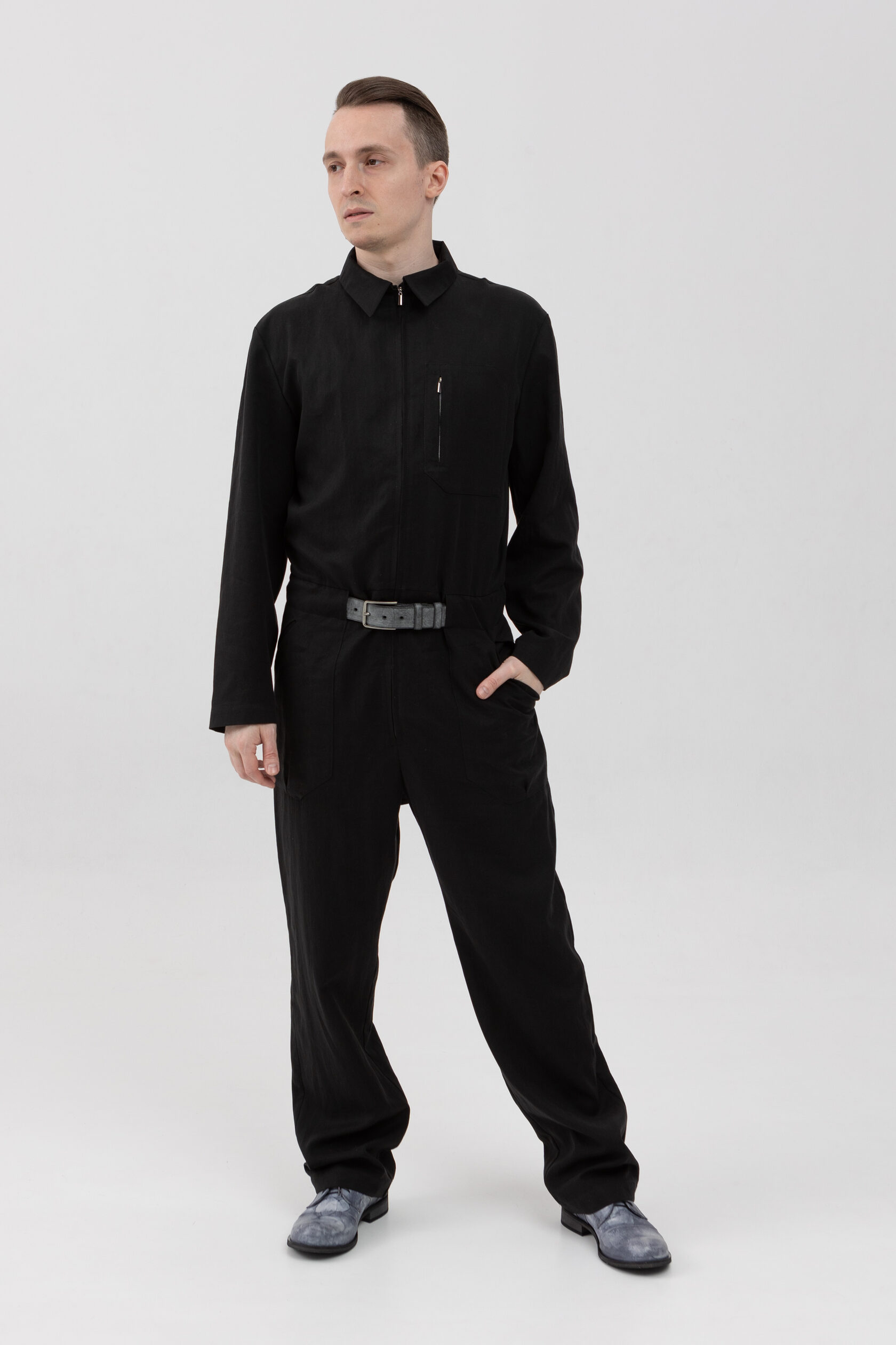 Легкий черный комбинезон на молнии