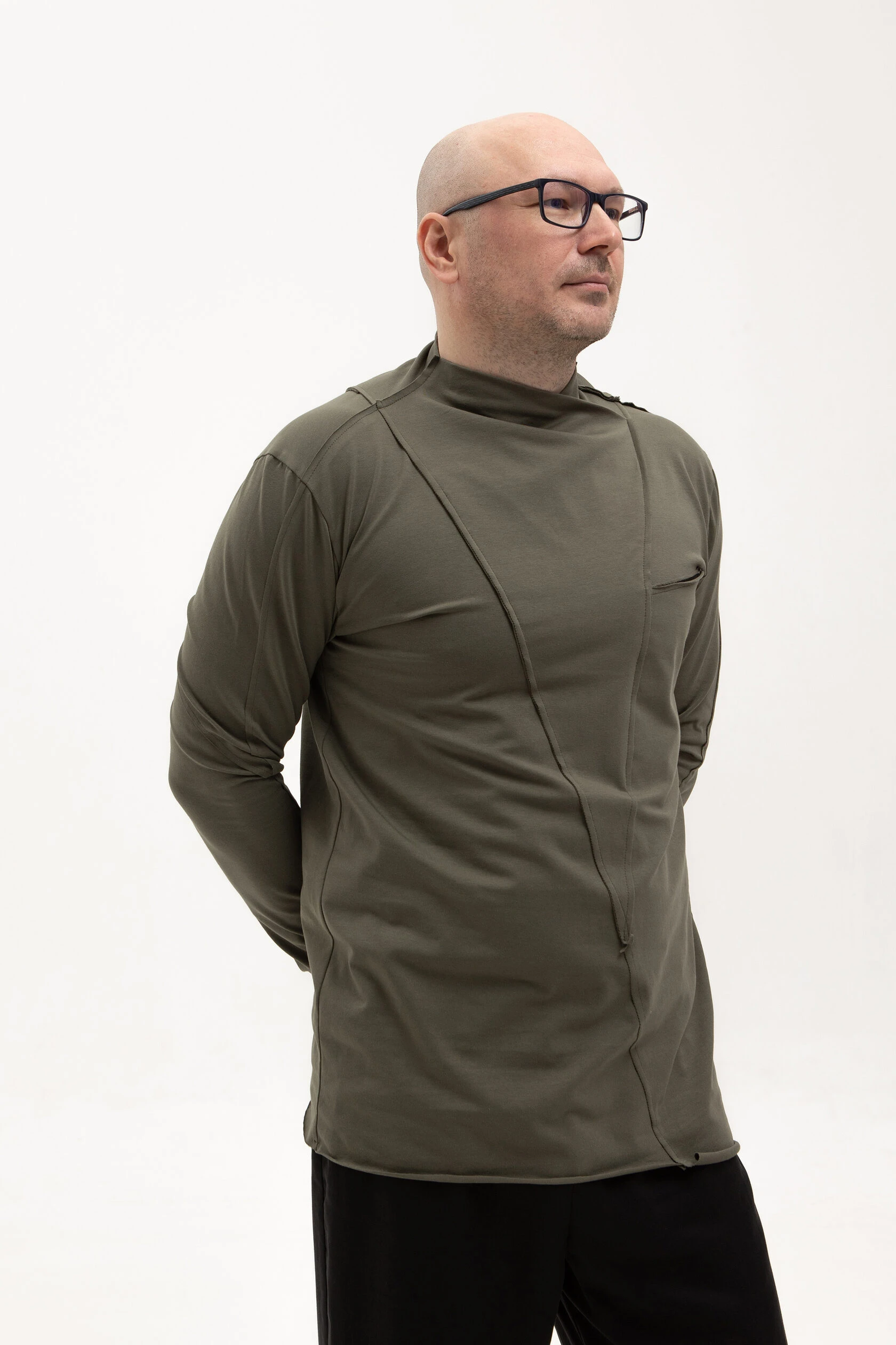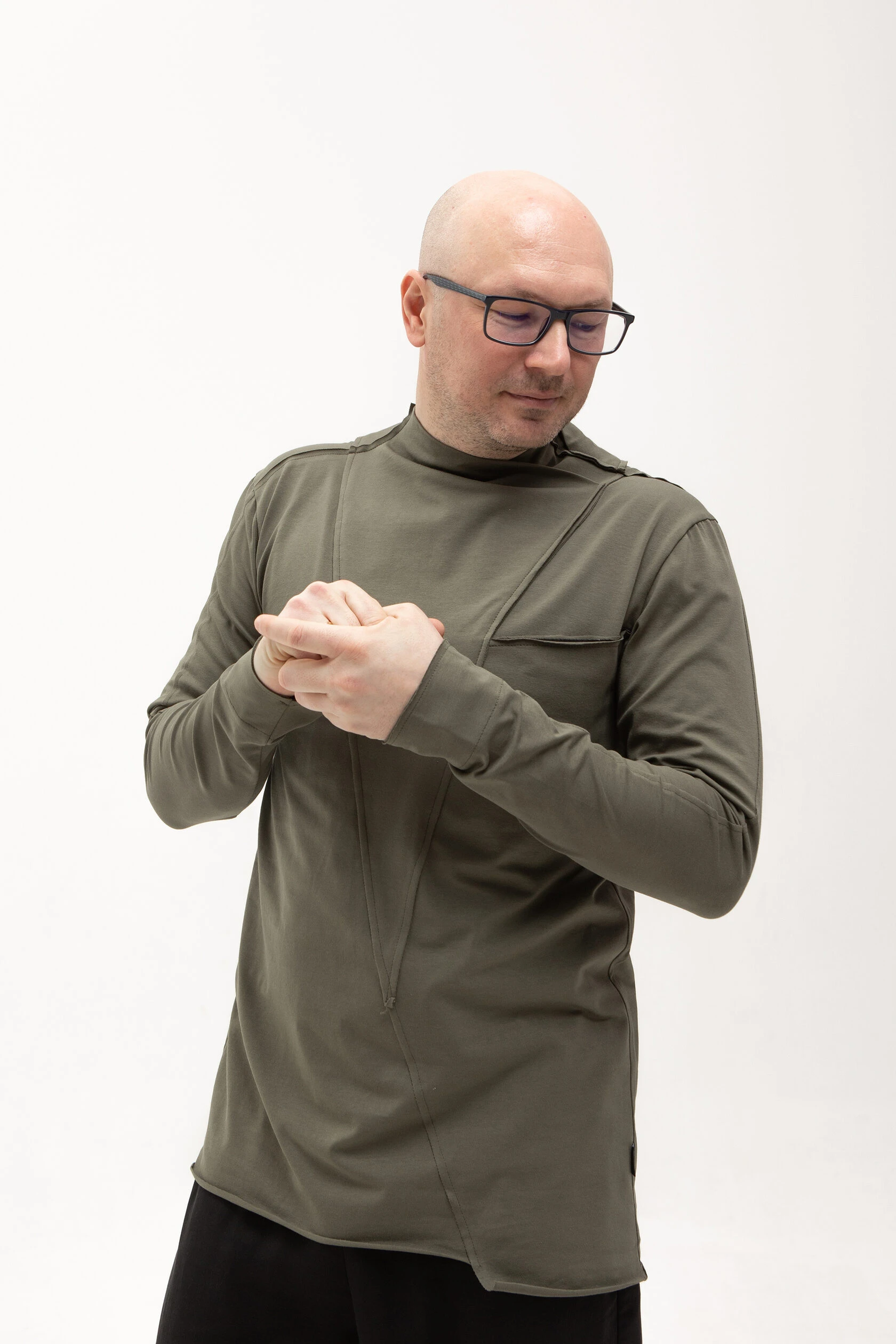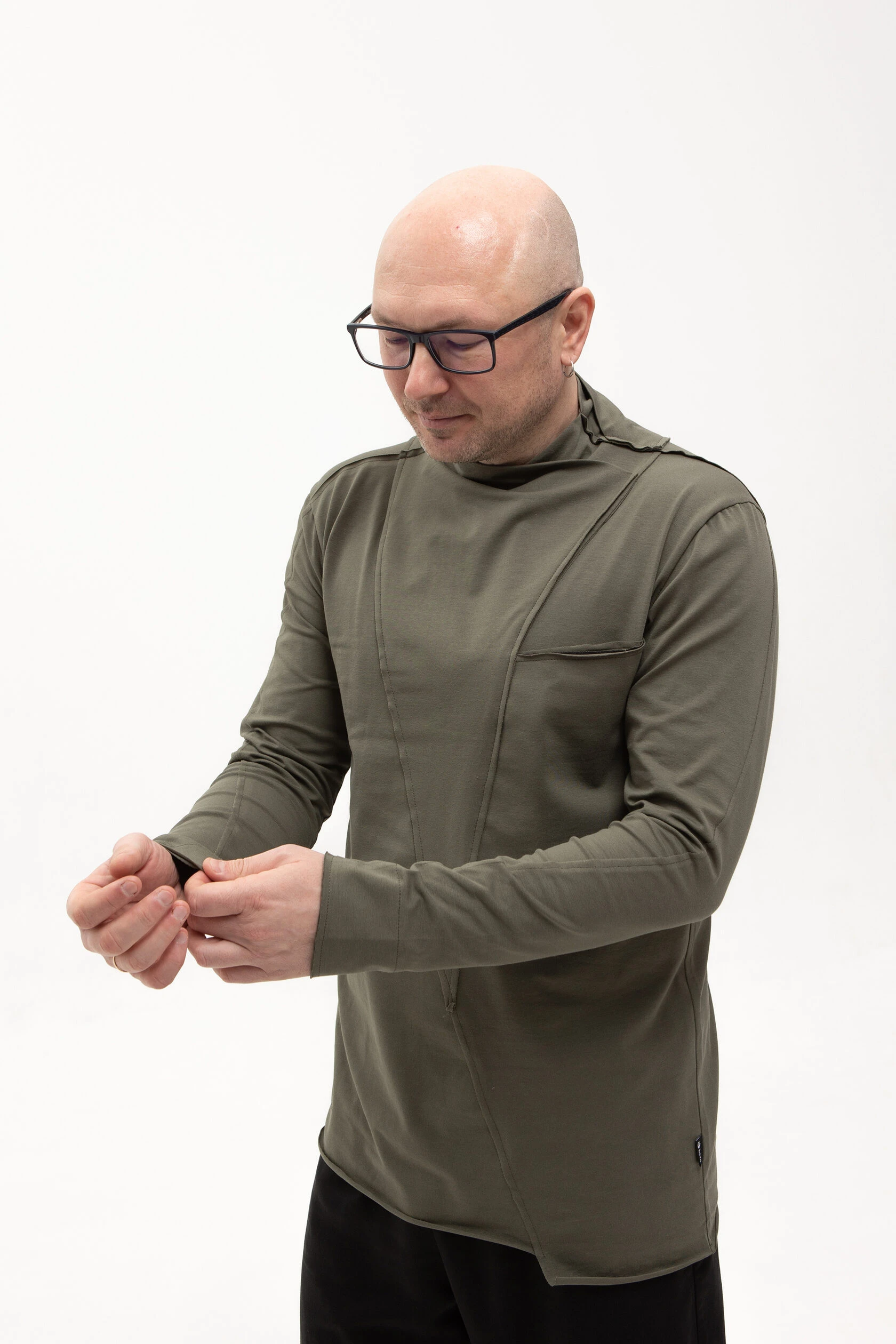 Базовая футболка с длинным рукавом, в которой нет ни одной повторяющейся или симметричной детали.