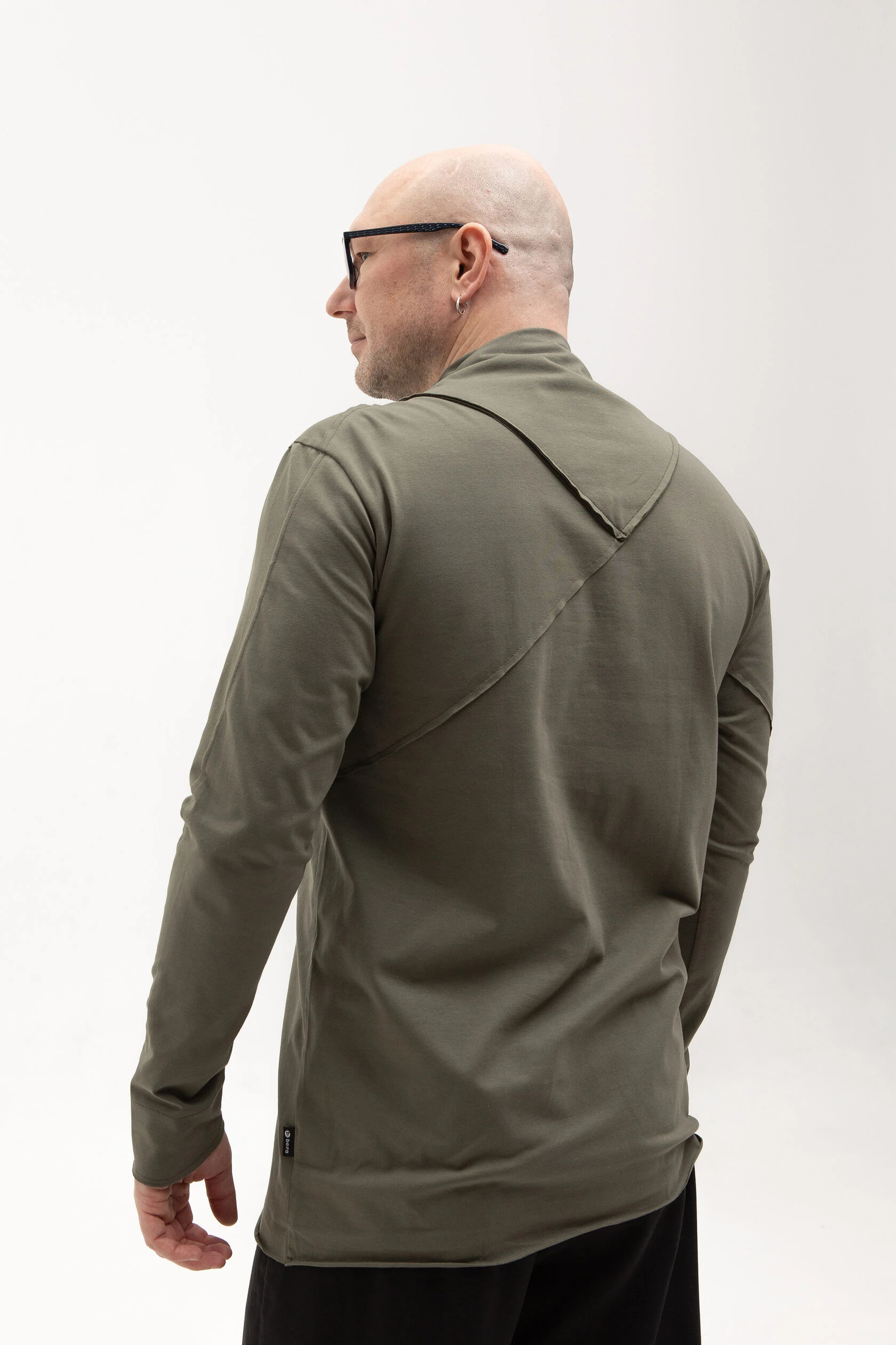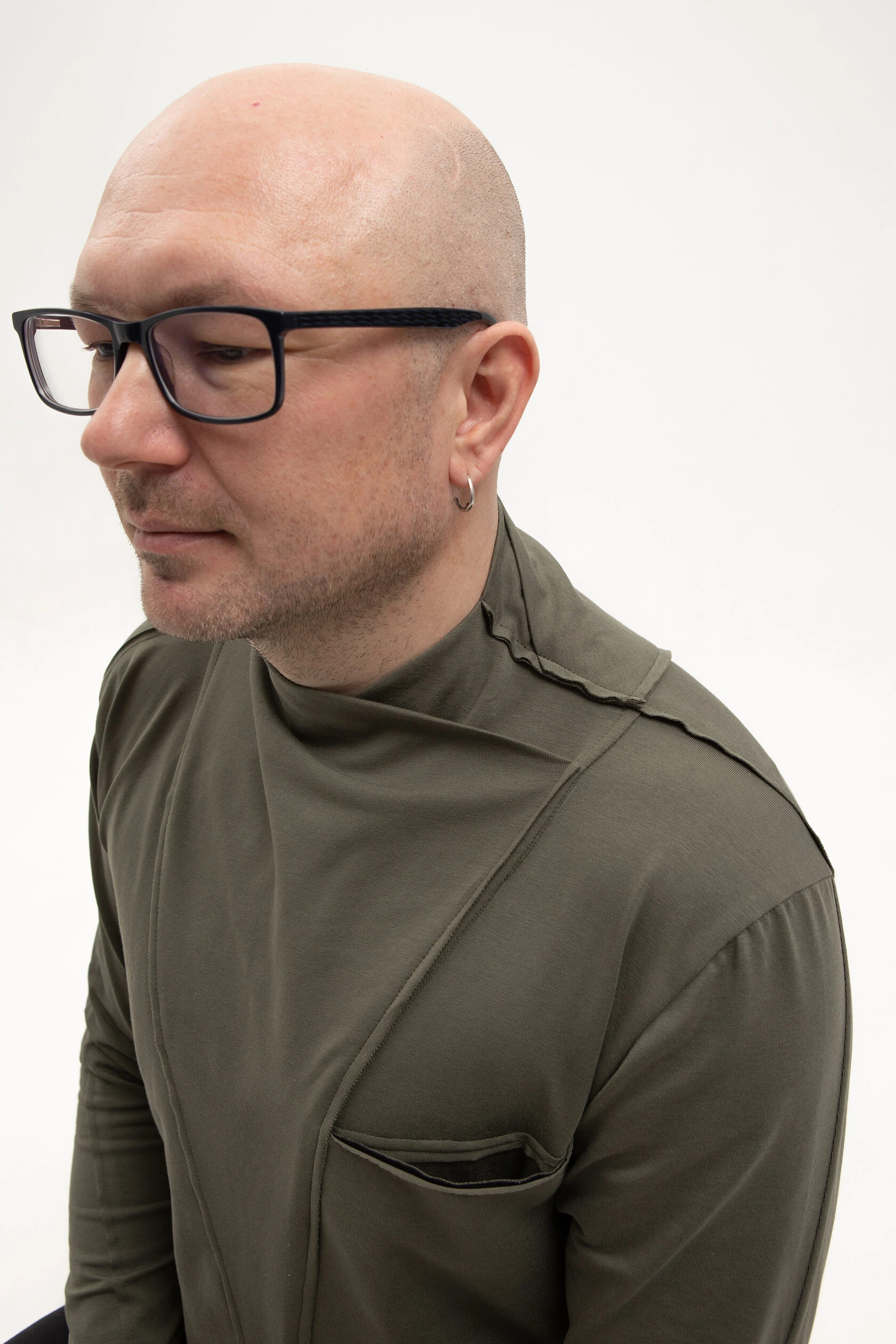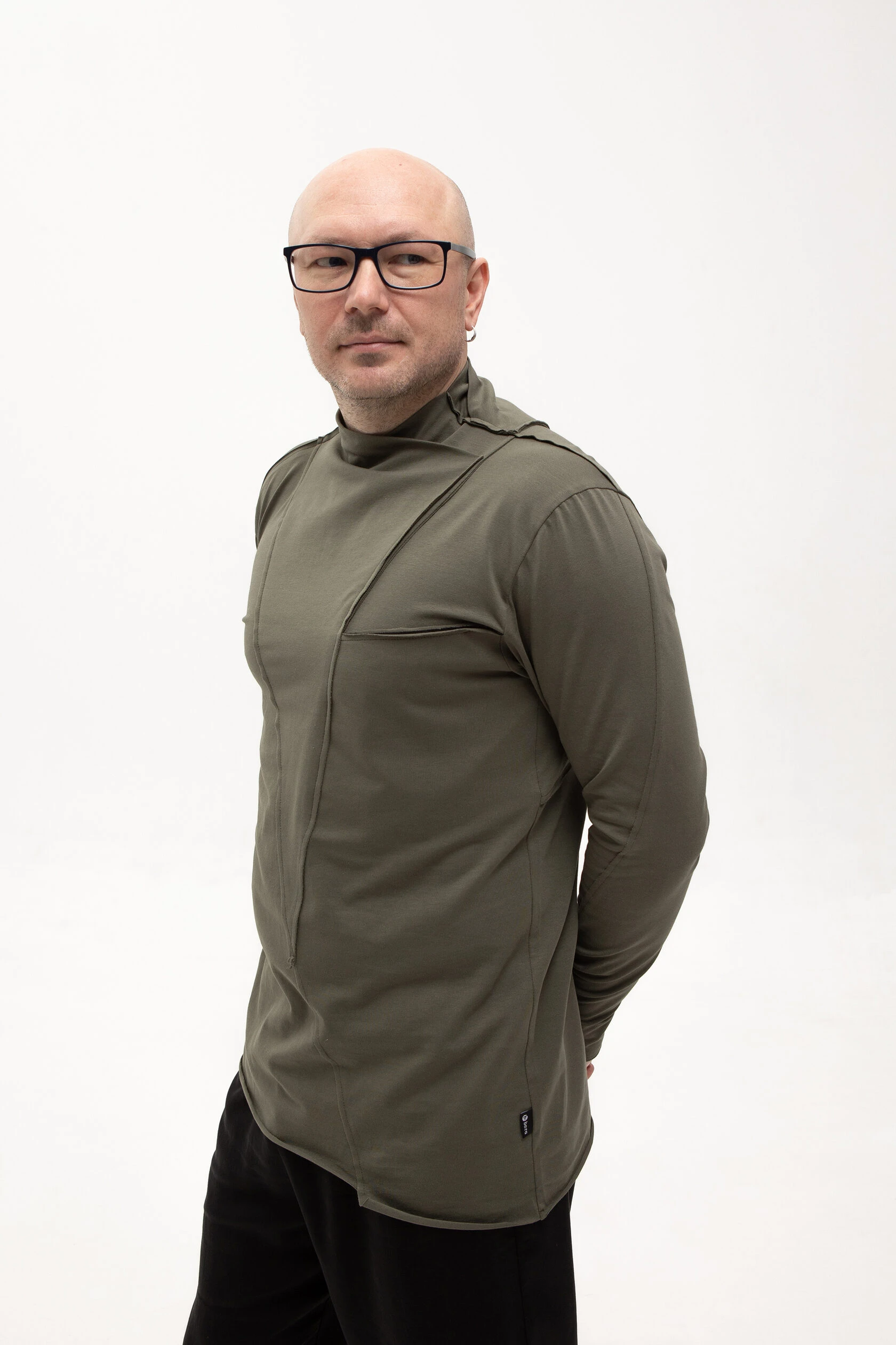 Базовая футболка с длинным рукавом, в которой нет ни одной повторяющейся или симметричной детали.